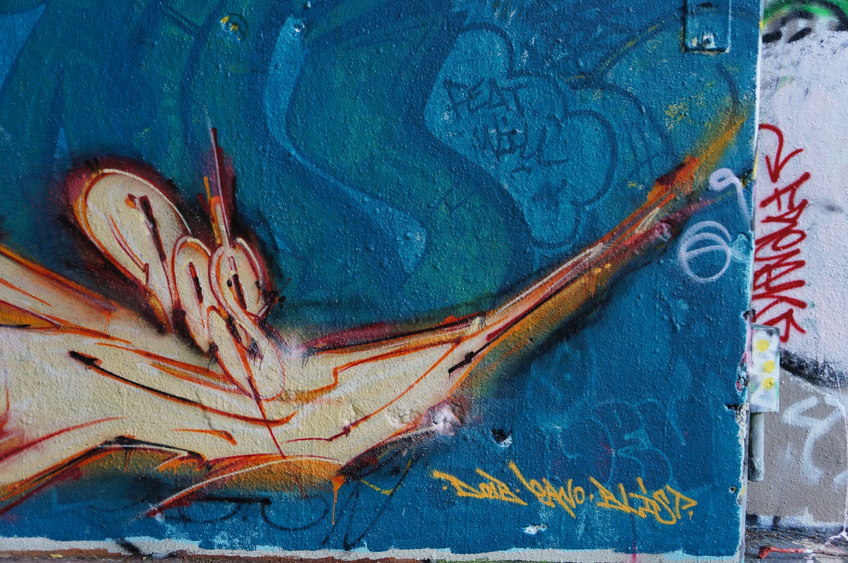 As always, we finish the first wall under the watchful eye of Mr Can Do It, with lettering below surrounded by funny fish. They are perfect for this Halloween evening. Again, I don't know the name of the artist* 😞.
