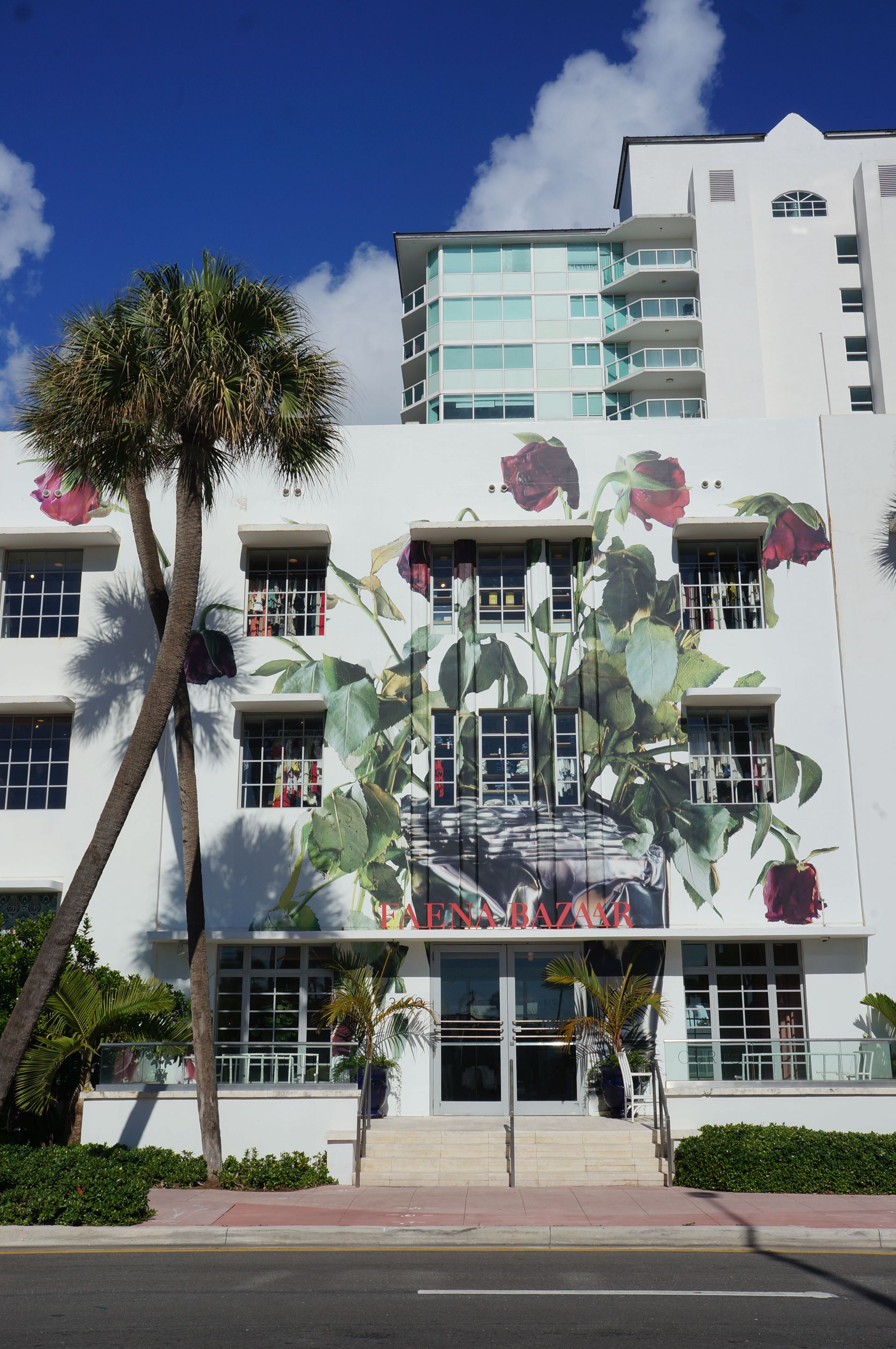 L'architecture le long de Collins Avenue est vraiment intéressante avec de nombreux bâtiments protégés et construits entre 1940 et 1970. Le tout est préservé et mis en valeur par Collins Waterfront Architectural District. De nombreux hôtels occupent les lieux comme Faena Hotel, un groupe de luxe qui semble offrir plus que des chambres d'hôtel. Il y a des magasins, un centre d'art, un café... Et ce bâtiment avec cette belle murale représentant des roses.