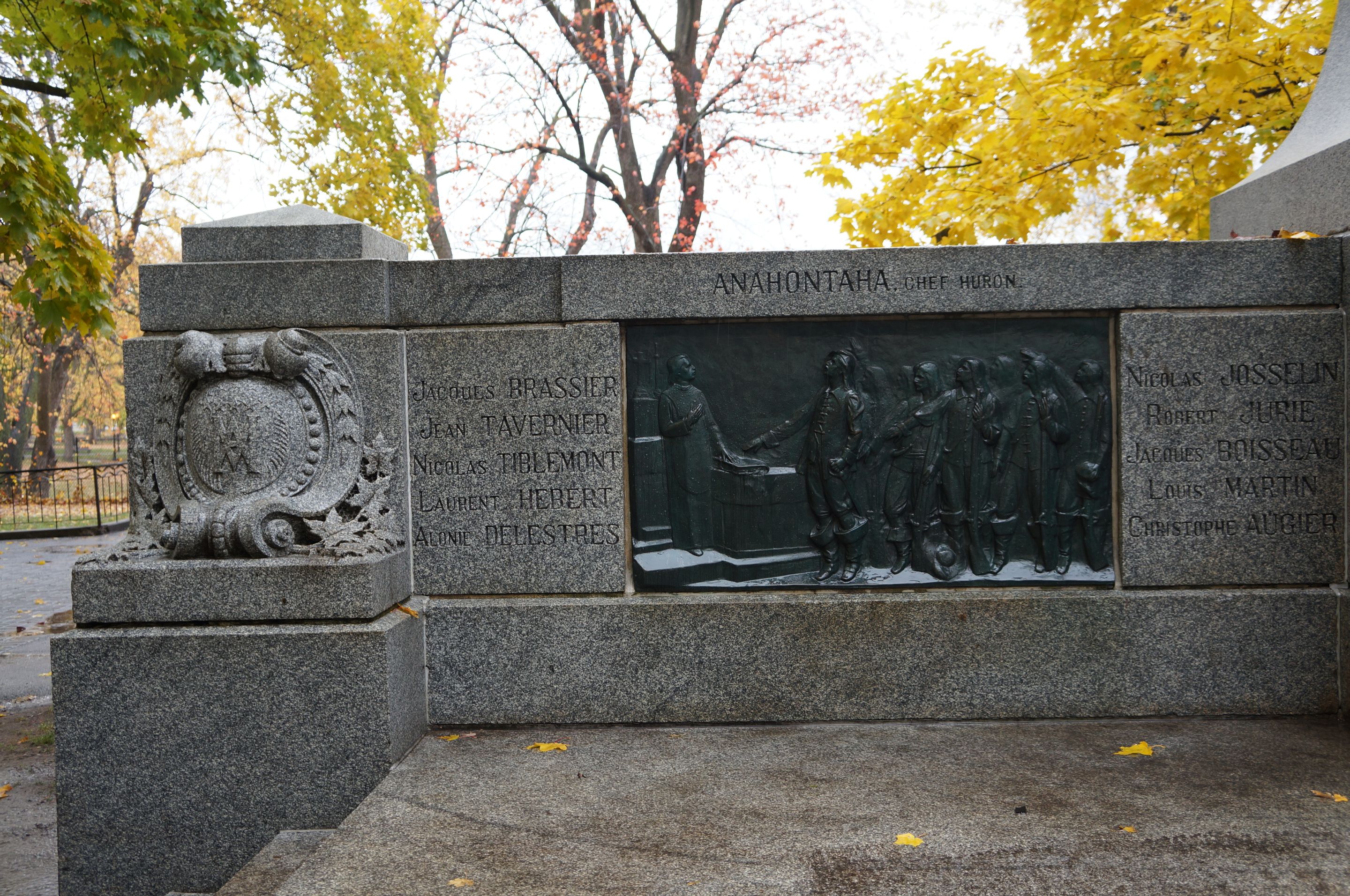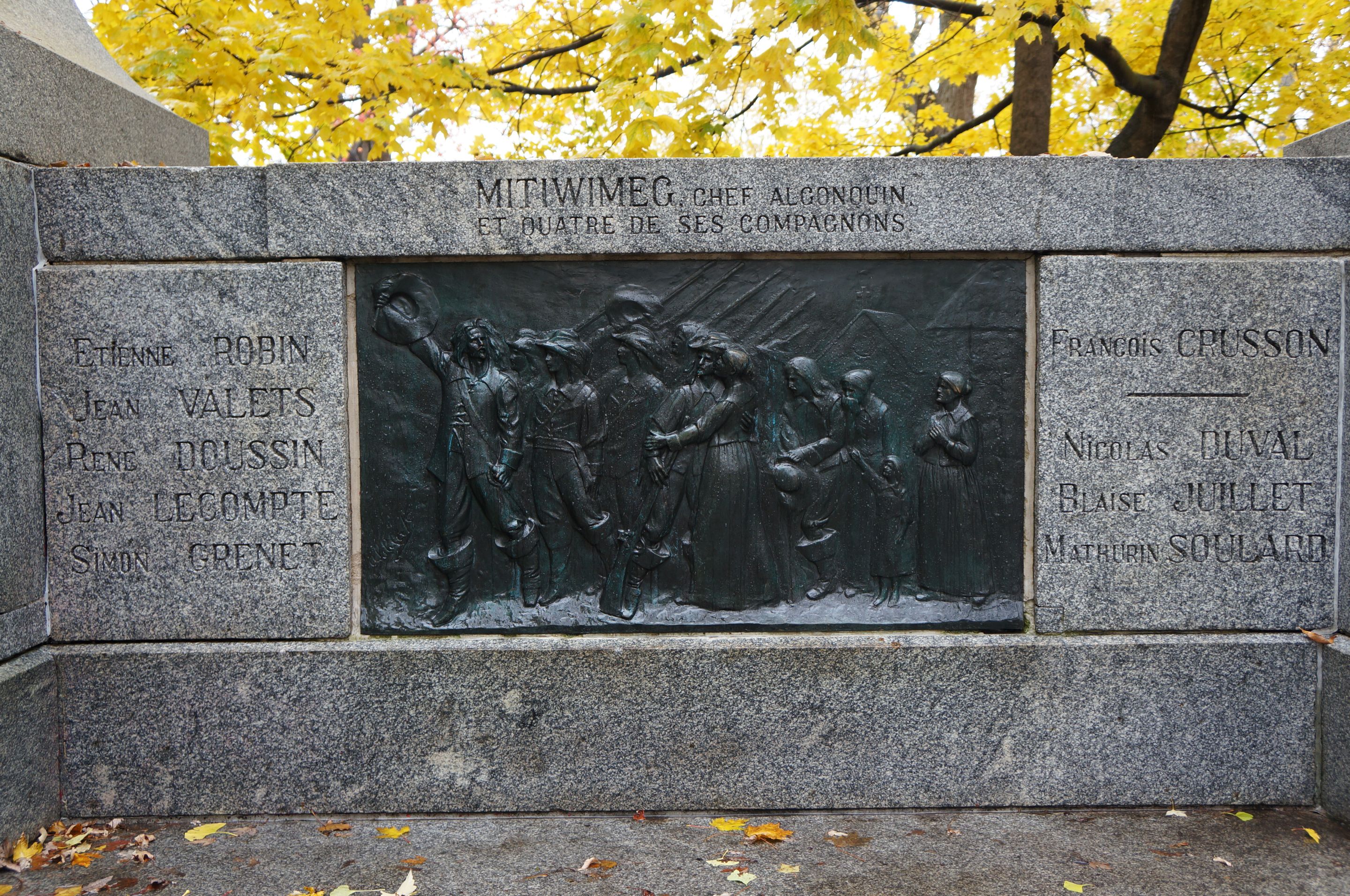 Nous terminons cette balade avec un peu d'histoire avec cette statue en hommage à Dollard des Ormeaux, personnage important mais contesté de l'histoire canadienne. Je vous laisse lire le wiki si vous êtes intéressés. Sinon le monument a été réalisé par Alfred Laliberté en 1920, sculpteur qui a fait de nombreuses statues commémoratives au Québec (pour plus d'information : artpublicmontreal.ca).