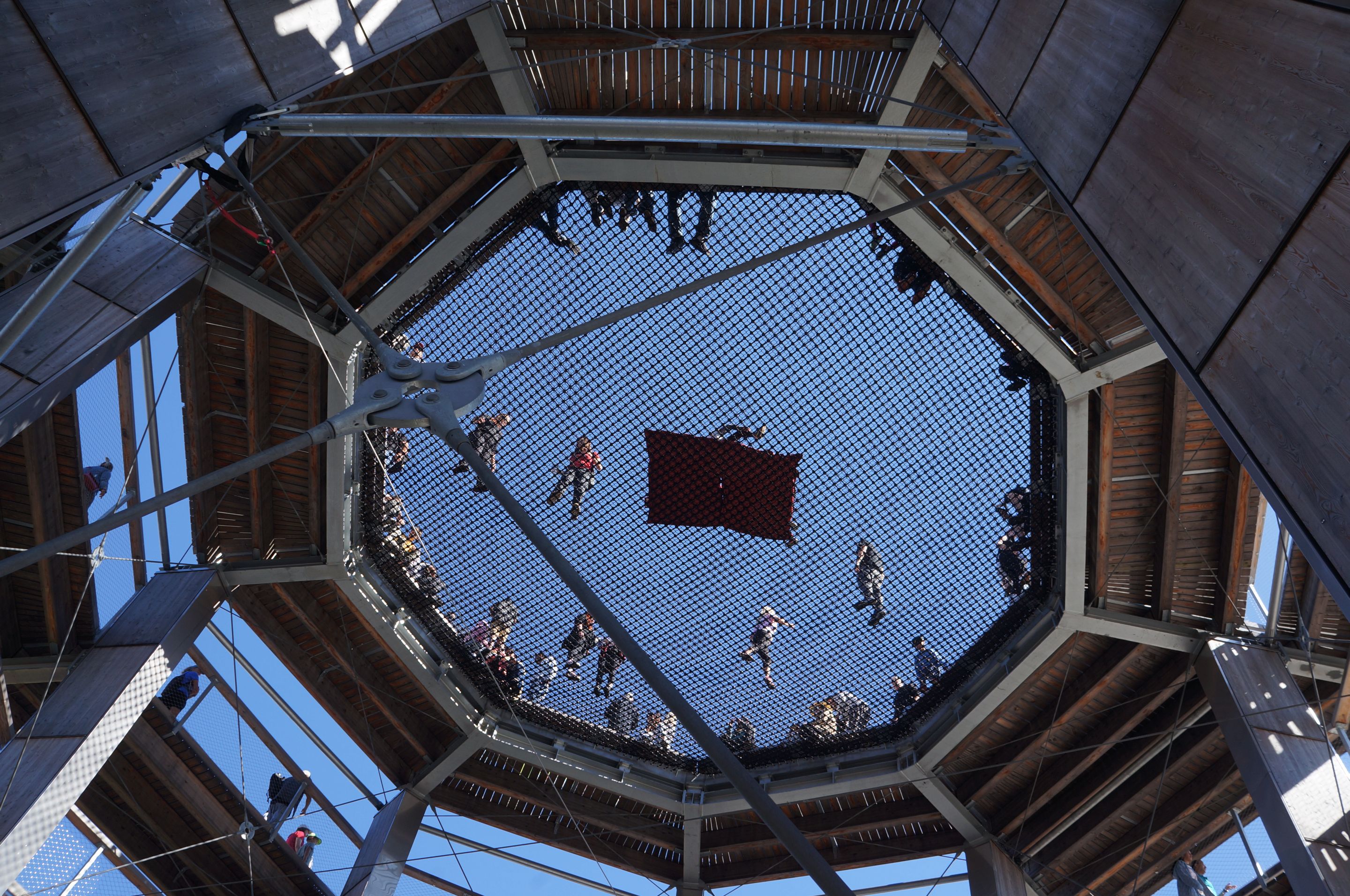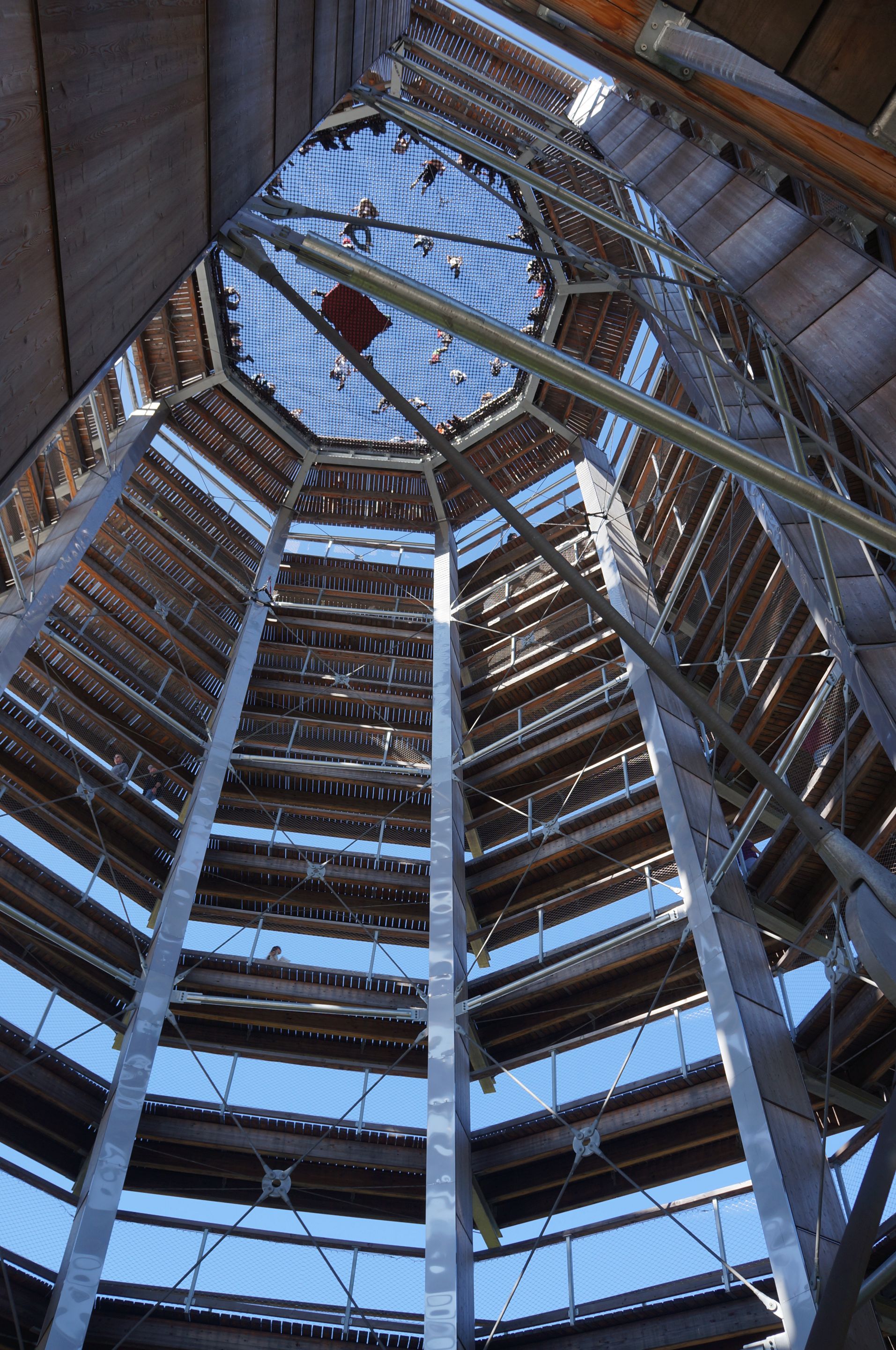 La structure de la Tour est aussi intéressante avec cette lente montée vers son sommet. En plus, en haut, il y a un filet suspendu à 40 mètres de hauteur. Beaucoup d'enfants étaient dessus en train de tester sa résistance 😀.
