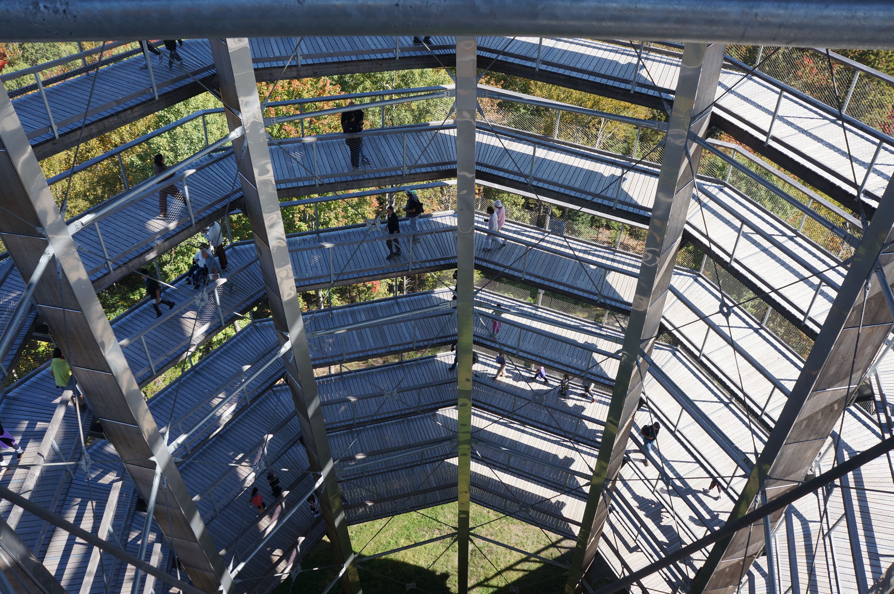 After a short walk, we arrived at the 40-meter-high Panorama Tower (130 feet). Its structure is quite unique because you climb in a spiral staircase to reach its summit. As you can see from the photos, it was quite crowded, but it was still a pleasant experience to discover this place.