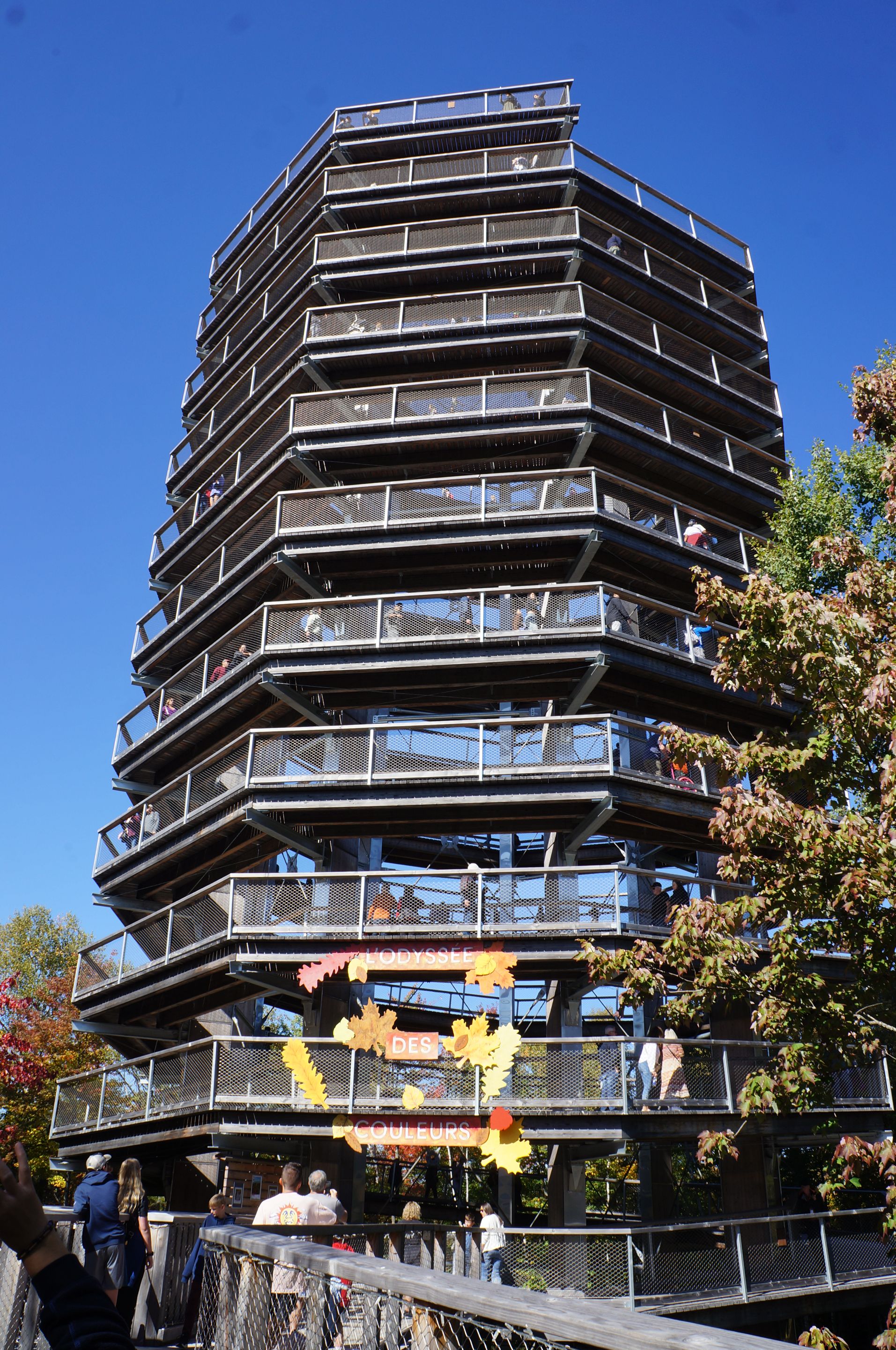 Today, for #WednesdaWalk hosted by @tattoodjay, I suggest a walk along the Treetop Walk aka Sentier des Cimes not far from Mont-Tremblant in Quebec. It's a wooden walkway above the trees that leads to a tower where you can admire nature. And in the fall, with the colors of the trees, it's truly magnificent, as you'll see.
