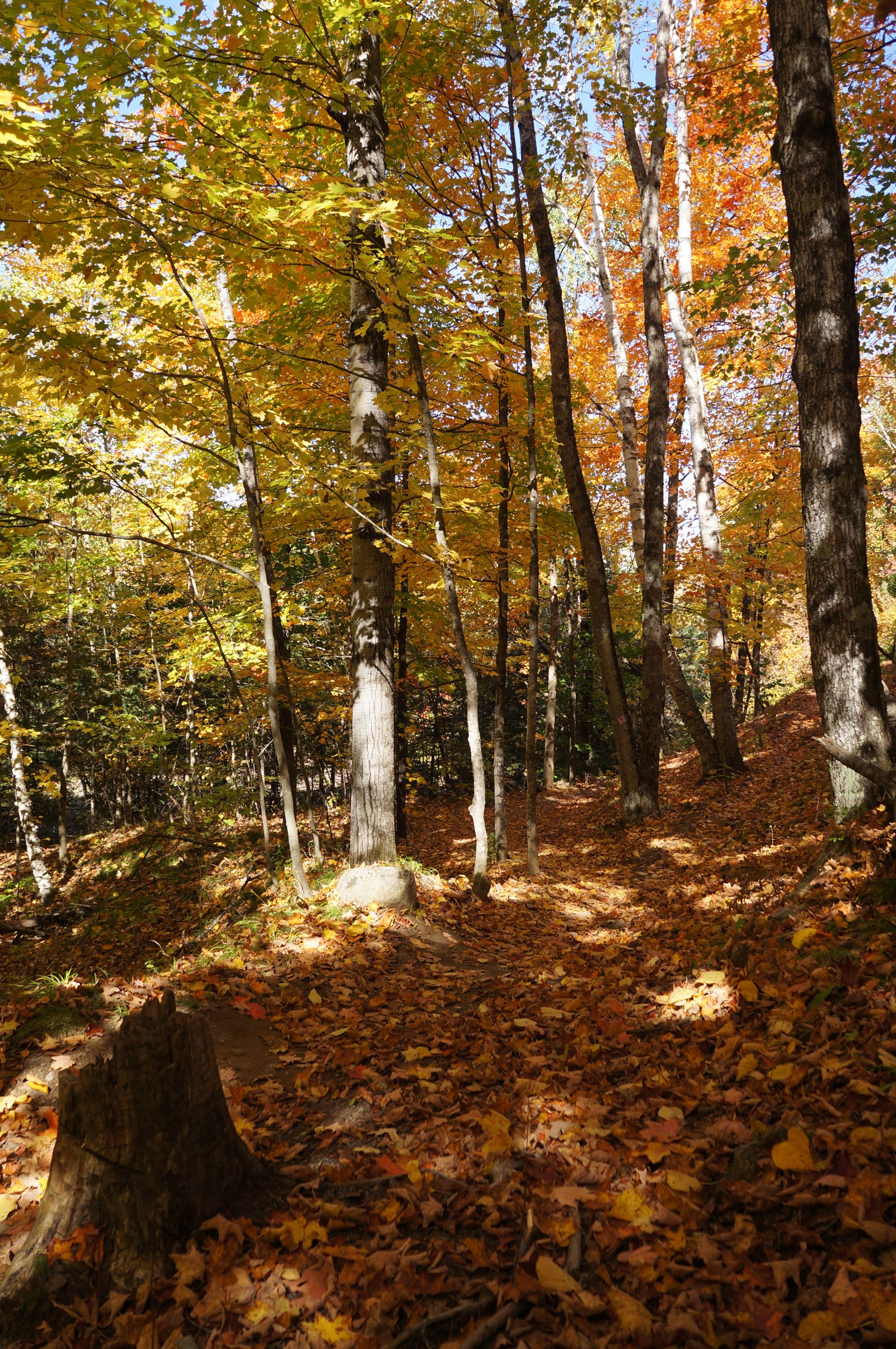 Le Sentier du Diable est une petite balade. La boucle fait moins de 6 km avec un léger dénivelé, en 2h l'aller/retour est complété. De plus, une partie du chemin longe la rivière du Diable. C'était parfait pour moi car je voulais pique-niquer avant de rentrer sur Montréal. Et quoi de plus calme que le bord d'une rivière en automne.