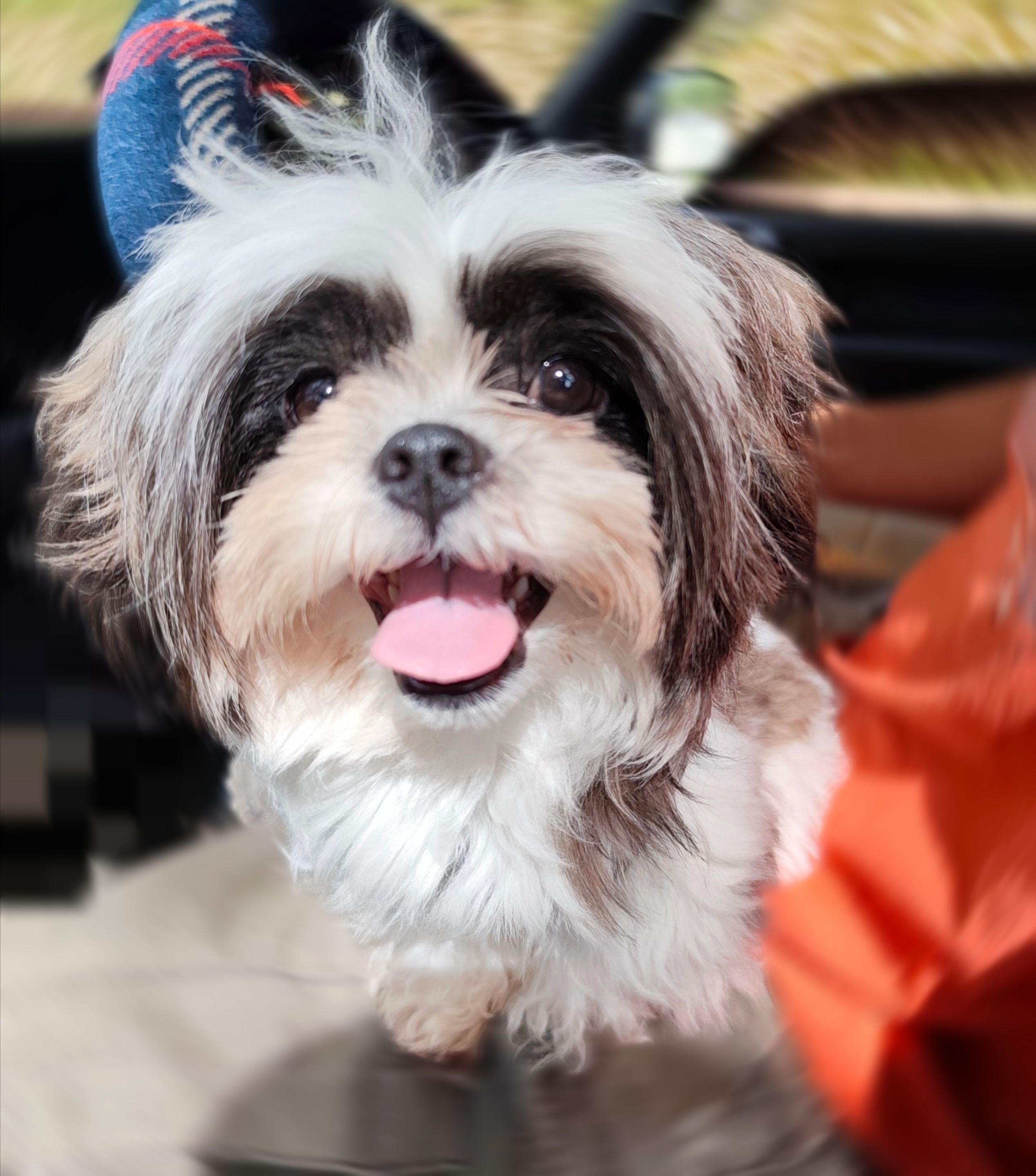 Today, he was rather lethargic and moany (just a touch and he moans, lol), which is the opposite of his happy disposition and aura of excitement the other day. He was on his Dada's lap in the pic below.