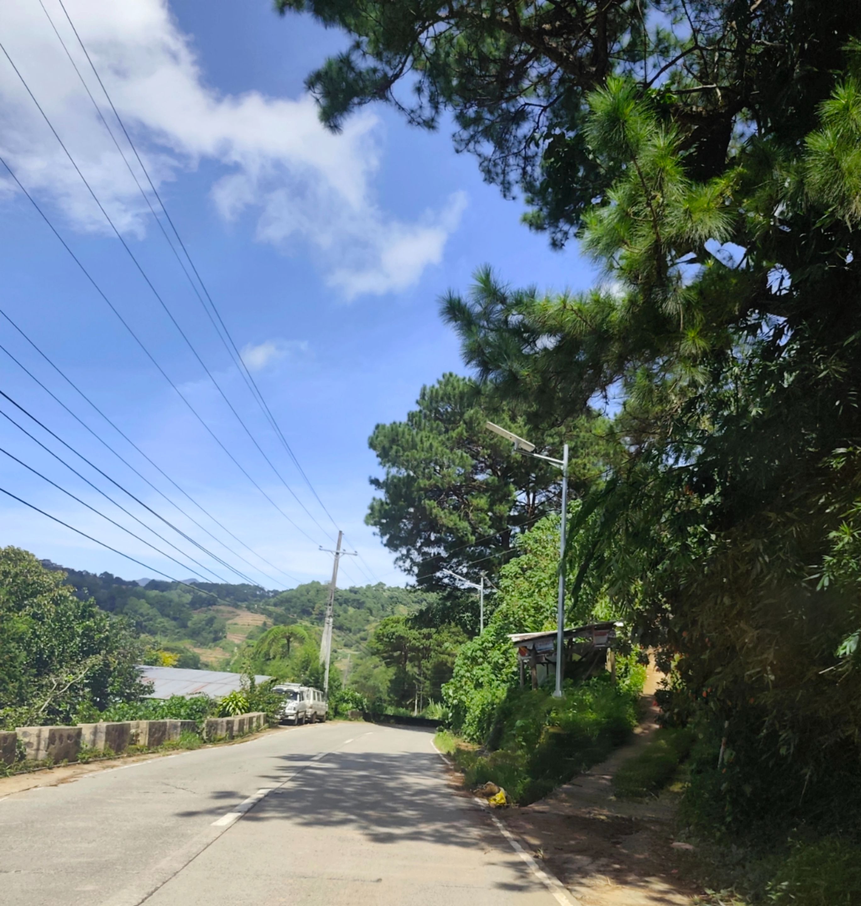 Zooming in, the shadow of the streetlight can be seen a little clearly. Farther away, the faint shadows of the cables are also visible.
