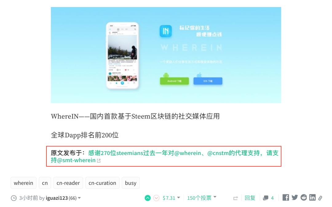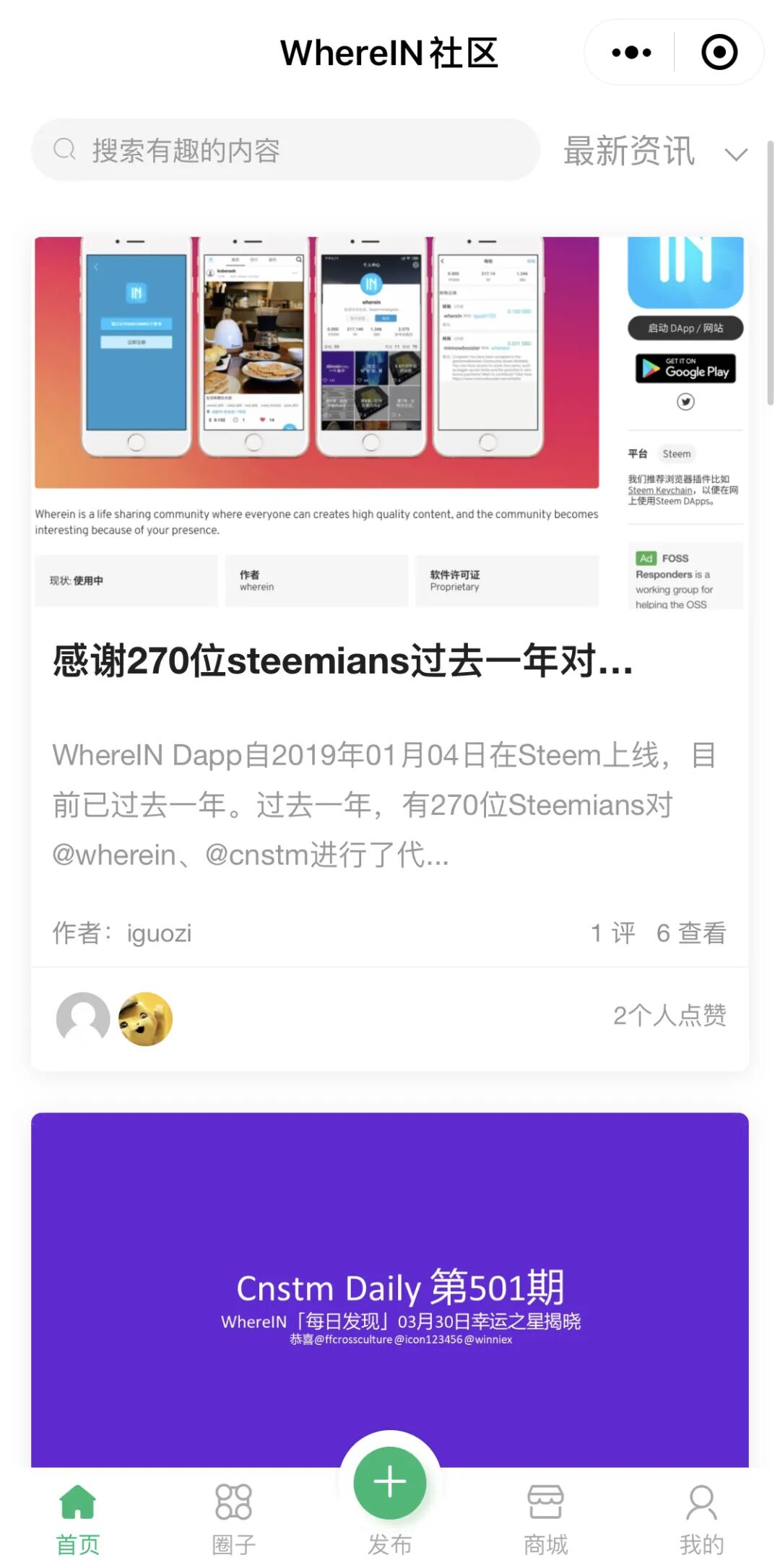 PS:目前wherein小程序后台默认steem标签为“wherein cn cn-reader cn-curation busy”;动态将发布至你在Steem和Hive上对应的账户