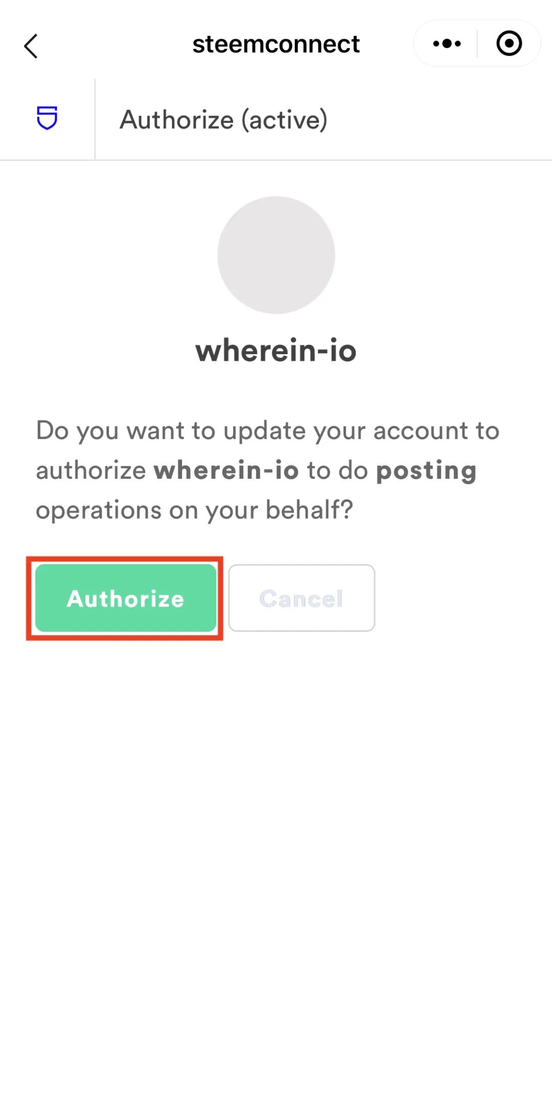 STEP6 提示将该账户的发帖权限授权给wherein-io,轻点「Authorize」