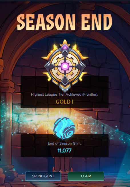 I ended up with 11,077 Glint for last season, which is more than what I was getting before. I got to Silver II like usual in Modern, but it shows Gold I since I managed to move up my Frontier rankings by quite a bit. I didn't do modern as much as I found it more rewarding to go after Frontier as it will boost my Modern deck over time.