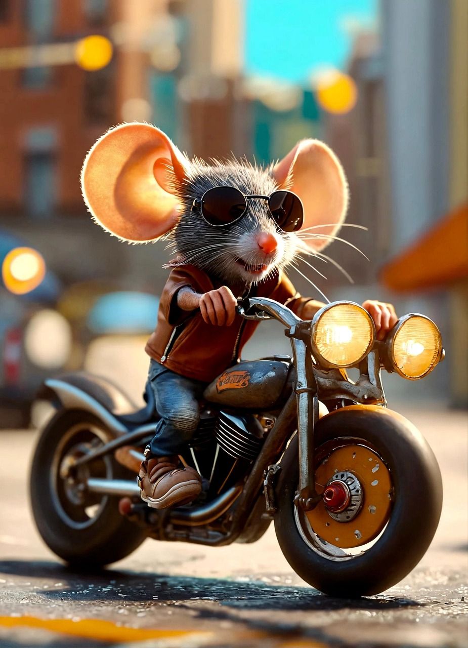 |Mouse on motorcycle|Pixabay|[Link](https://pixabay.com/illustrations/ai-generated-city-mouse-motorcycle-8718602/)|