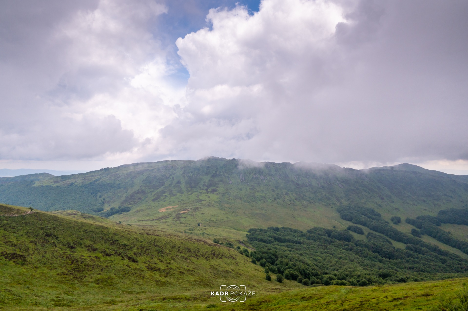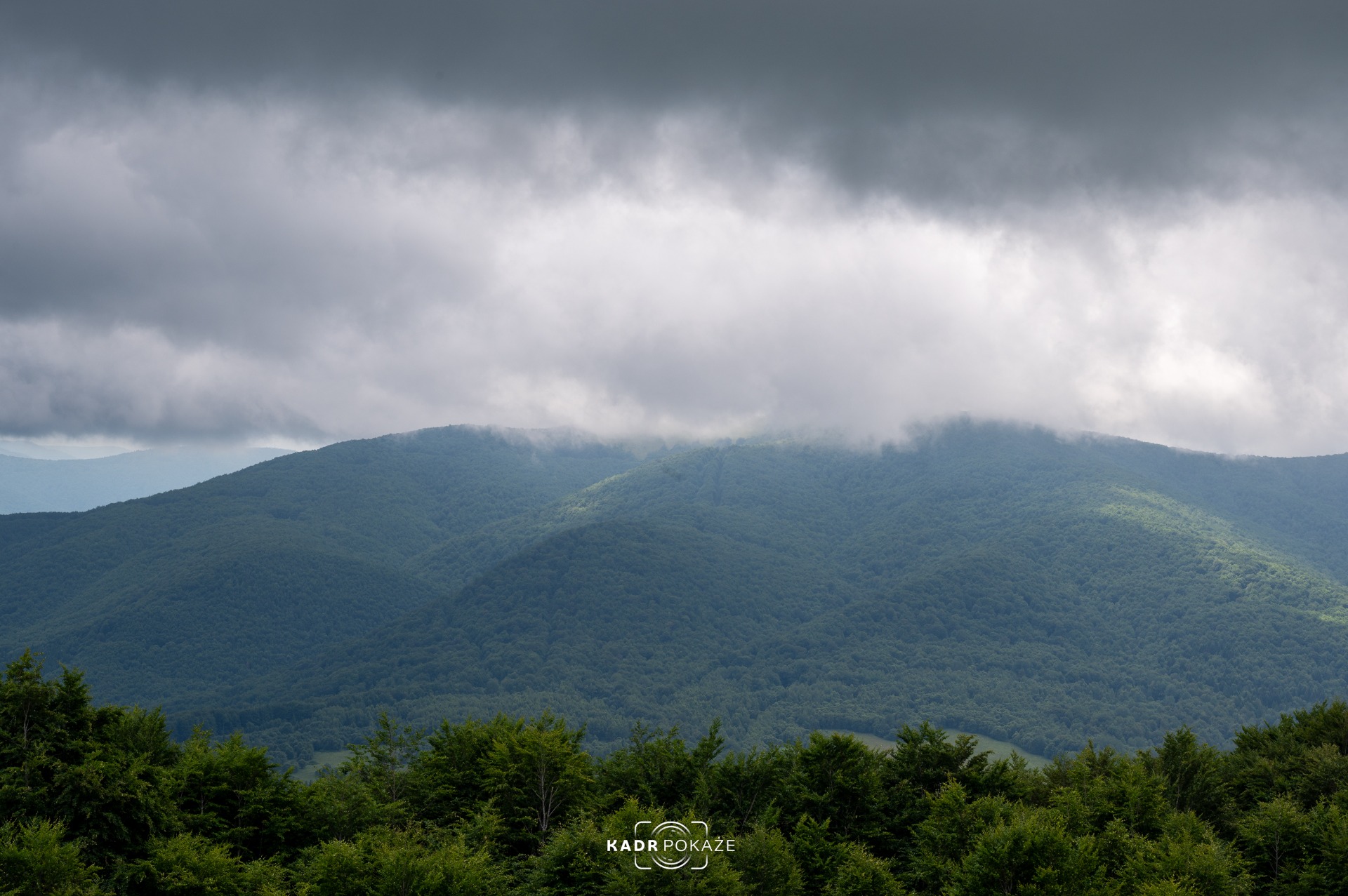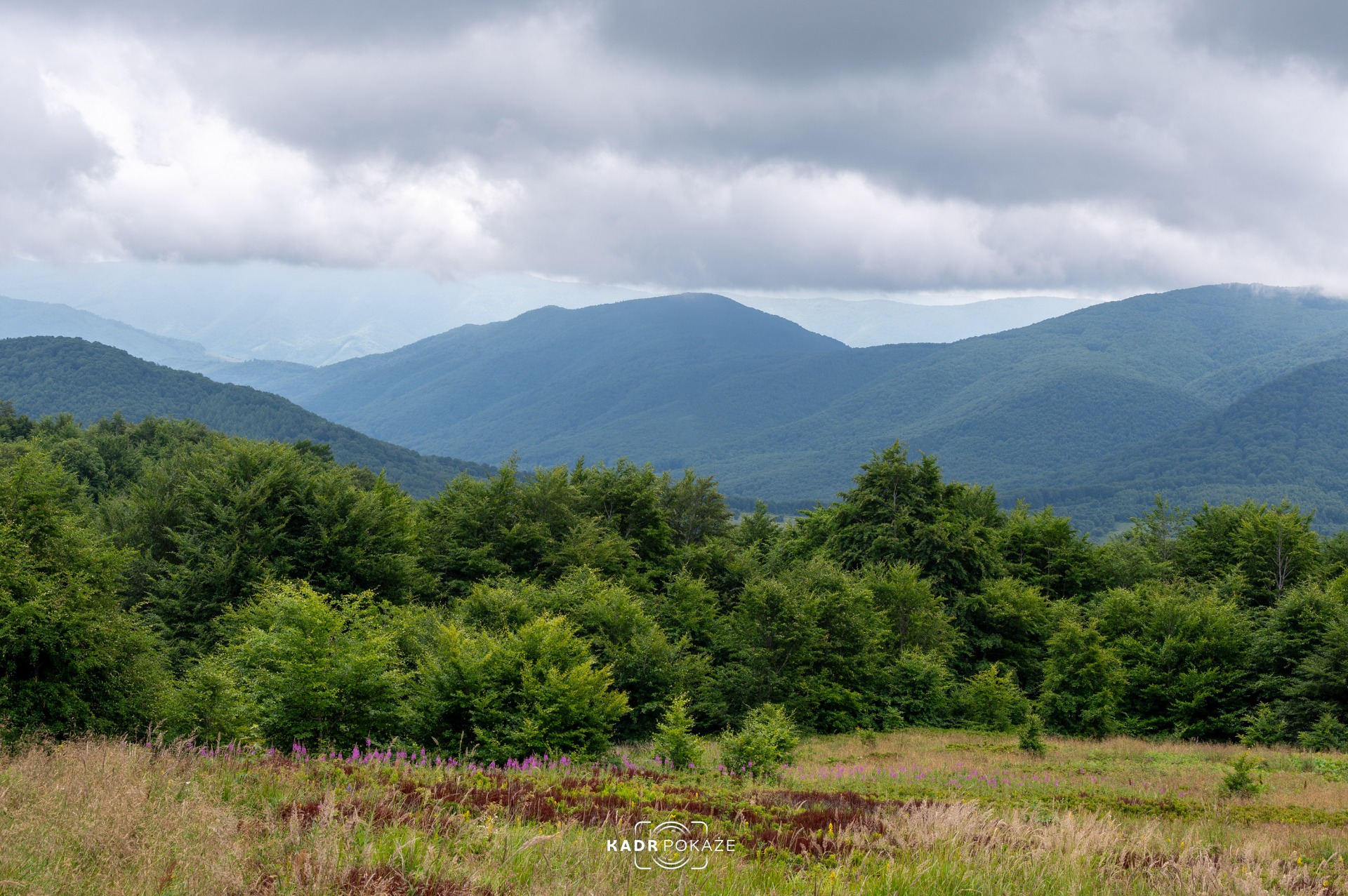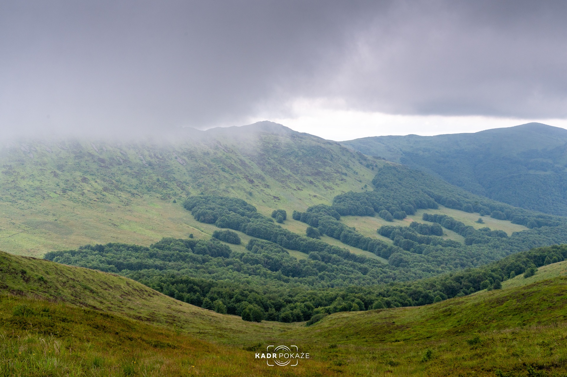 Po dotarciu na szczyt nie mieliśmy zbyt dobrej widoczności. Momentami wręcz nie było jej wcale. Tylko na krótkie momenty chmury i mgła się rozrzedzały odkrywając trochę Bieszczadzkiego piękna.