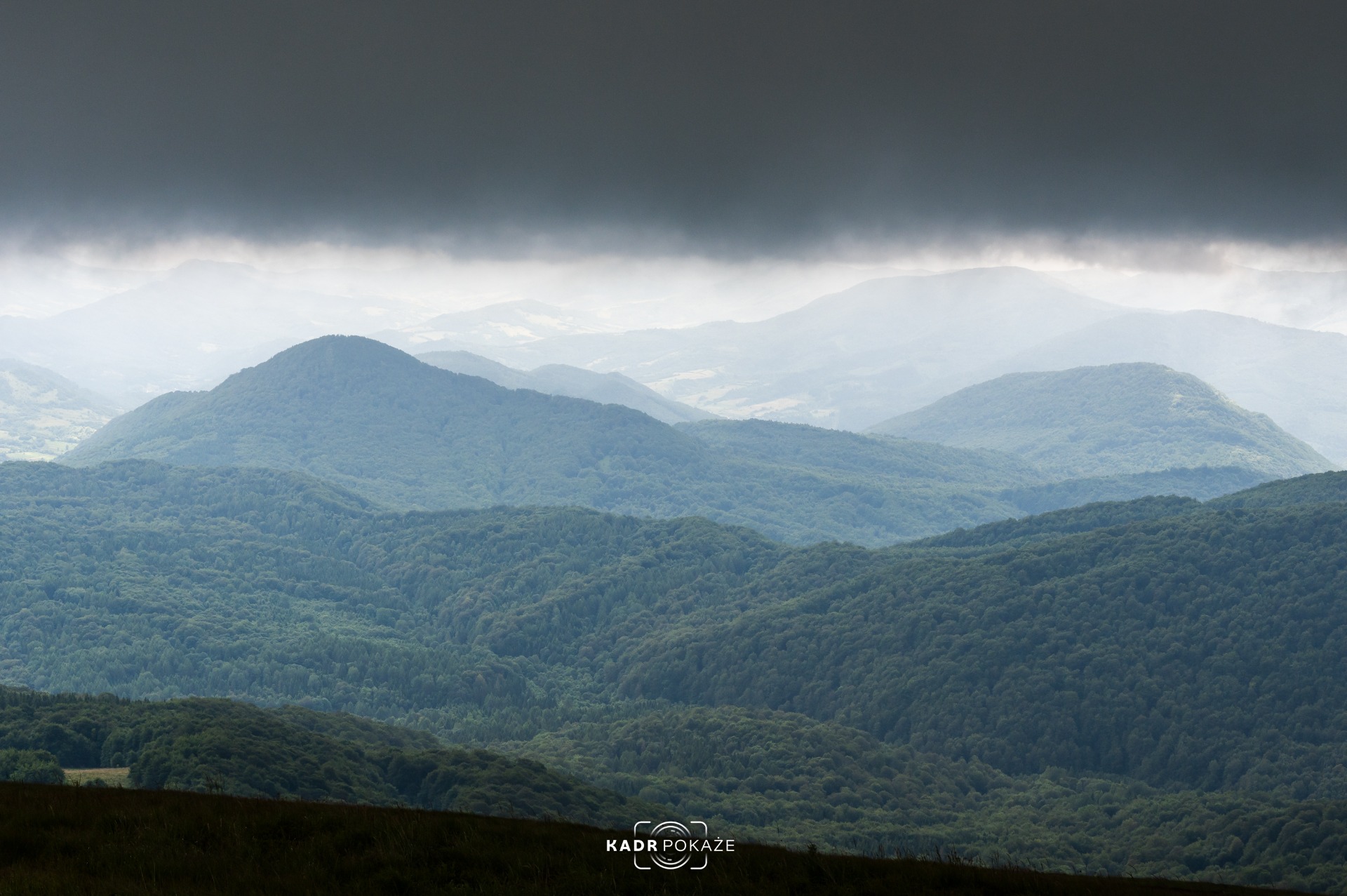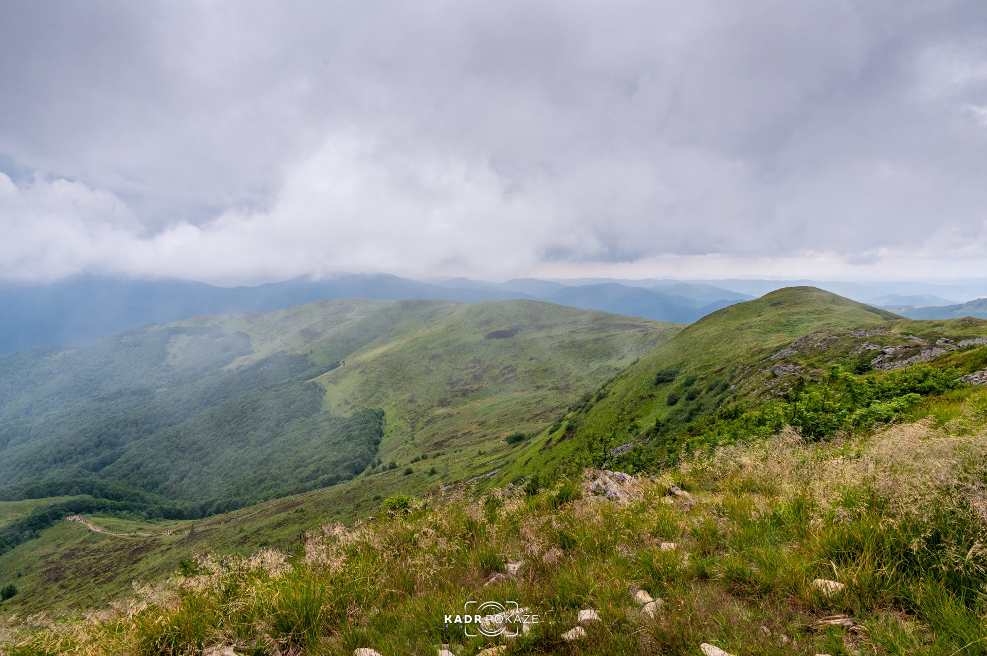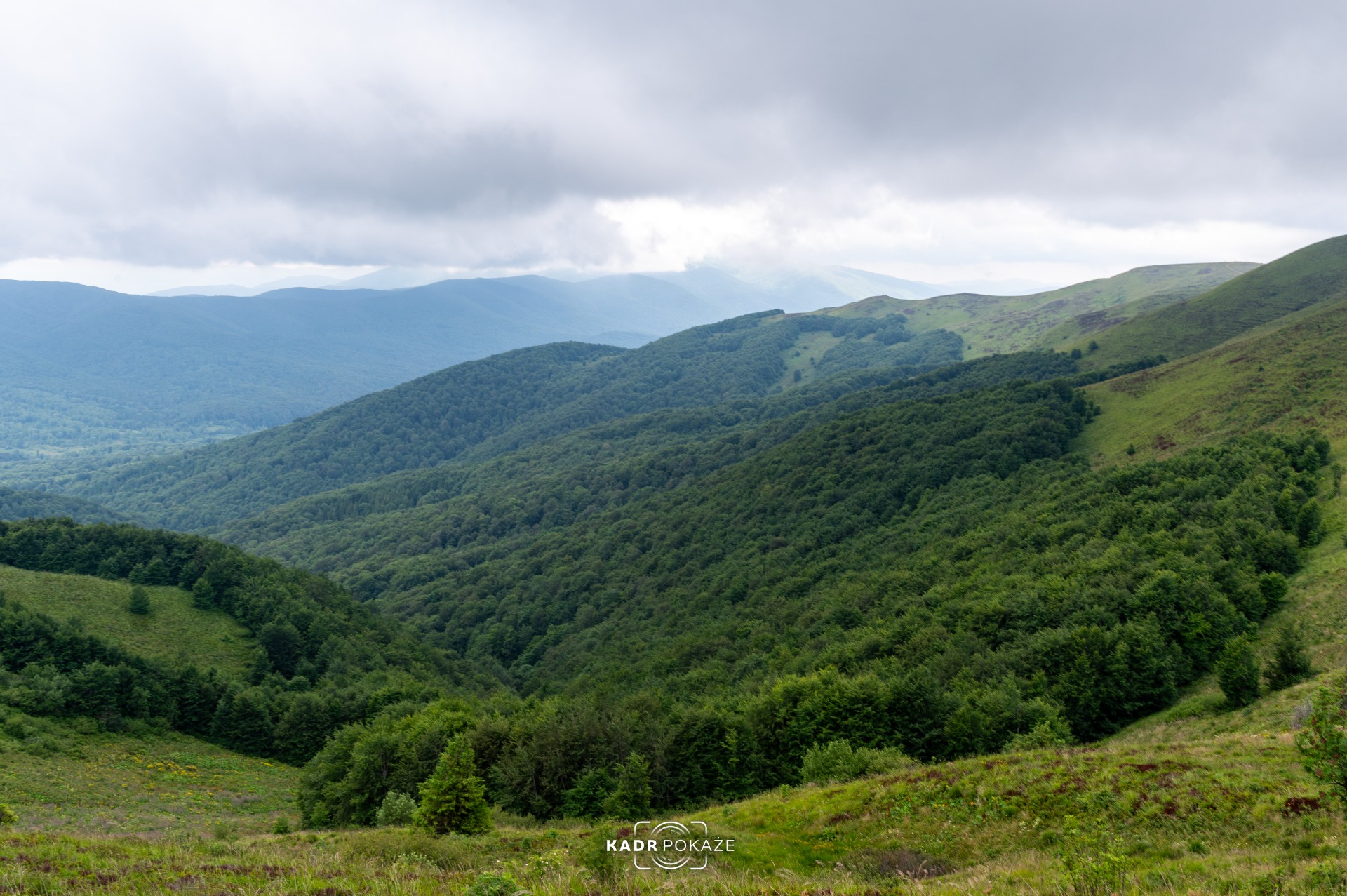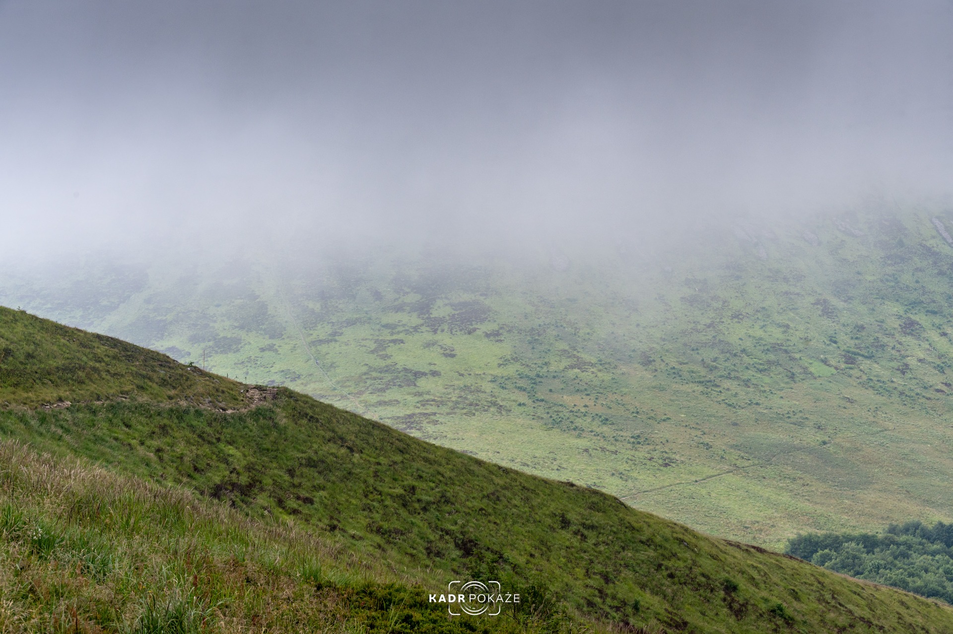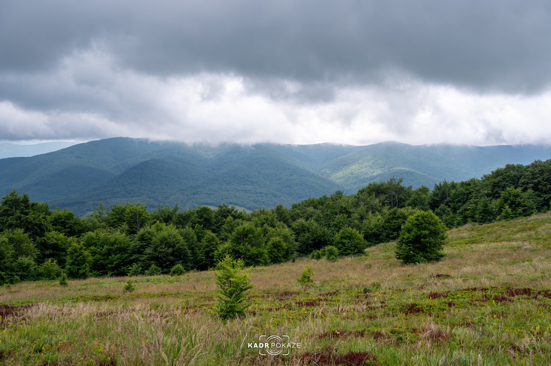 Po dotarciu na szczyt nie mieliśmy zbyt dobrej widoczności. Momentami wręcz nie było jej wcale. Tylko na krótkie momenty chmury i mgła się rozrzedzały odkrywając trochę Bieszczadzkiego piękna.