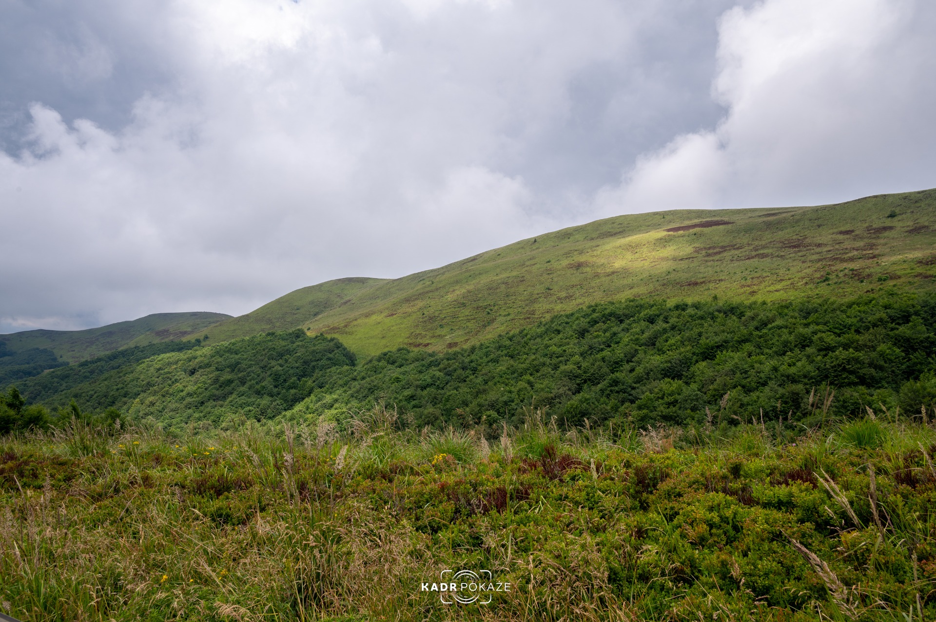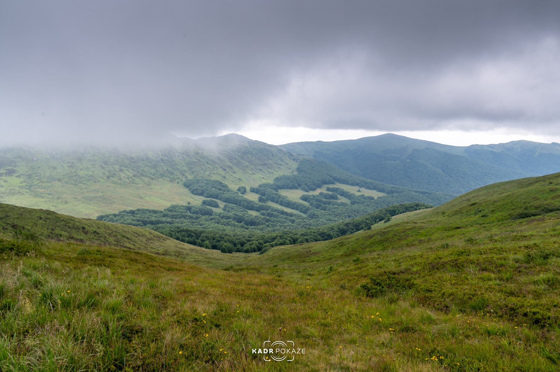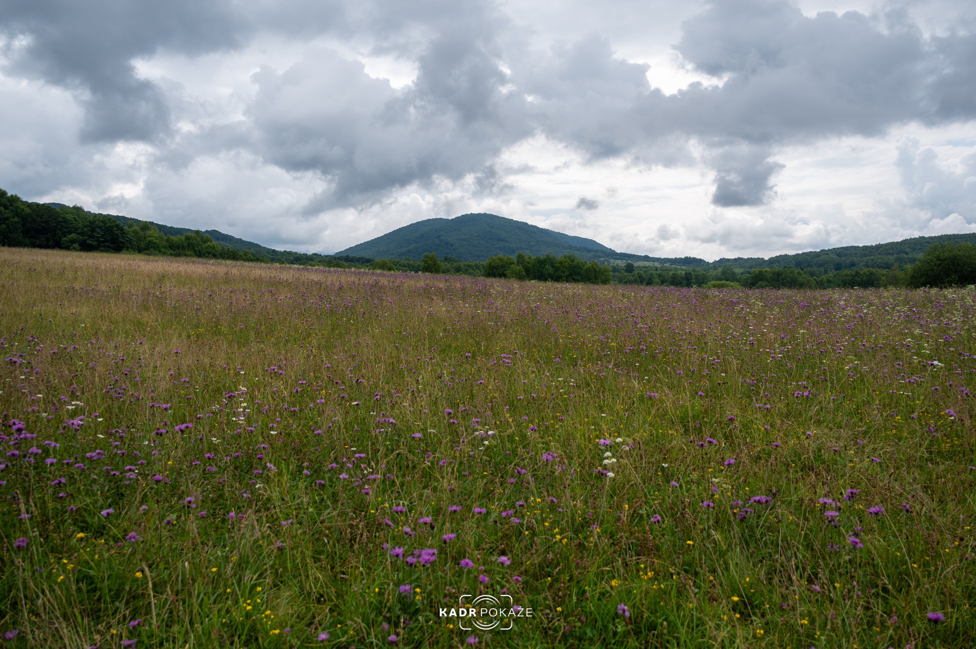 Na szczycie zjedliśmy posiłek i napiliśmy się kawy i po krótkim odpoczynku ruszyliśmy z powrotem na przełęcz, gdzie miała zapaść dalsza decyzja na temat wędrówki. Opcje były dwie... Iść dalej w kierunku Halicza czerwonym szlakiem i kontynuować pętlę mimo bardzo niepewnej pogody i możliwości opadów, czy odpuścić i wrócić w suchych ubraniach. Zdania były mocno podzielone, ale w końcu moja siostra podjęła decyzję za wszystkich i ruszyła niebieskim szlakiem w drogę powrotną bez słowa. Jak się później okazało chmury przeminęły i wyszło słońce, ale kto mógł wiedzieć ;) Na koniec ponownie zdjęcia z polany przy wejściu do Parku. tym razem podczas powrotu.