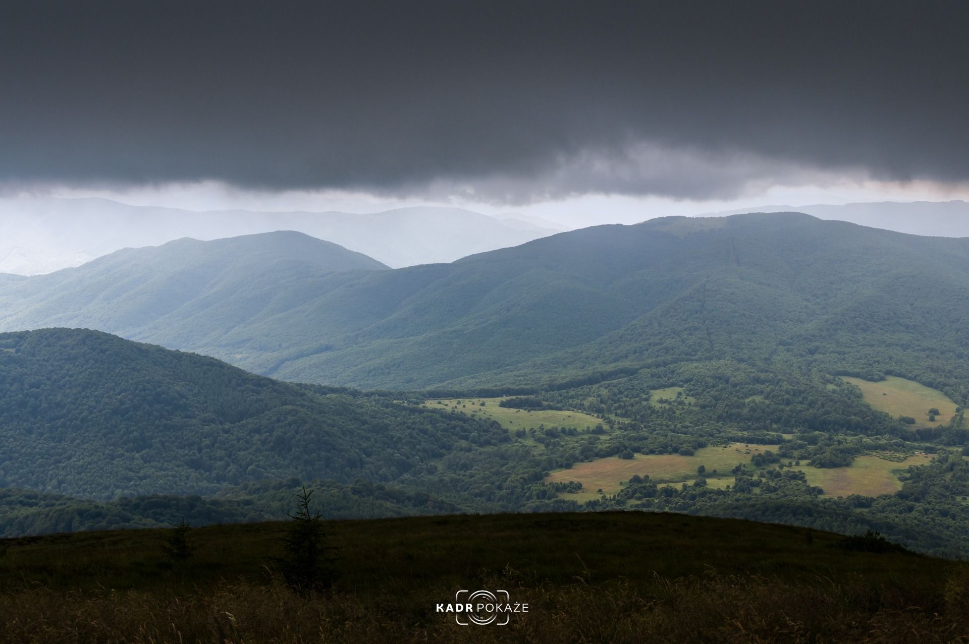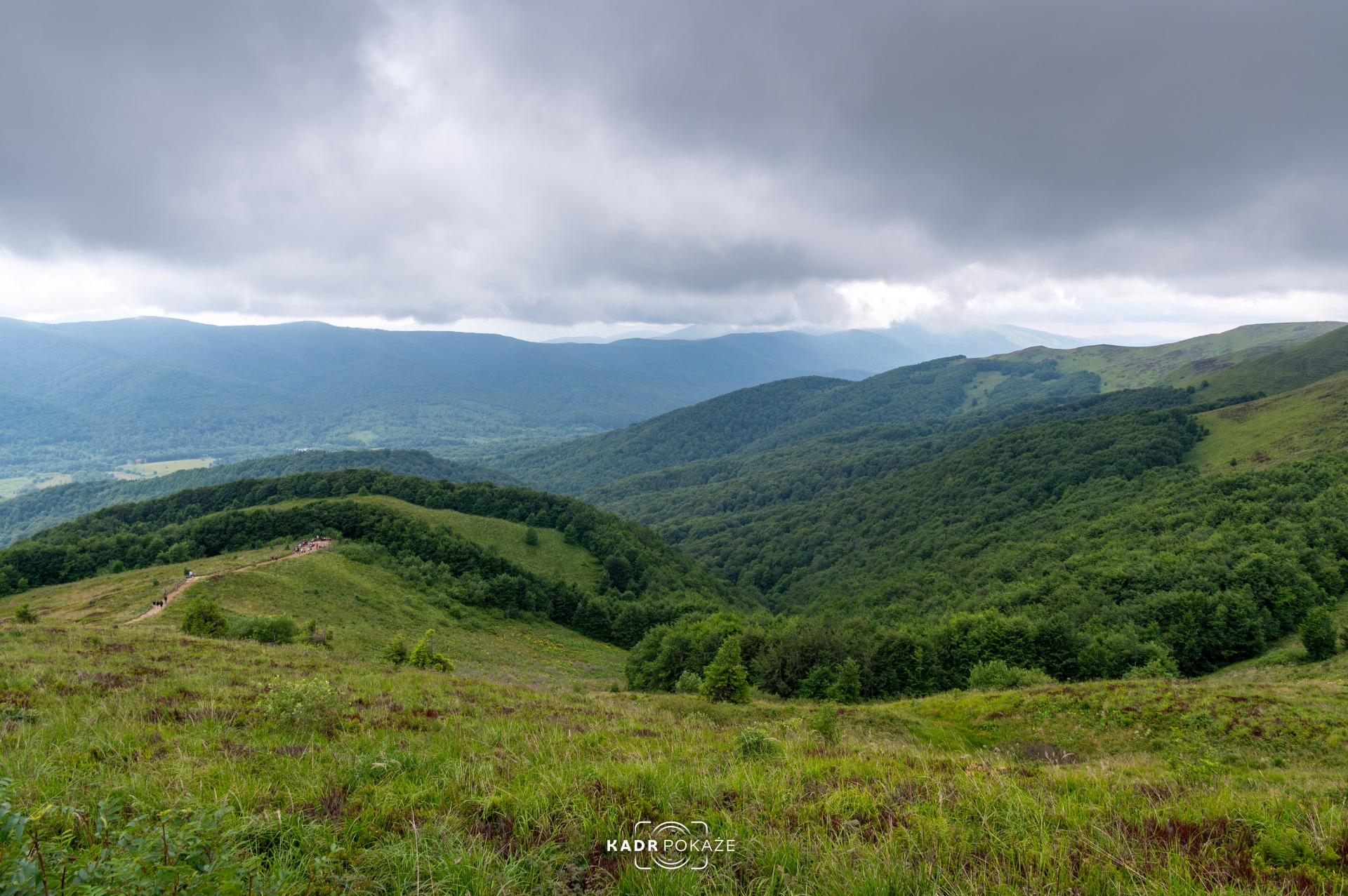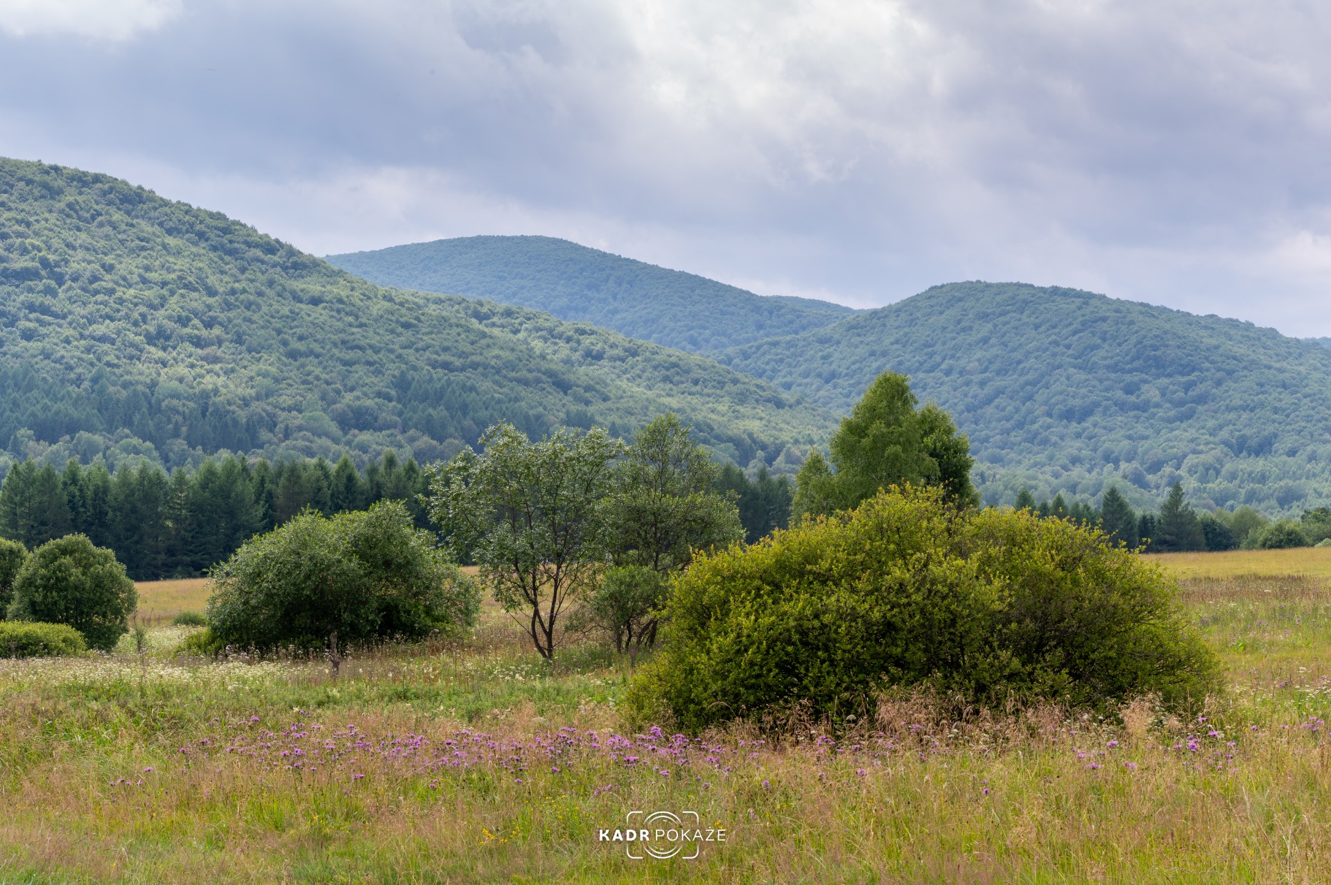 Na szczycie zjedliśmy posiłek i napiliśmy się kawy i po krótkim odpoczynku ruszyliśmy z powrotem na przełęcz, gdzie miała zapaść dalsza decyzja na temat wędrówki. Opcje były dwie... Iść dalej w kierunku Halicza czerwonym szlakiem i kontynuować pętlę mimo bardzo niepewnej pogody i możliwości opadów, czy odpuścić i wrócić w suchych ubraniach. Zdania były mocno podzielone, ale w końcu moja siostra podjęła decyzję za wszystkich i ruszyła niebieskim szlakiem w drogę powrotną bez słowa. Jak się później okazało chmury przeminęły i wyszło słońce, ale kto mógł wiedzieć ;) Na koniec ponownie zdjęcia z polany przy wejściu do Parku. tym razem podczas powrotu.