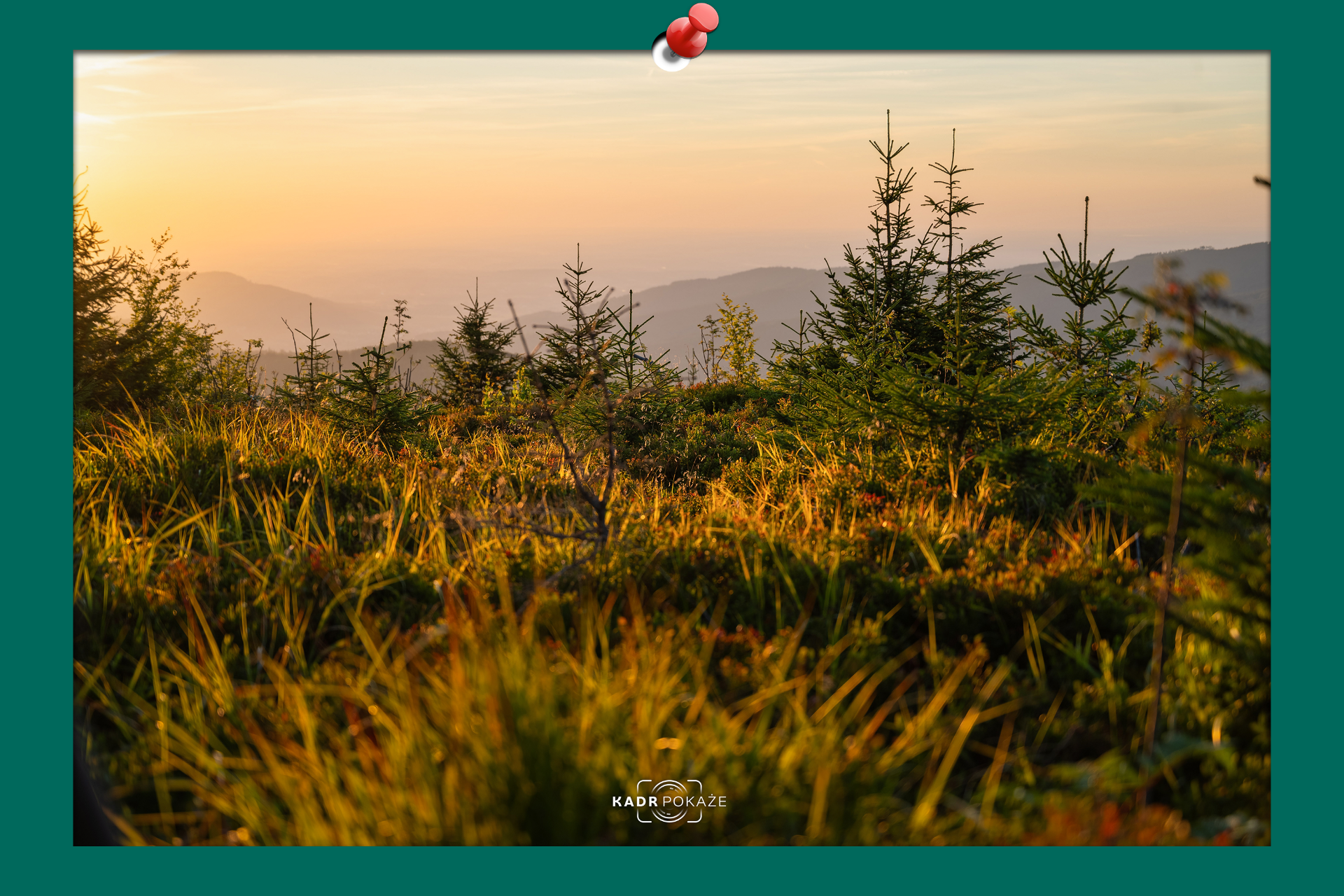 Jest tutaj obłędnie pięknie o tej porze dnia. Warto poświecić trochę czasu na głębsze poznanie tych miejsc. Mniej popularnych. Większość osób po prostu przechodzi tędy wędrując w stronę głównych szczytów np na Skrzyczne. Nie zatrzymują się na dłużej na samym szlaku grzbietowym. A warto. Powiem szczerze, że w mojej subiektywnej opinii samo Skrzyczne nie oferuje najładniejszych widoków w tej części Beskidu Śląskiego. Dla mnie stanowi jedynie miejsce odpoczynku, gdzie można skorzystać z usług schroniska. Ewentualnie pod polem namiotowym otwiera się dość ciekawy widok na Żywiecczyznę i Beskid Żywiecki, ale o tym w następnym poście, ze wschodu słońca.