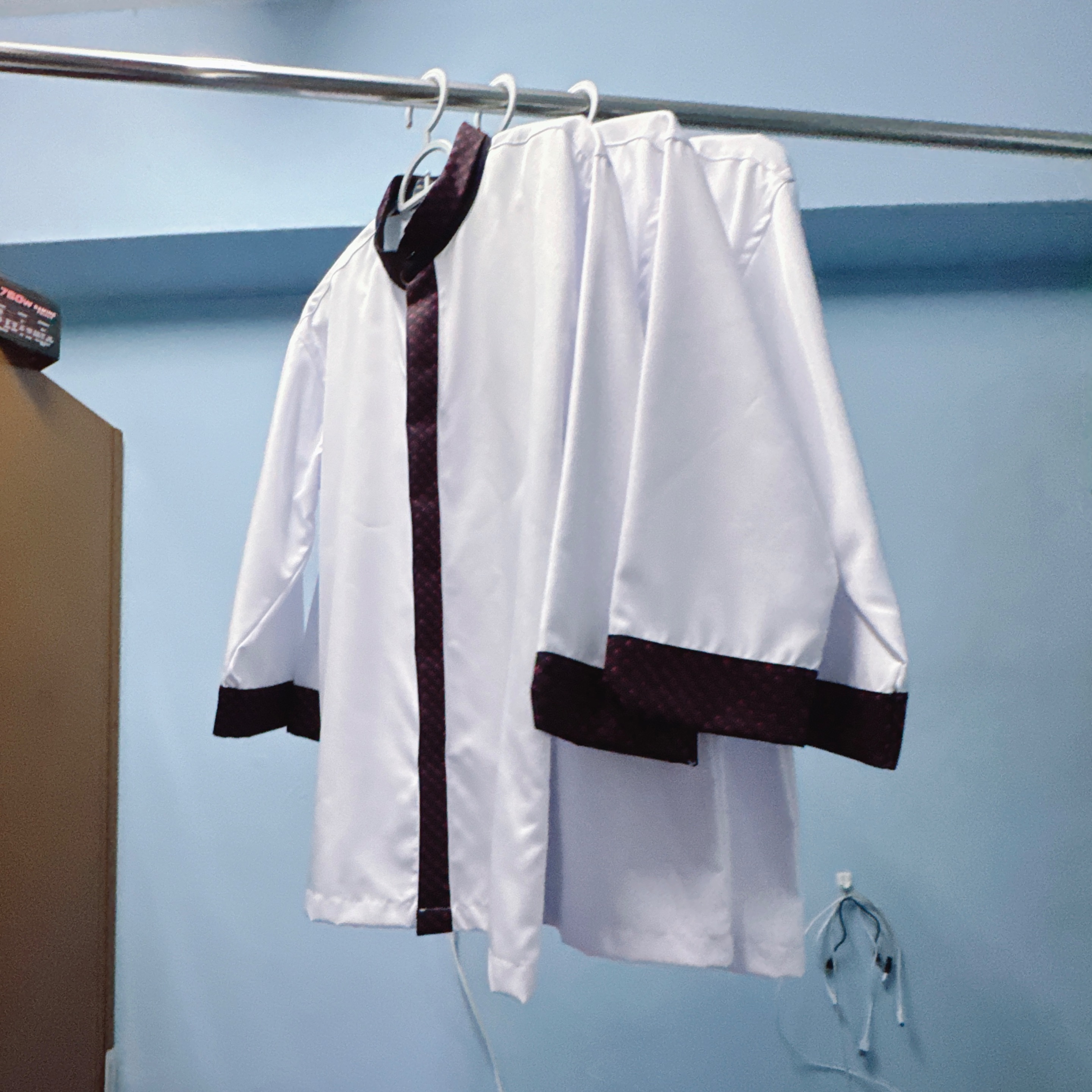 我工作的那间公司在今年突然宣布要换掉我们原本的白衣制服。我现在拥有的这白衣制服是我在2022年的时候以旧换新换过一次,那时旧和新还是一样的设计,换来"新"的也是别人穿过的二手制服,只是没我之前那套穿了好多年的那么旧。