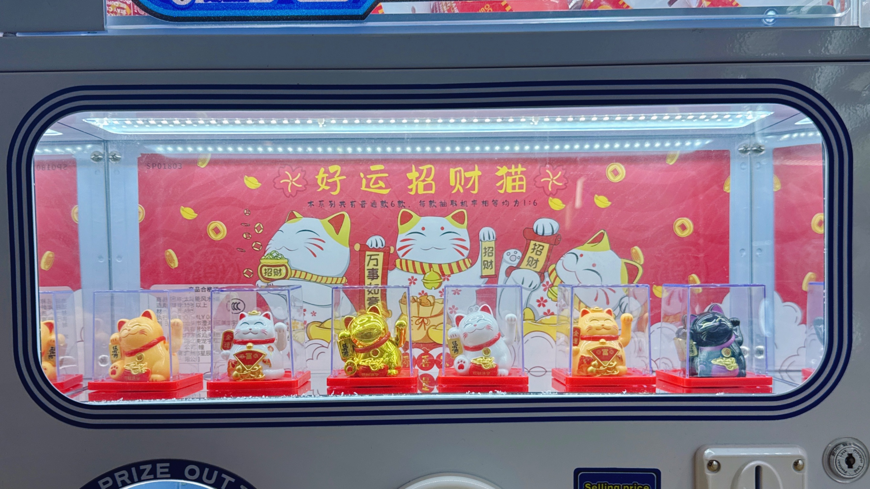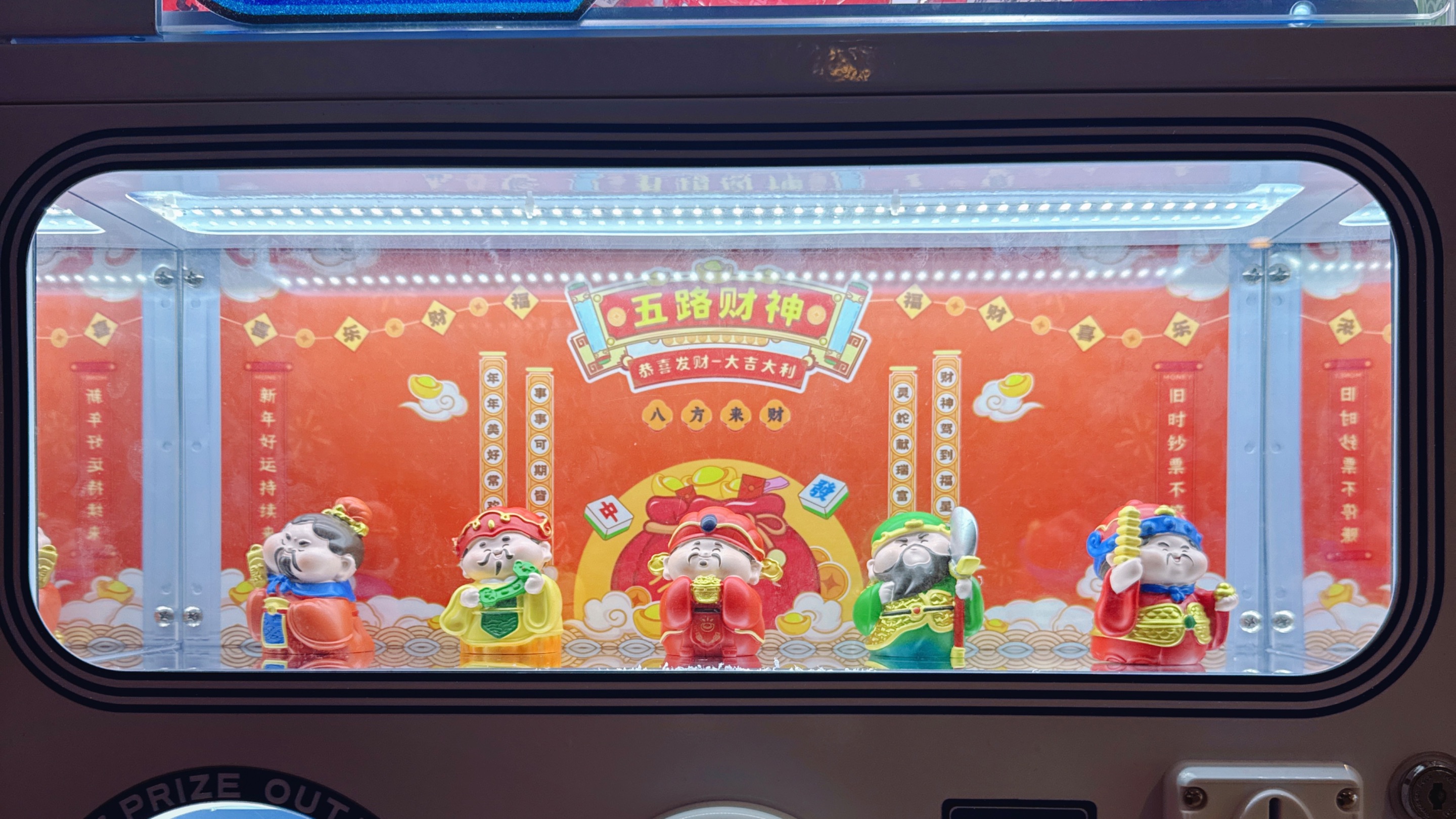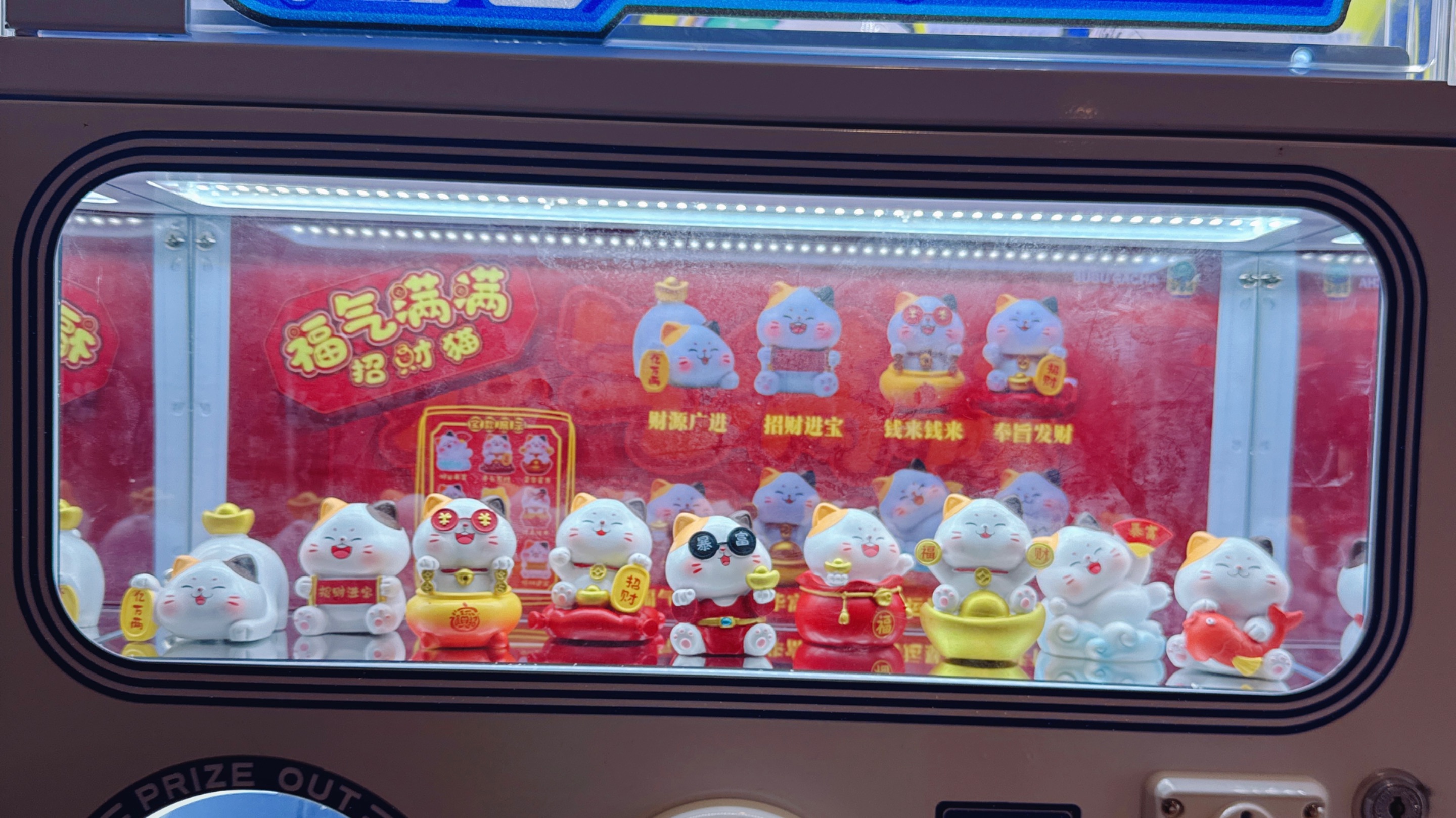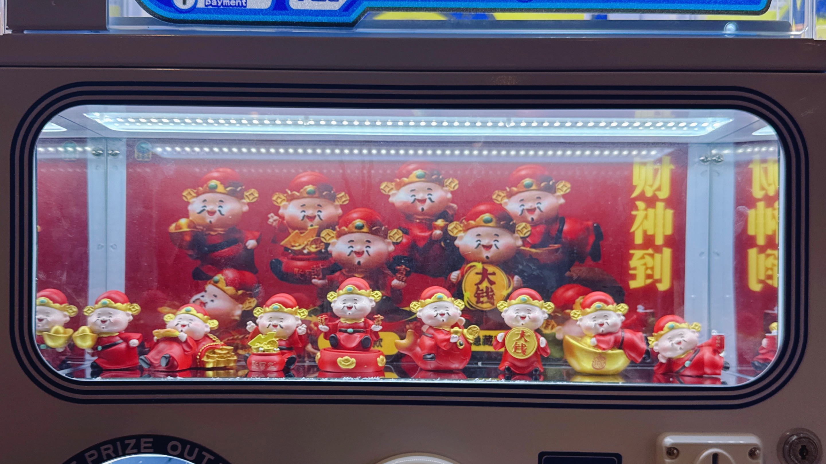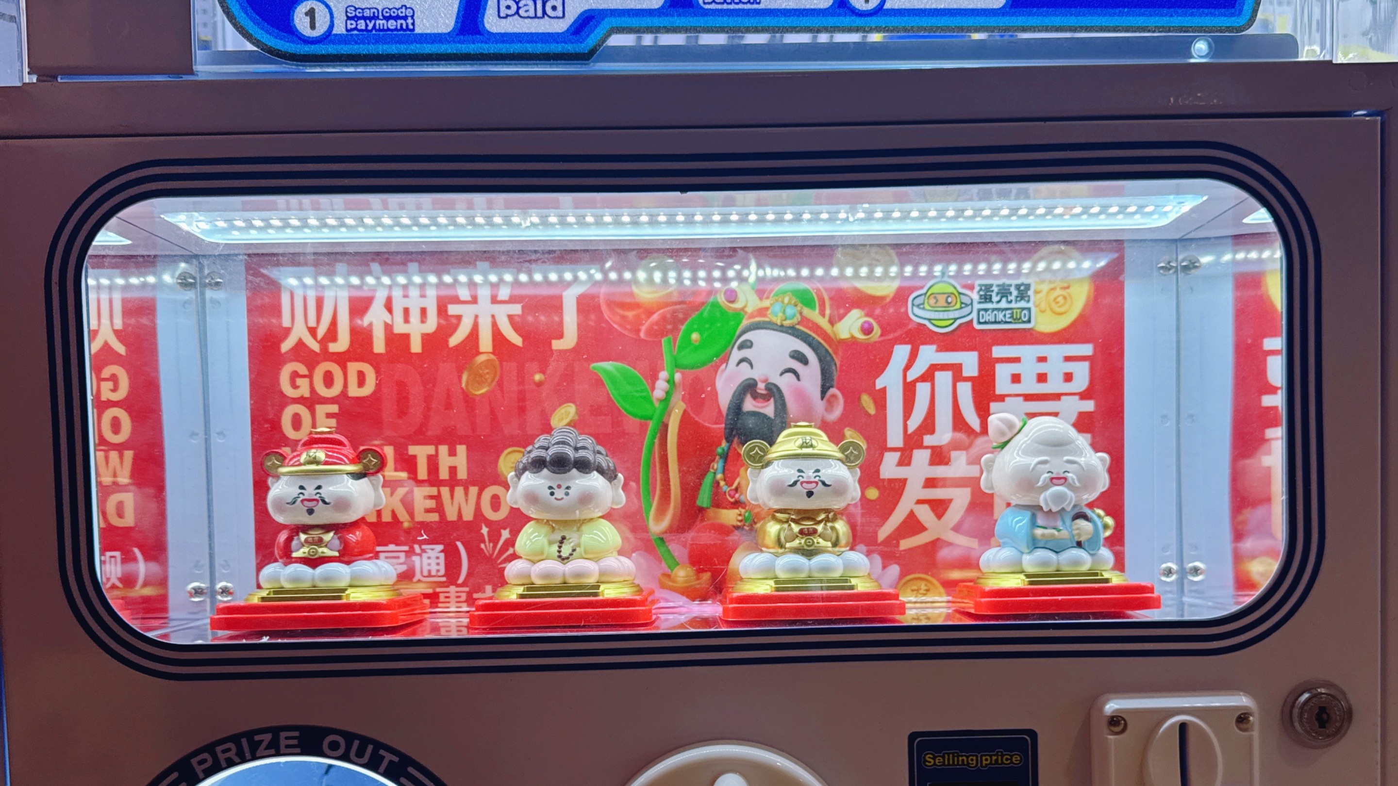 这里的"扭蛋机"里面的物品都是跟 发财 有关,大部分都是「招财猫」和「财神爷」,我拍了好几个我自己感兴趣的物品,照片如下: