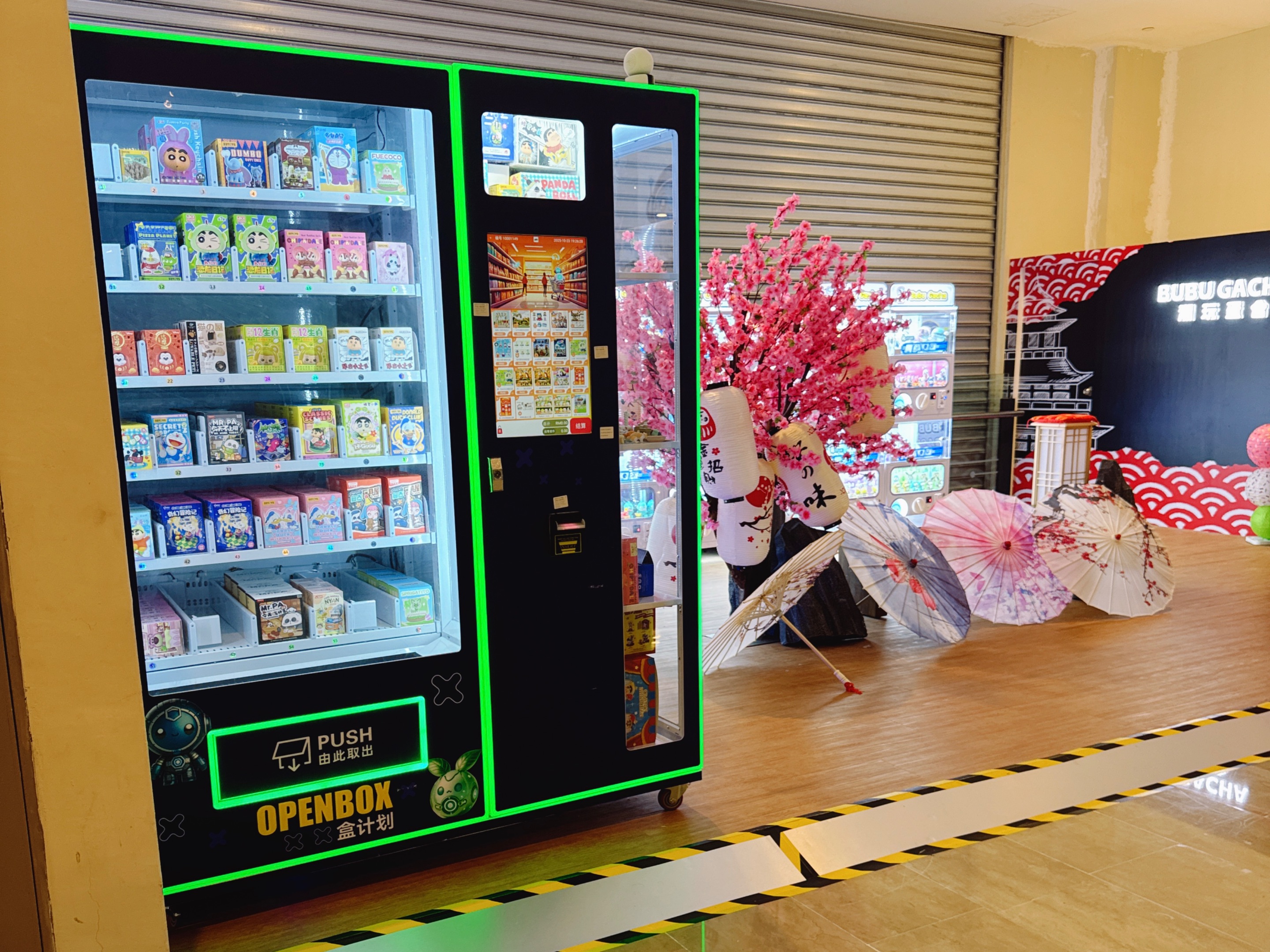 店名招牌门口就有个盒子贩卖机,不懂是不是盲盒?