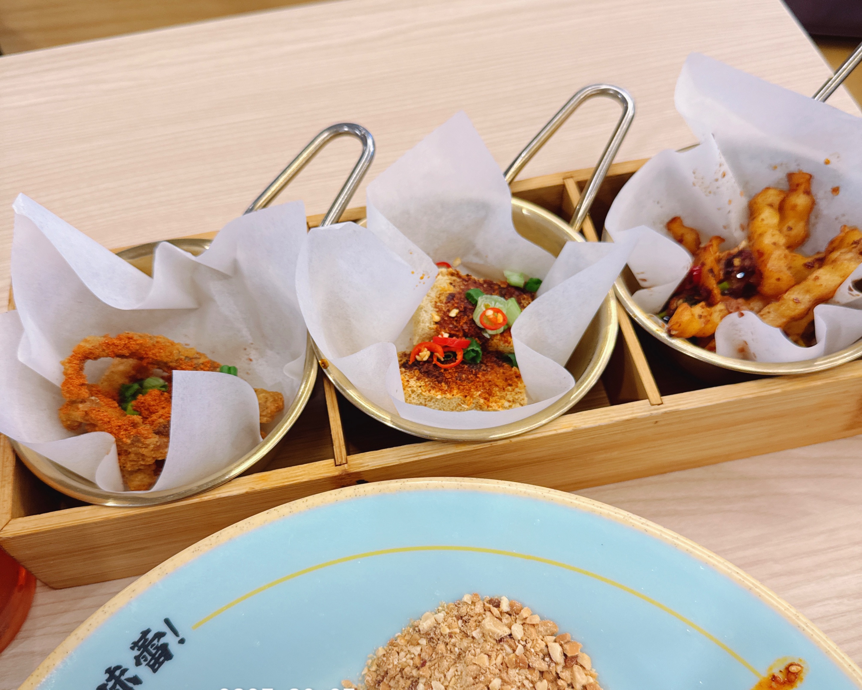小食三宫格: 🔘经典小酥肉 🔘招牌包浆豆腐 🔘招牌狼牙土豆