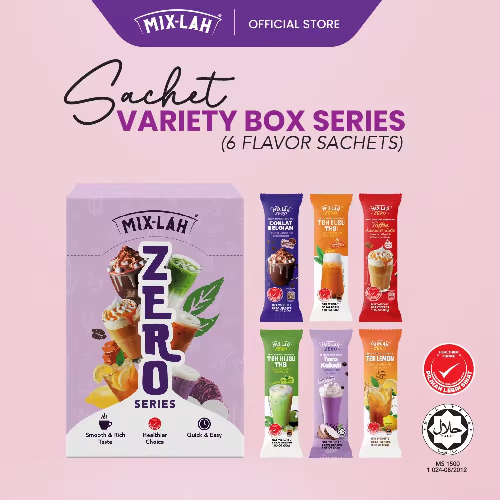 在某个机缘巧合之下,我在网购平台 Lazada 里看到一个名为 MIX-LAH 品牌的速溶饮料。这个产品是个小盒子,里面装着 6 小包不同口味的速溶饮料。