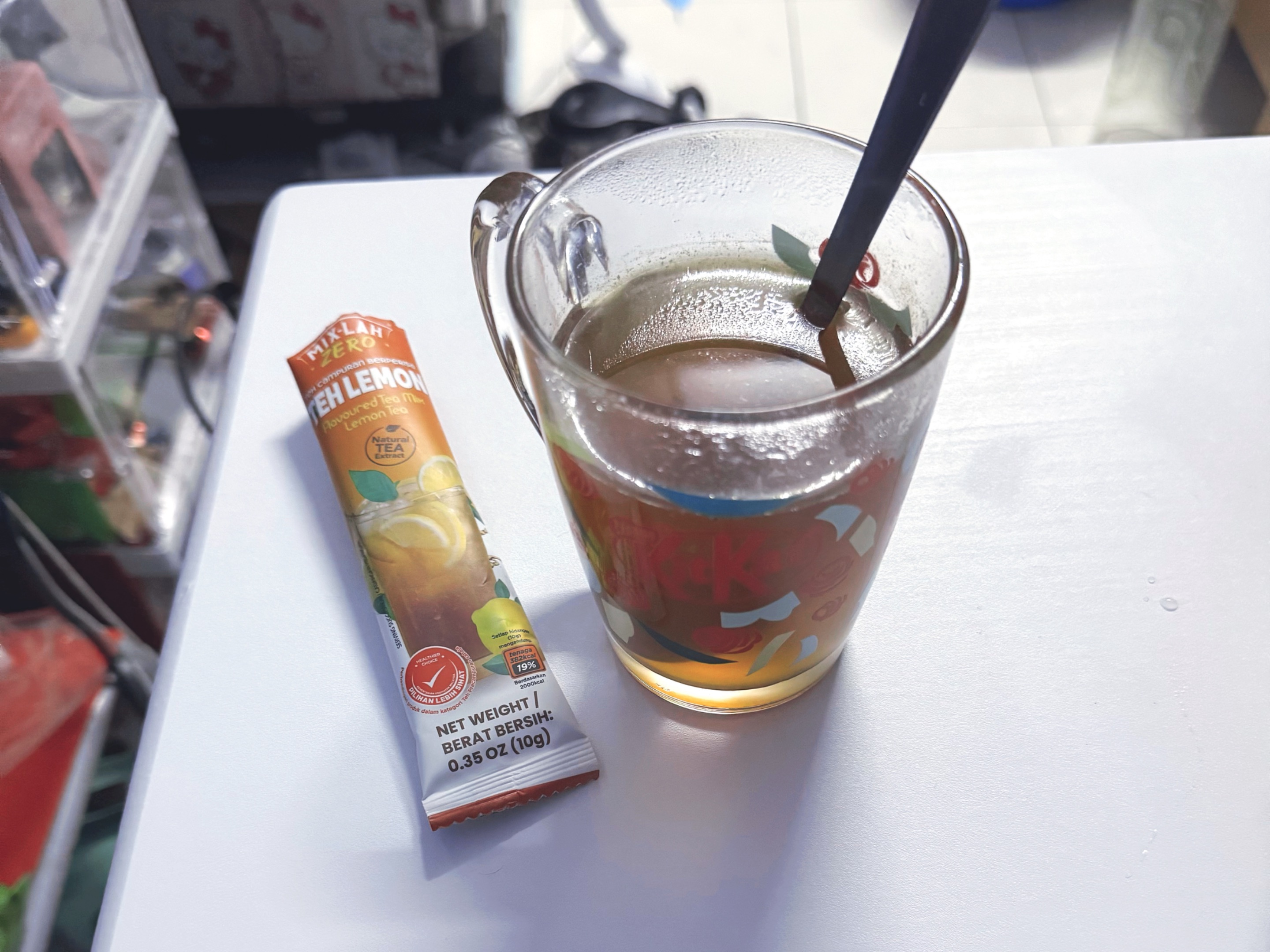 第四天喝了柠檬茶,粉泡柠檬茶竟然也能还原出了真正柠檬茶味道,只是甜味更重了些,这是放了多少糖啊? -