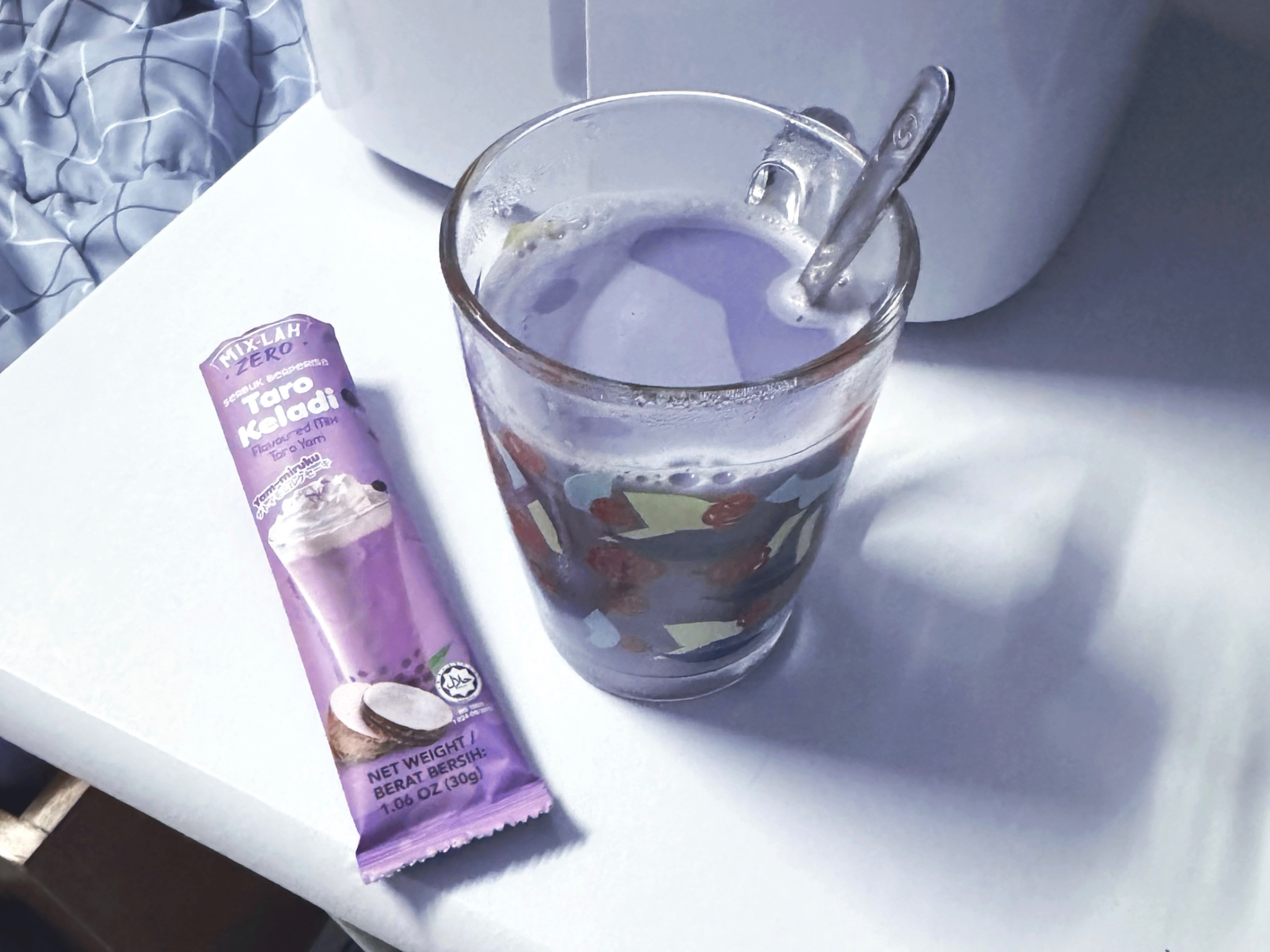 因为有香芋才买了一整盒的 MIX-LAH,所以第一包就先开了这包来喝。浓厚的香芋香味果然好喝! -