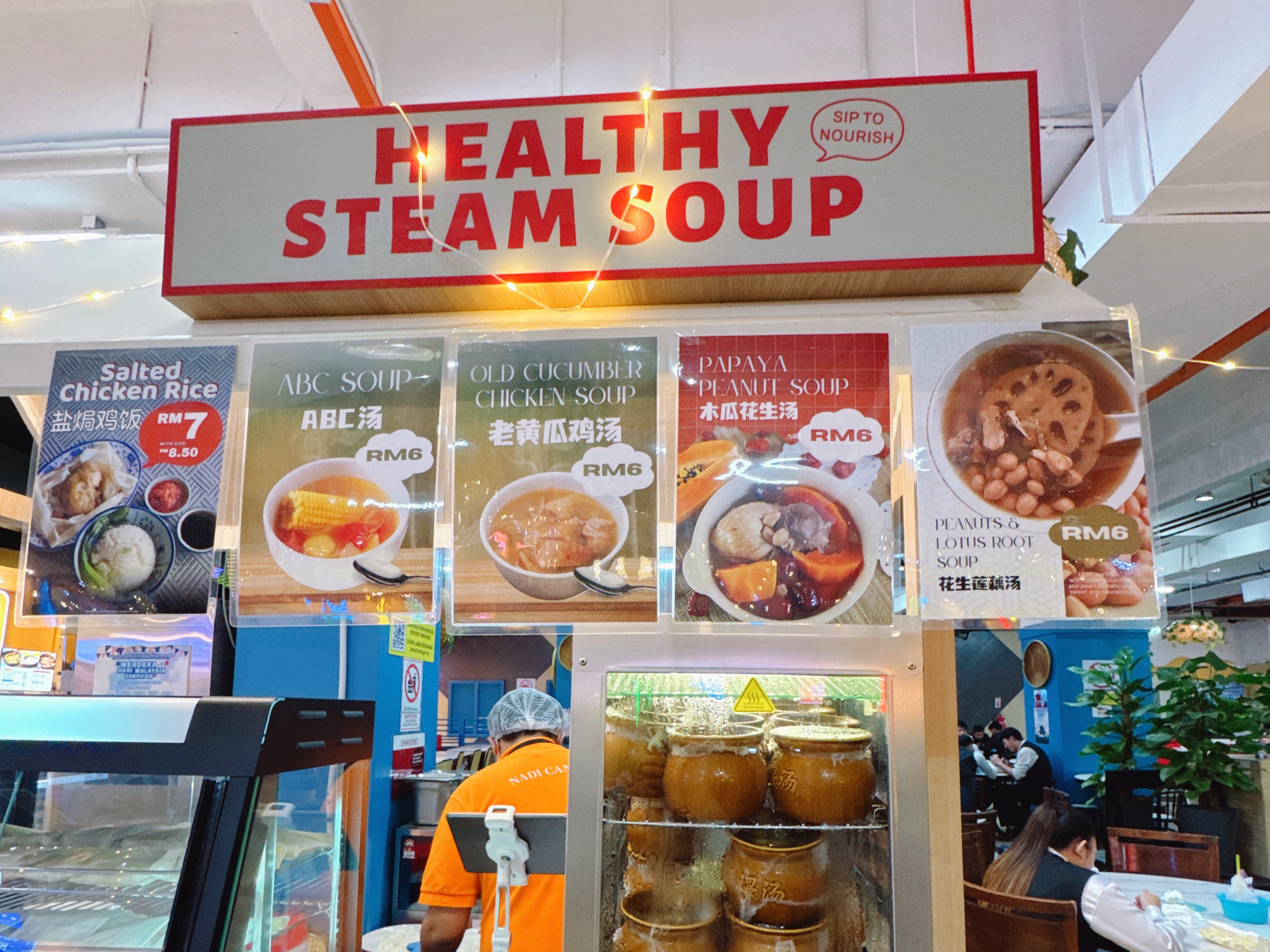 RSC1 Food Court 的中间位置新增了一个卖盐焗鸡饭和炖汤的小摊位,摊位名称叫 “Healthy Steam Soup”。