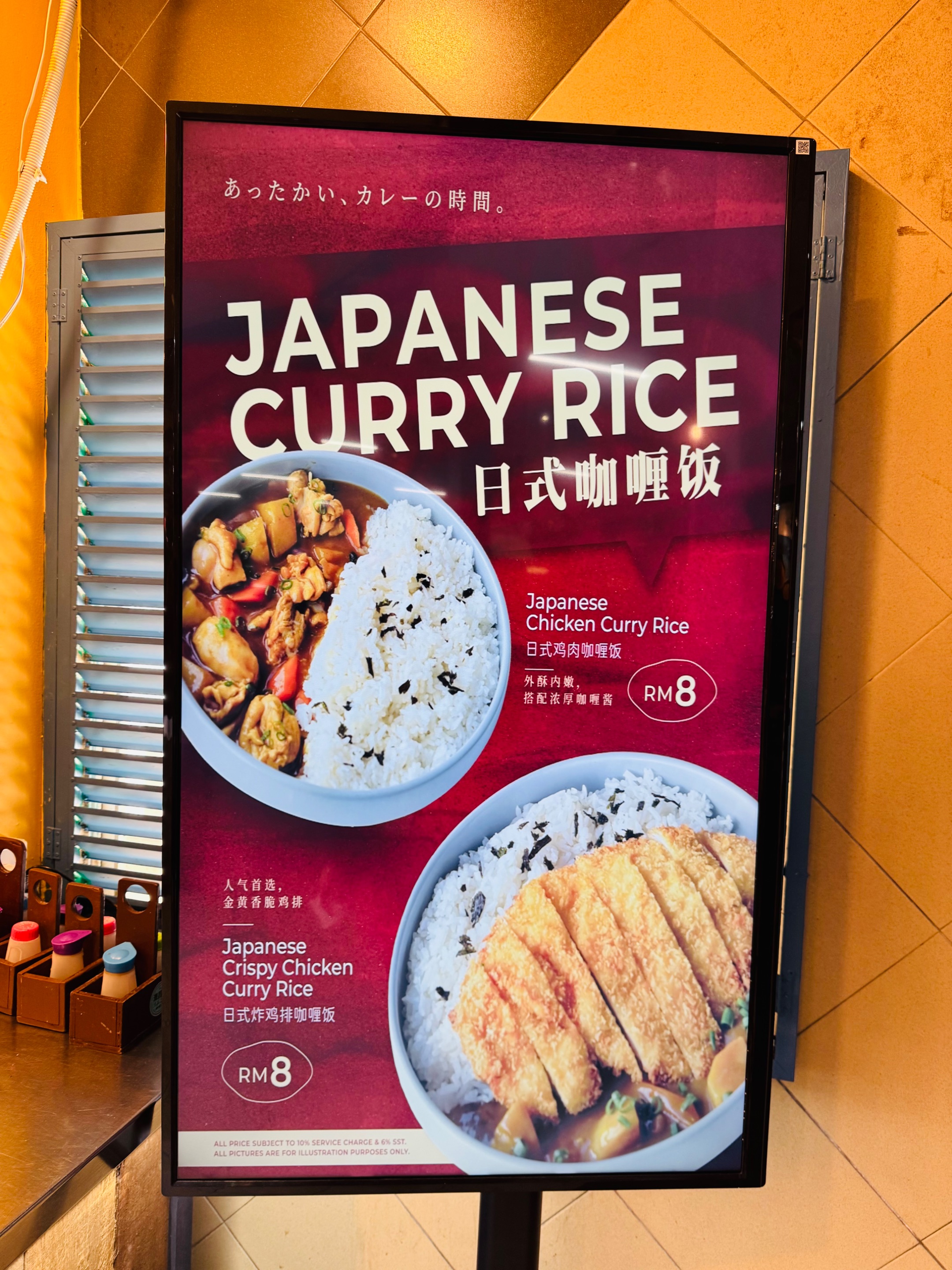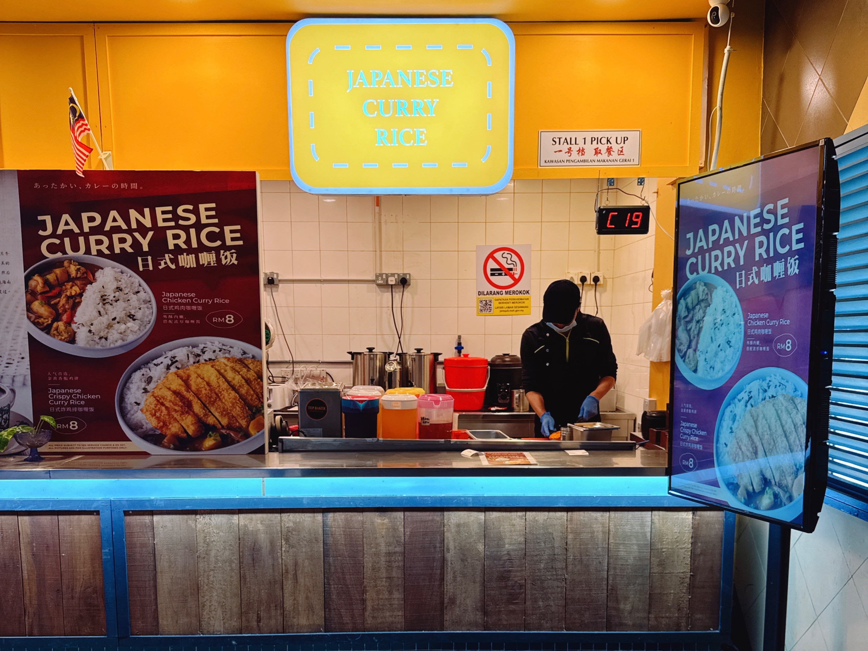 日式咖喱饭 位于 RSC1 Food Court 最右边的“一号档”,这一号档是这里唯一一档卖饮料的档口,不知道是不是饮料赚不多,开始想要卖一些简单的食物多赚一些?