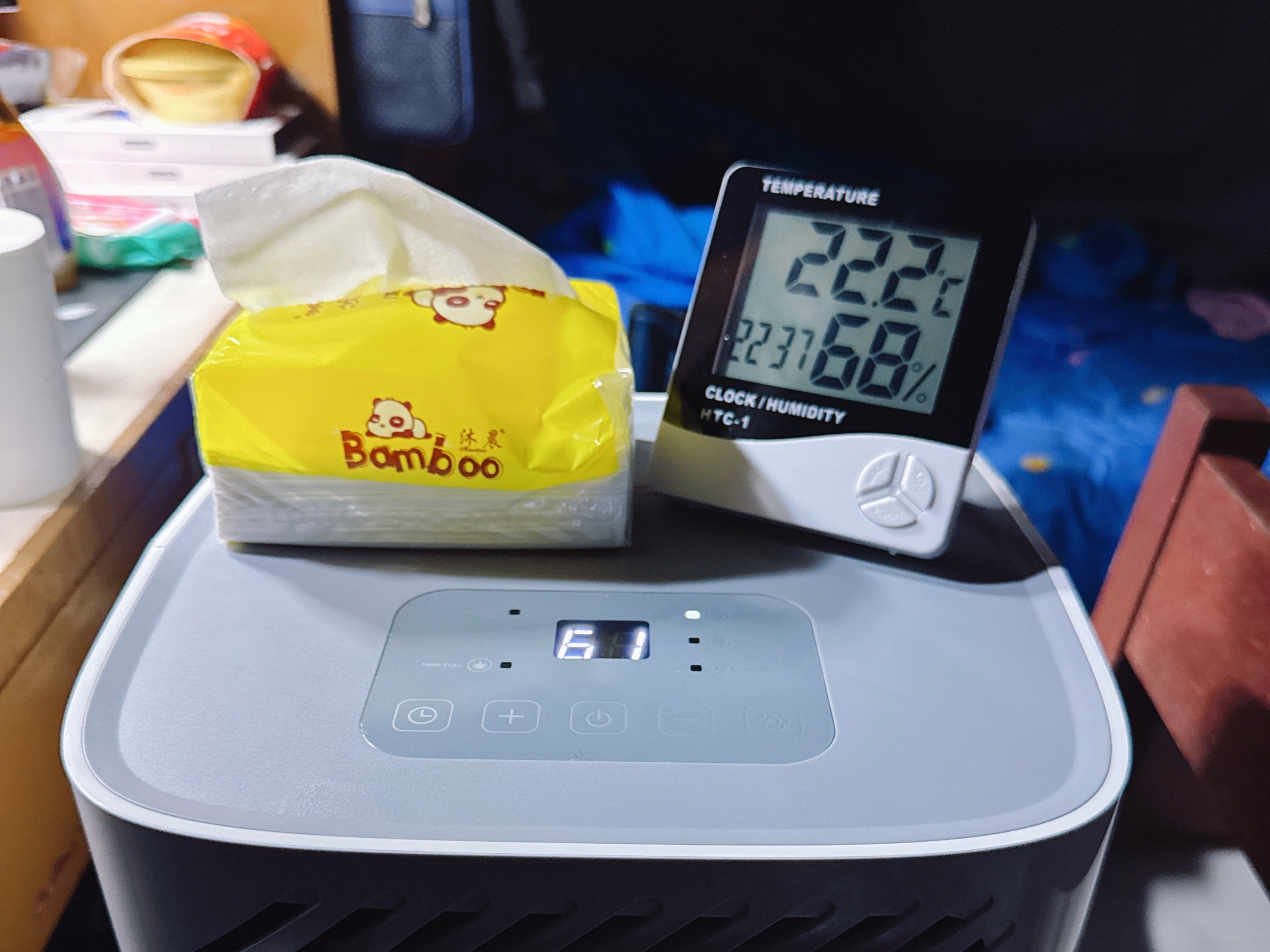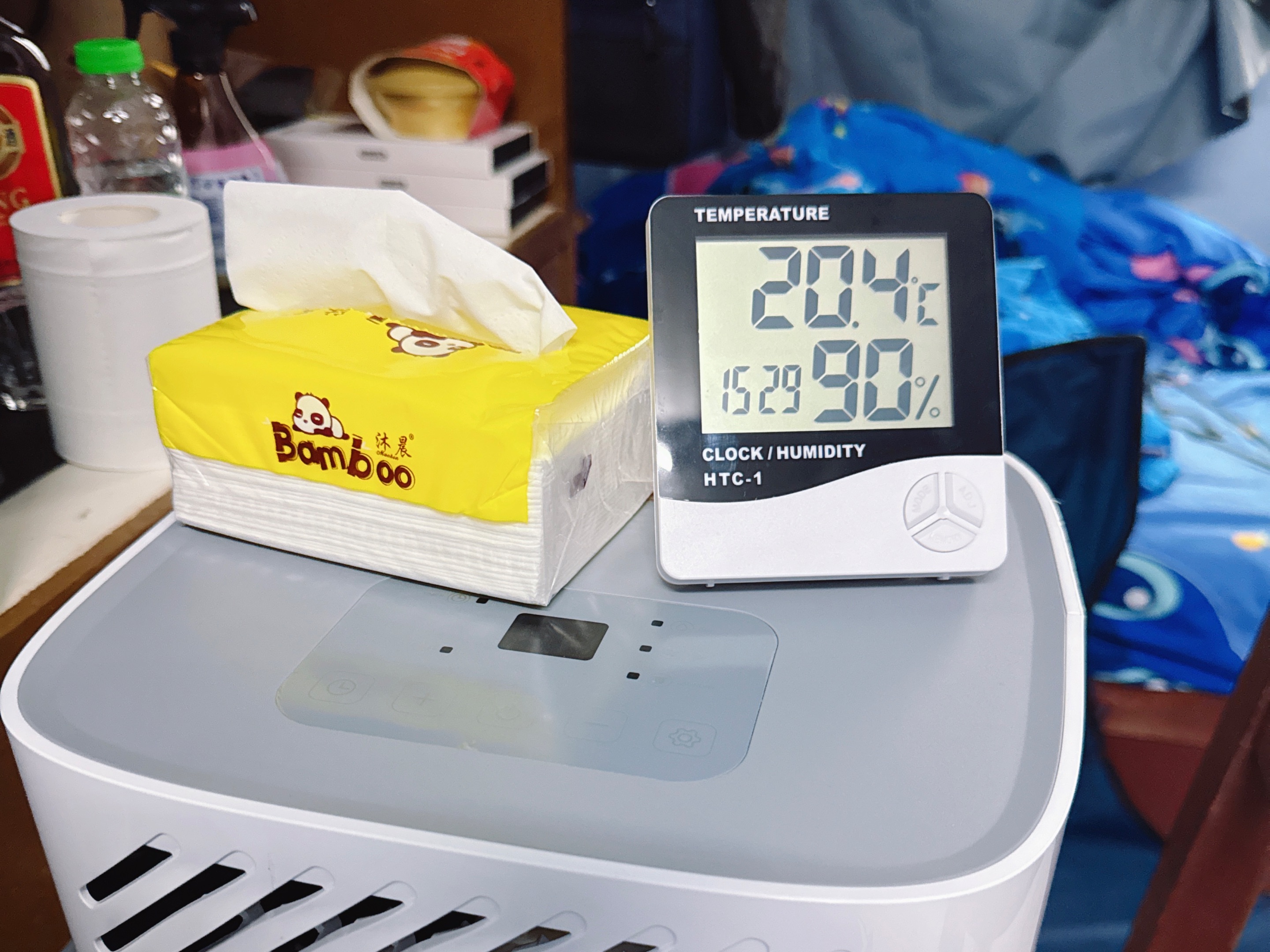 除湿机没有开到 24 小时运转,上班前关机后直到下班回去才开机,湿度又回弹至 90%,又回到了又冷又湿的状态,真的好烦躁。