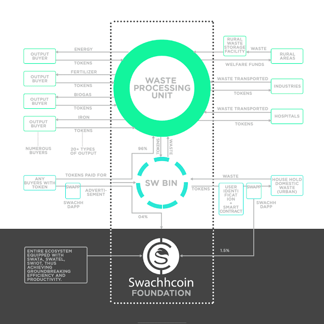 Swachhcoin is a distinctive blockchain-powered try at micromanaging wastes from households and industries and expeditiously changing them into helpful product. These product, at the tip of the method, are of upper amount. Swachh scheme is actually a DAO (Decentralised Autonomous Organisation), ruledautonomously on the idea of pre outlined directions within the kind of sensible contract. There area unitnumerous sensible contracts in a very DAO. Initially, we have a tendency to will take into the realm of, however not restricted to green-energy, fertilisers and power generating gases as of currently. howevergiven the fast progress of elementary analysis on economical product conversion, we glance forward to adapt and higher the prevailing operating technology. Managing resources isn't an easy task and given the terrible state of waste resources management in most countries, Swachhcoin can facilitate model a perfectsystem. For a foolproof system, effective decentralization and sturdy micromanagement area unit the underpinning. this can be wherever the blockchains technology and several other sub-programs offered by Swachhcoin comes into image. Our can is to make a very property, clean community development round the world whereas up the economic conditions of all people professionally related to the trade in any capability in conjunction with the domestic households.