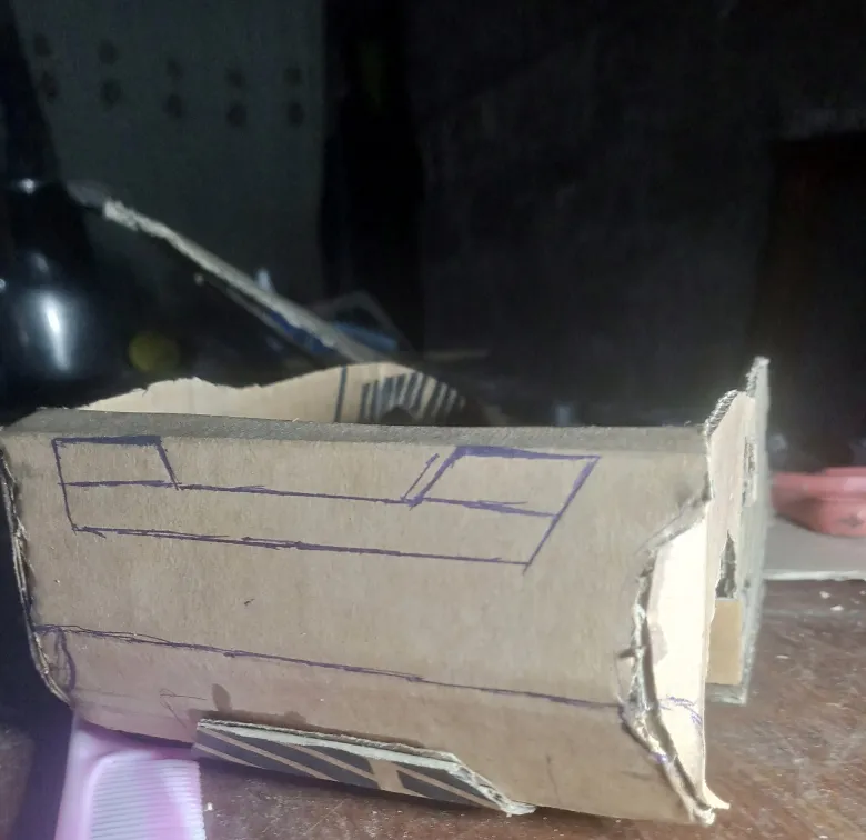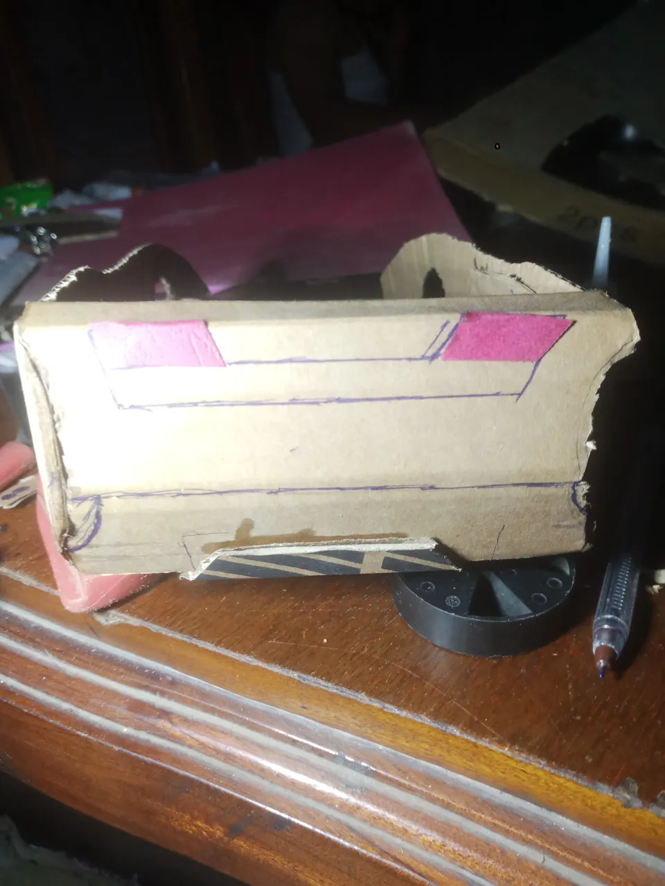 4. The Next Step is to join the Body And the base together. After that, you can add more carton to the area were the Tyres would seat. I used a piece of Wood instead of Carton since I'm making it for someone.