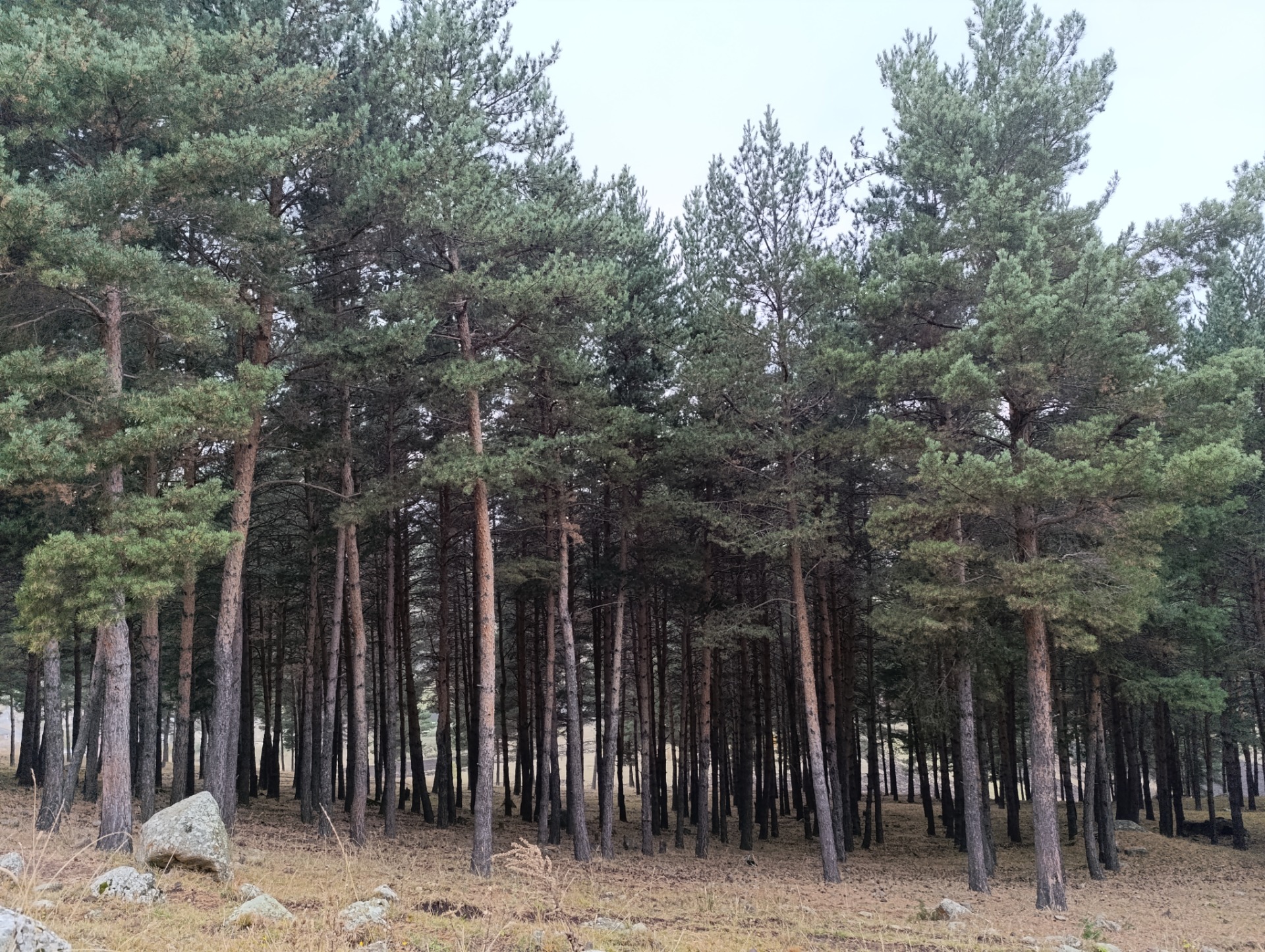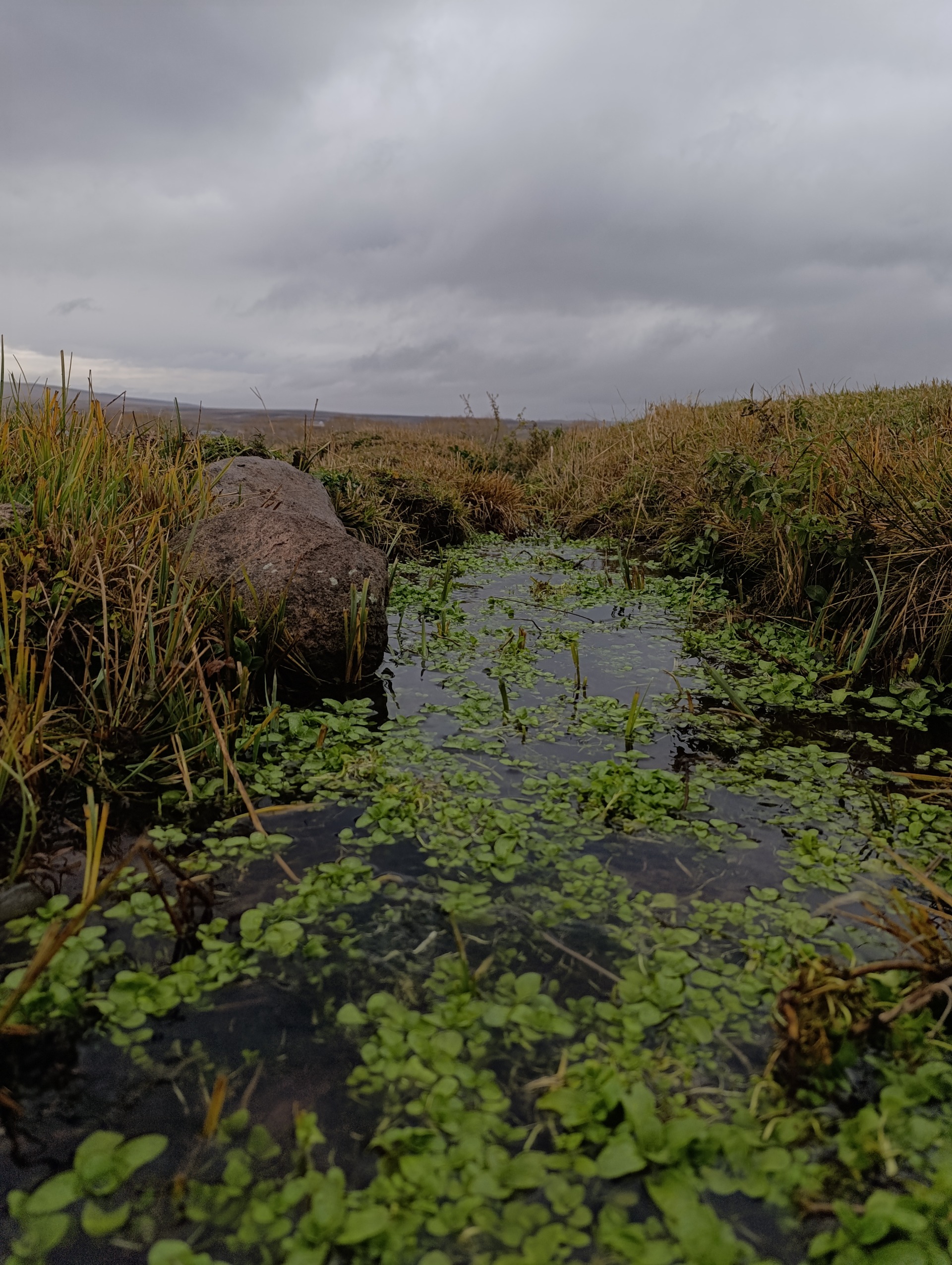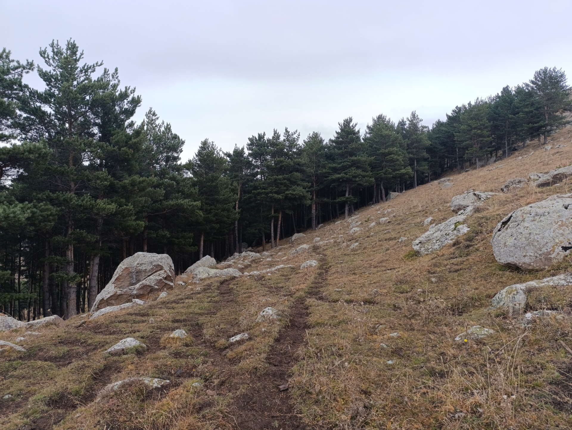 I didn't quite reach the top of this mountain, to the left it continued up higher. Though the area I reached levelled out. Beyond all I could see were the other little woodlands of pines. Tall grass which looked dry and dead. An environment unlike any other I had seen before. Scattered with bits of rock. No signs beyond of the life that was below, where little villages sat. No more sounds of little cars. No more sounds of cows. Just the wind that would blow. The little sounds of raindrops landing on my coat. The hike up the mountain had boosted my temperature up to some rather uncomfortable levels, though the cold air would still feel unpleasant on the ears. I wrapped a scarf around my head purely to address that issue and pressed forward, with more curiosity of what was ahead. No more homes. No farmland. Nothing. Though not too soon after, I checked the time. It was soon to get colder, the temperature to drop more with increased rain. As the sun would soon set.