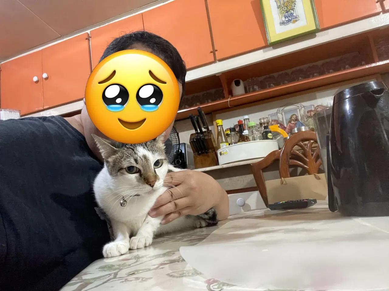 Here is Landicious on the kitchen's dining table. She loves chillin' on the floor, so she's a bit uncomfortable on the table. One thing we love about our cat Landi is that she never steals food from the table. She may have tried to steal raw fish from the sink while it was being cleaned, but she never tried getting cooked food.