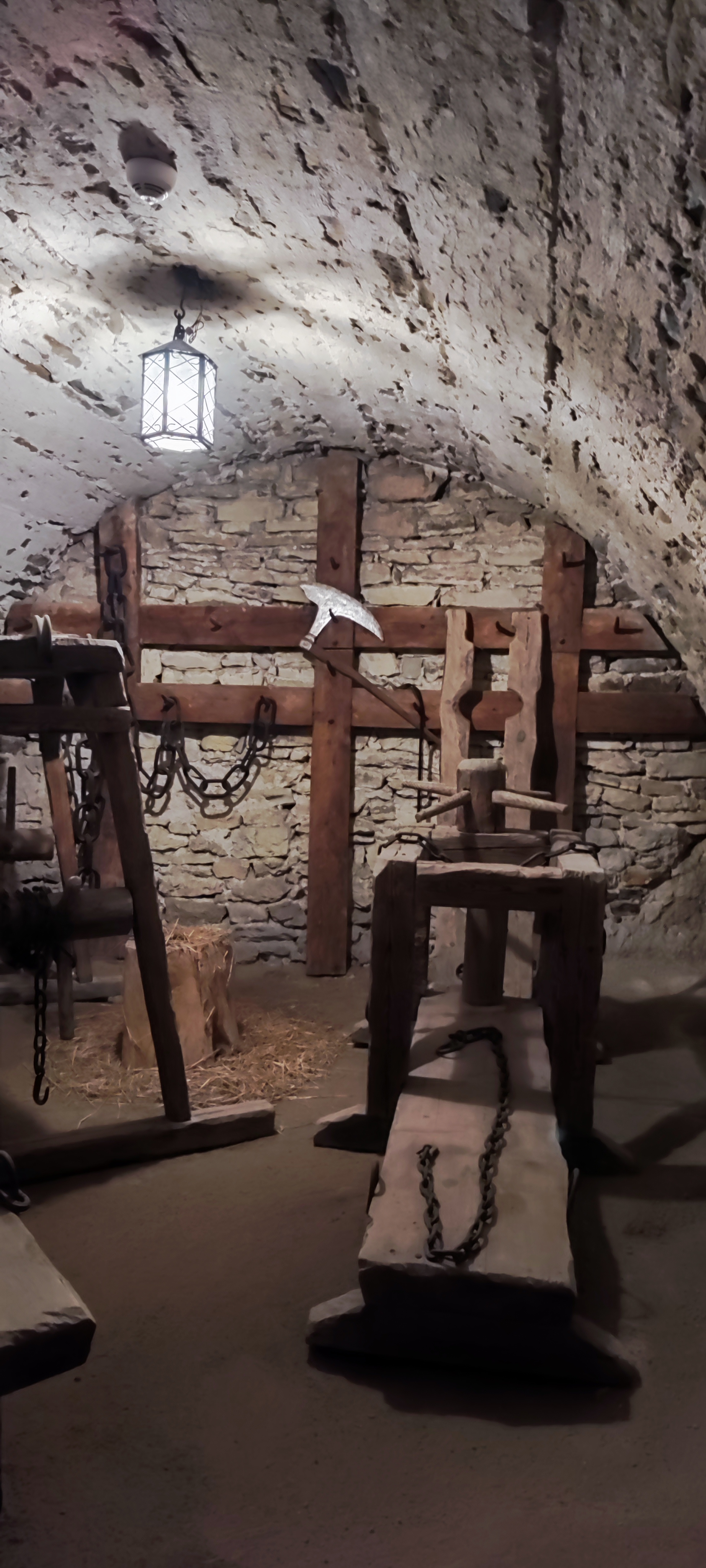 The casemates of Niedzica Castle initially served as weapons warehouses, food and wine cellars, and a prison. Due to the castle's location on the border, they were used to hold smugglers, highwaymen, and fugitives. The torture chamber housed torture devices, some of which are props from the film "Janosik," which was largely filmed in the castle. According to unconfirmed reports, the legendary Janosik was imprisoned and tortured here.