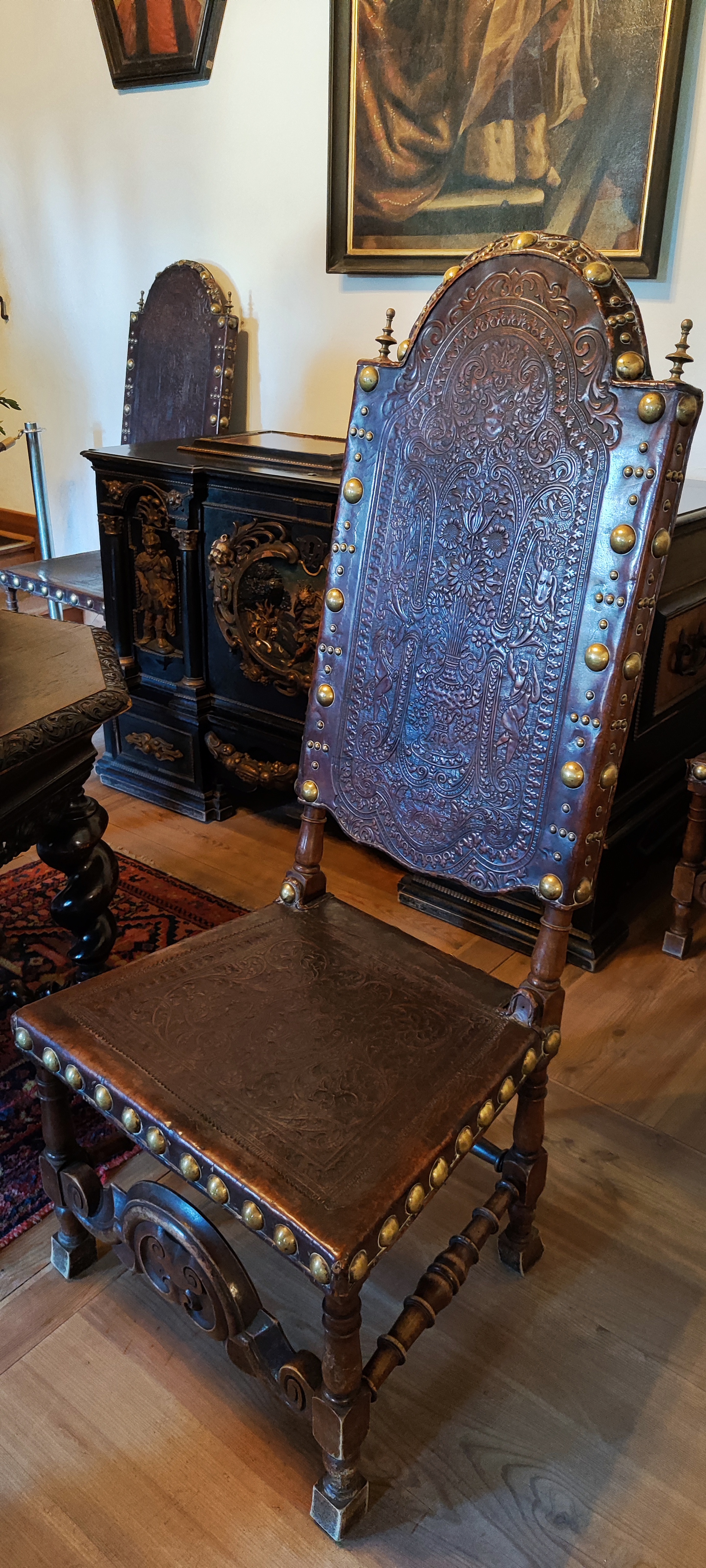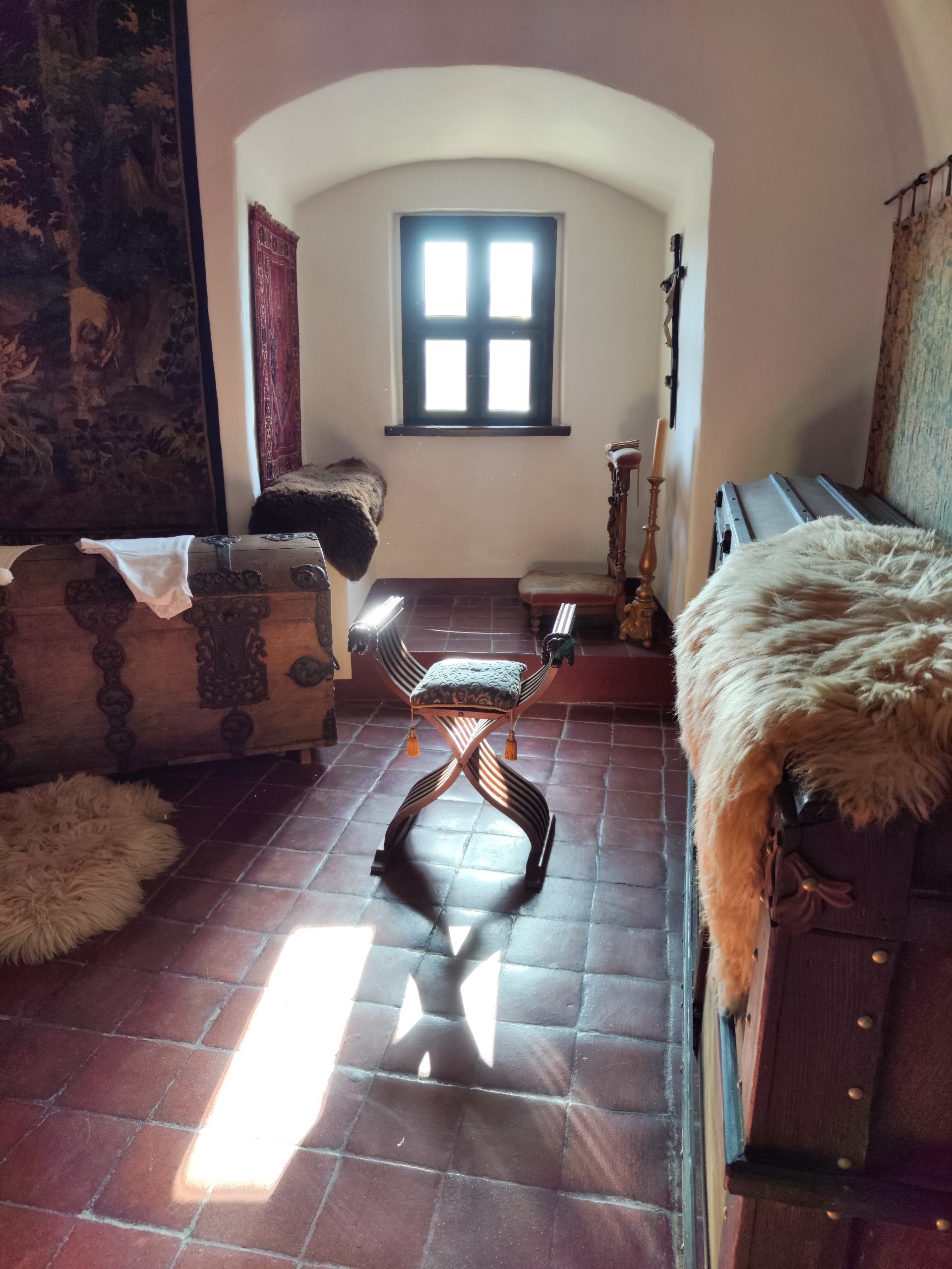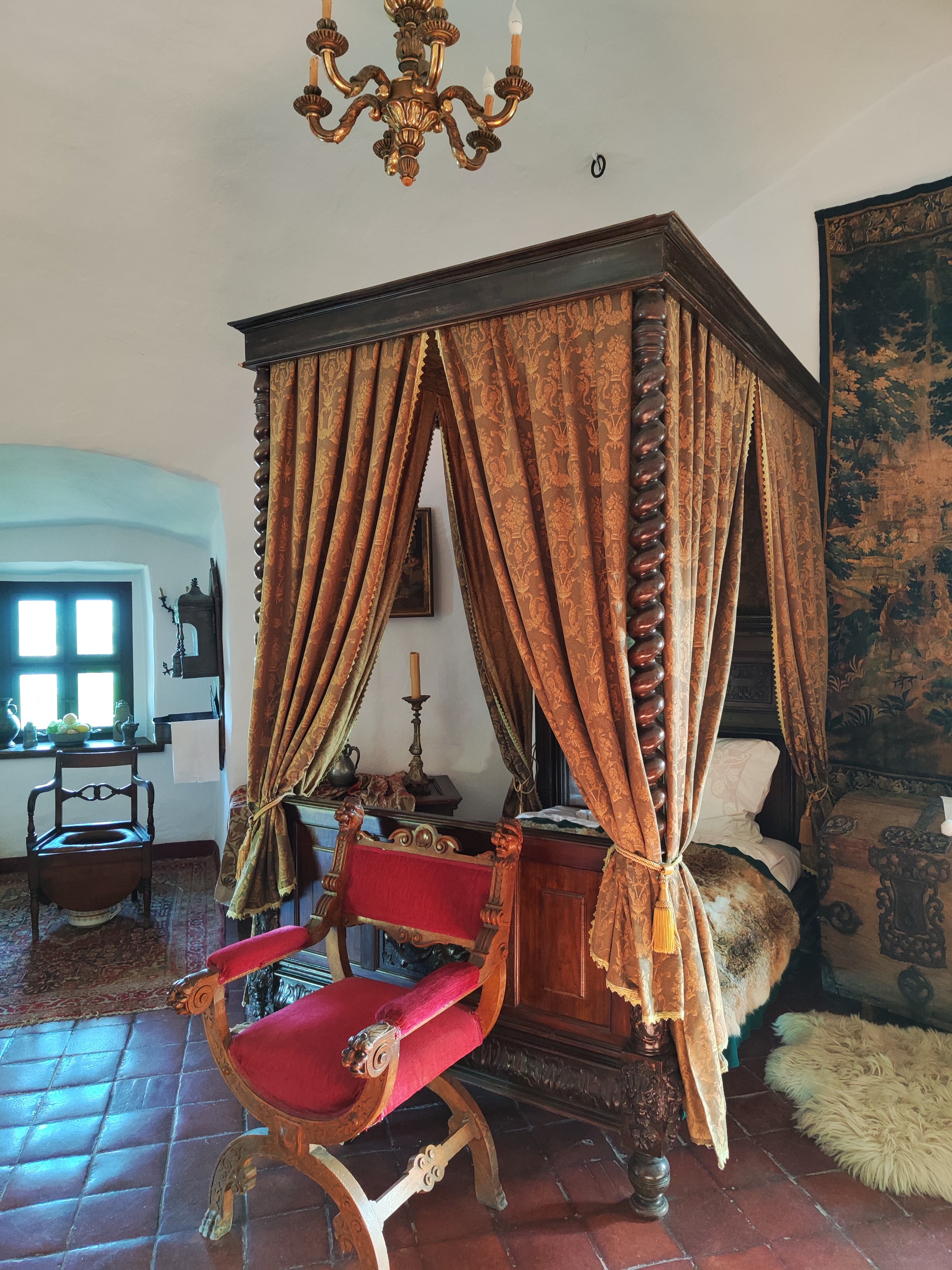 Pomieszczenia właścicieli i pokoje gościnne w różnych częściach zamku z różnych epok.