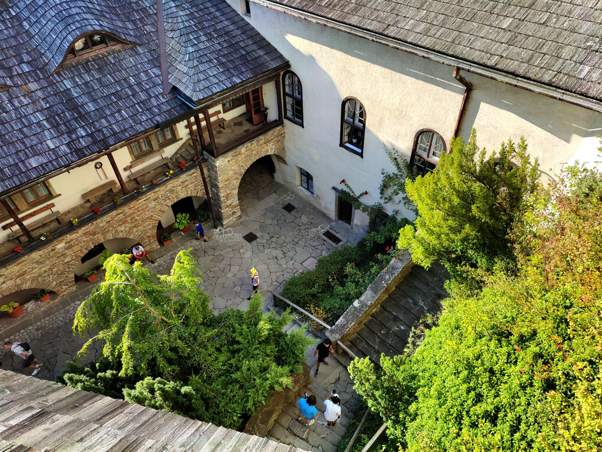 Niedzica Castle is a classic example of medieval defensive architecture, although it has been rebuilt numerous times over the centuries, gaining Renaissance and Baroque elements. It consists of three parts: the Upper Castle, the Middle Castle, and the Lower Castle. The Upper Castle, the oldest part of the structure, includes a defensive tower and former living quarters. The Middle Castle, expanded in later centuries, contains spacious halls, a chapel, and a courtyard surrounded by defensive walls. The Lower Castle is closed to the public; it houses a museum and offers accommodations for rent.