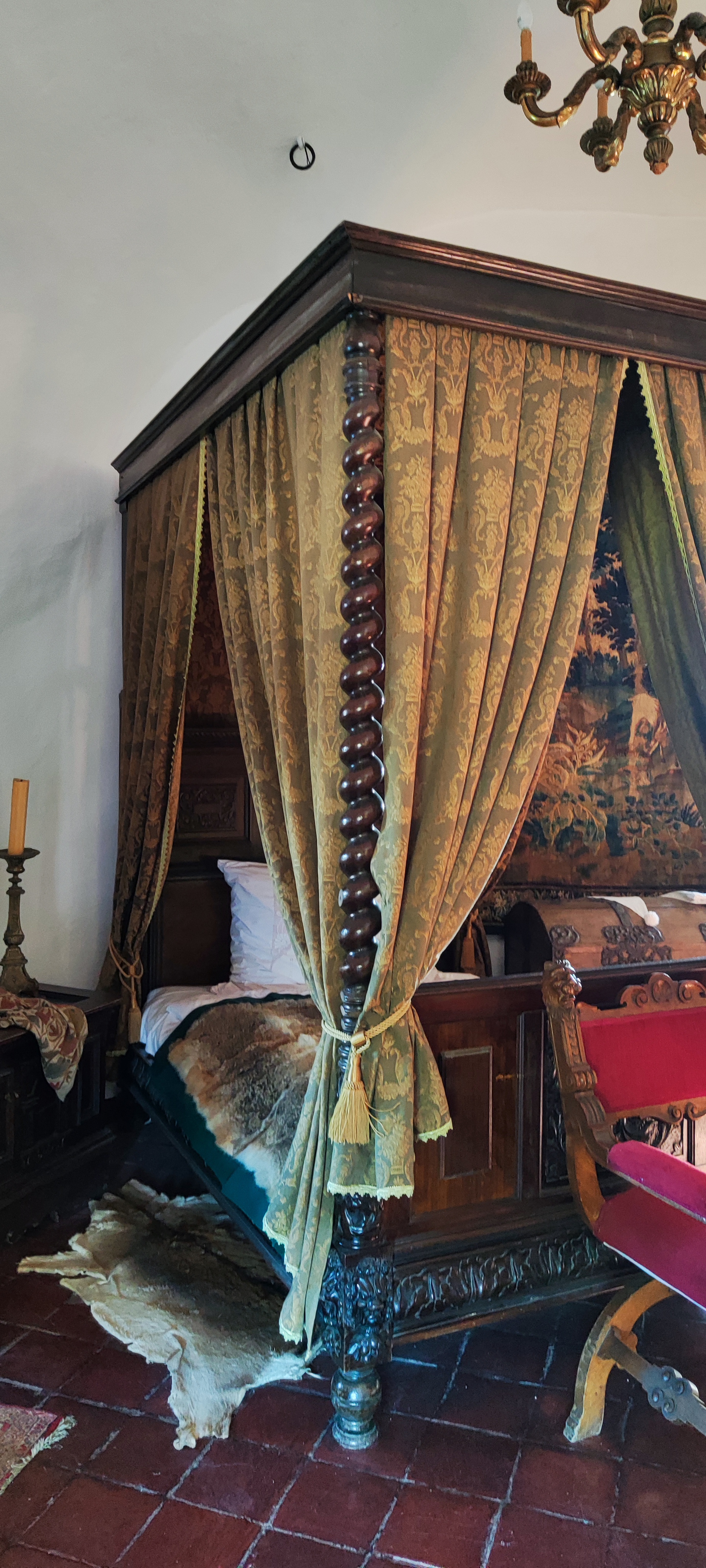 Owners' quarters and guest rooms in different parts of the castle from different eras.