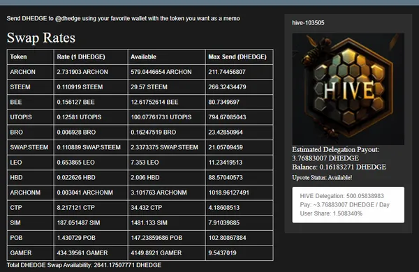 Nous gérons actuellement tous les tokens et services suivants: #HIVE(HP) / #BEE / #PIMP / #CTP / #LEO / #NEOXAG / #ARCHON / #CENT / #MEME / #ALIVE / #POB / #CCC / #STARBITS / #PIZZA / #STEM / #BUIDL / #SBT / #LVL / #SIM / #DEC / #BUDS / #NFTM / #THGAMING / #ENTRY / #SPT / #ONEUP / #DUNK / #SME / #GAMER / #BEATCZ / #SPS / #VOUCHER / #BRO / #DHEDGE / #FOODIE / #ECENCY / #HBIT / #BHT / #PGM / #LOLZ / #LUV / #HUSTLER / #MEOWLEO / #WAIV / #LIST / #CINE / #SPORTS / #COM / #VYB / #WEED / #UTOPIS / #VIBES / #LASSECASH / #WINEX /
