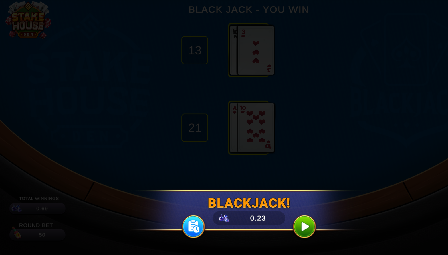 It was a good day at StakeHouse Den for me overall. Had a great time with Blackjack, and I will rest and let my refrigerator fill back up before I play again.
