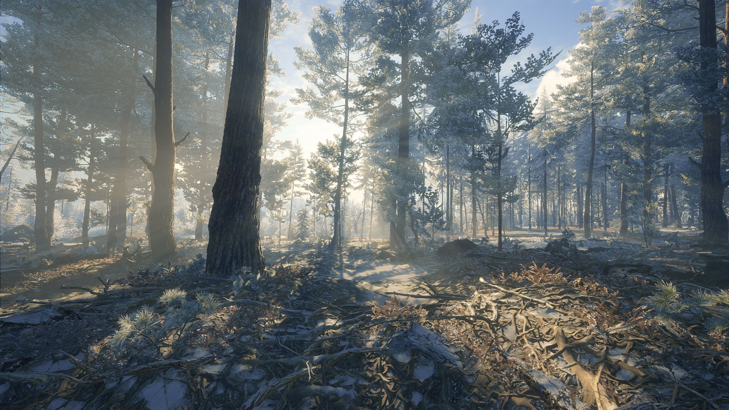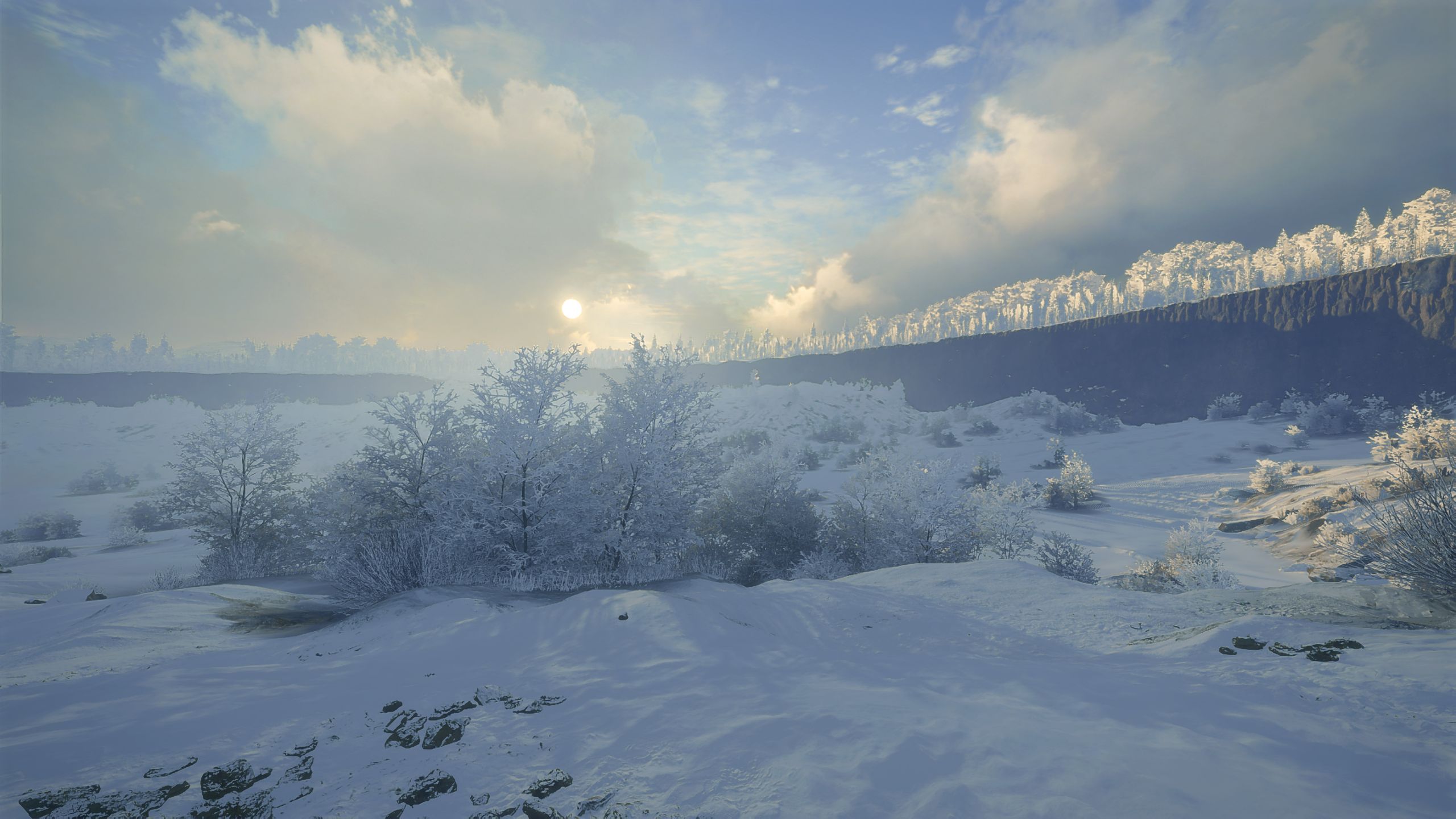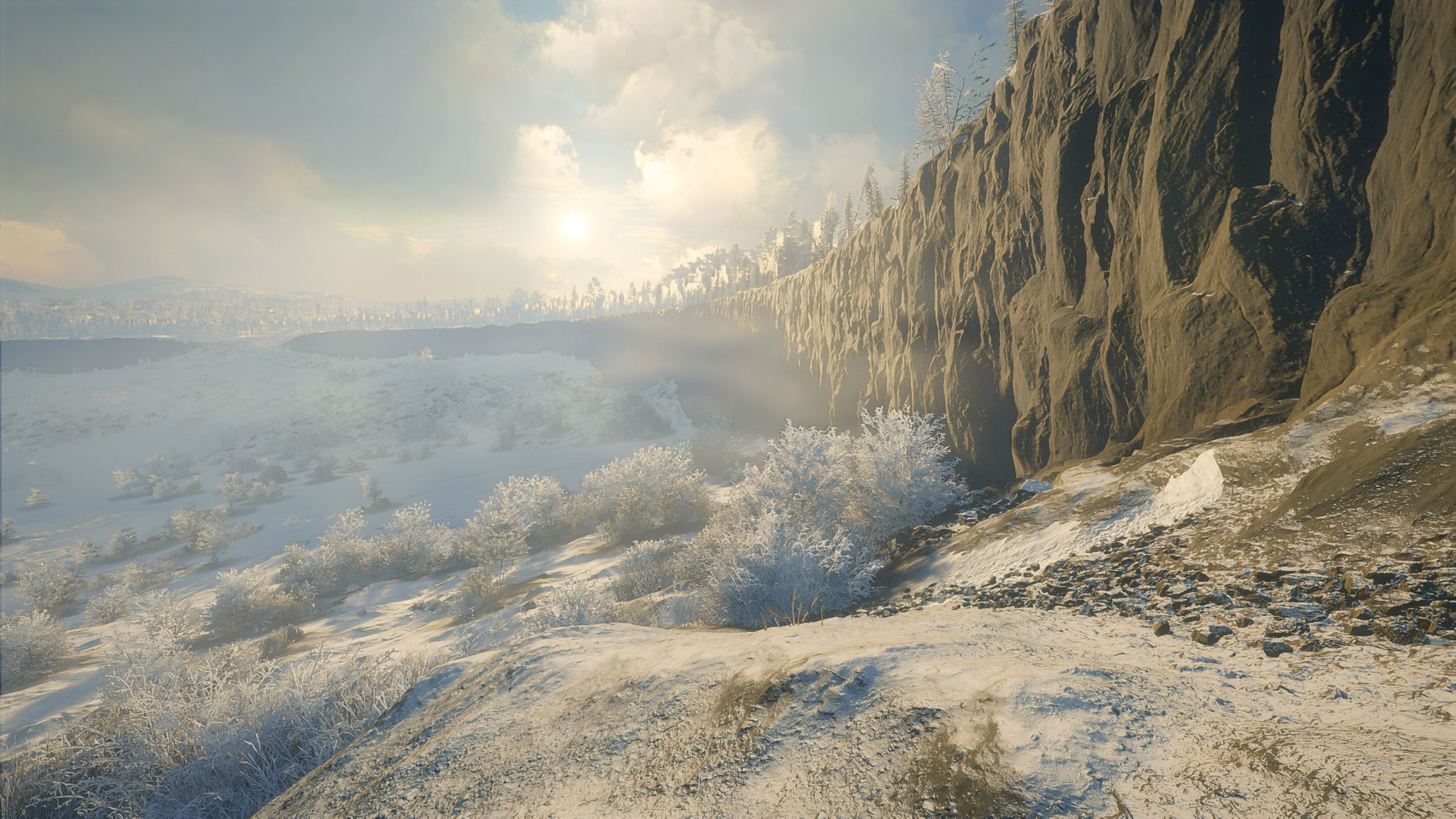 There are many frozen lakes in this map as well. They are animal hotspots. Moose and Caribou came here frequently to drink. The lightning here was looking amazing, too. The sun was just going up, and hunting without HUD is such a good experience here. You are focused on hearing a lot more. Every sound is a potential animal lurking or an attack on you.