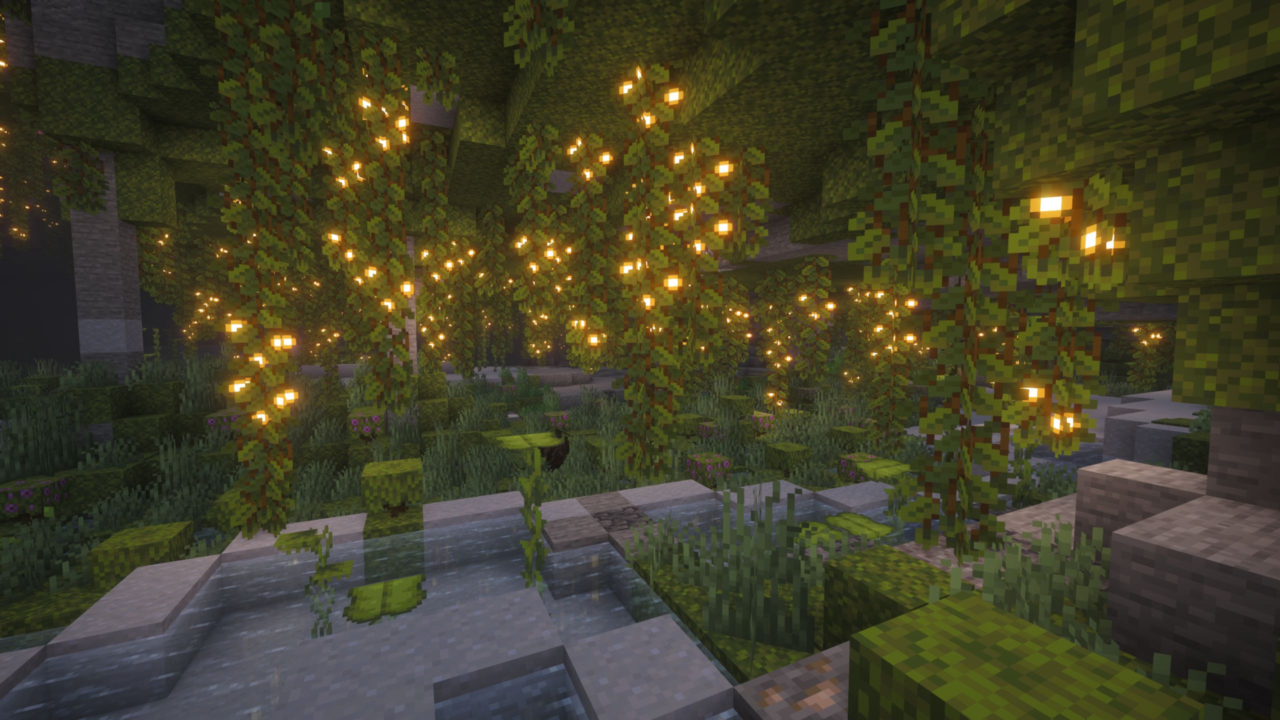 We found a big, lush cave biome inside here. It was looking beautiful.
