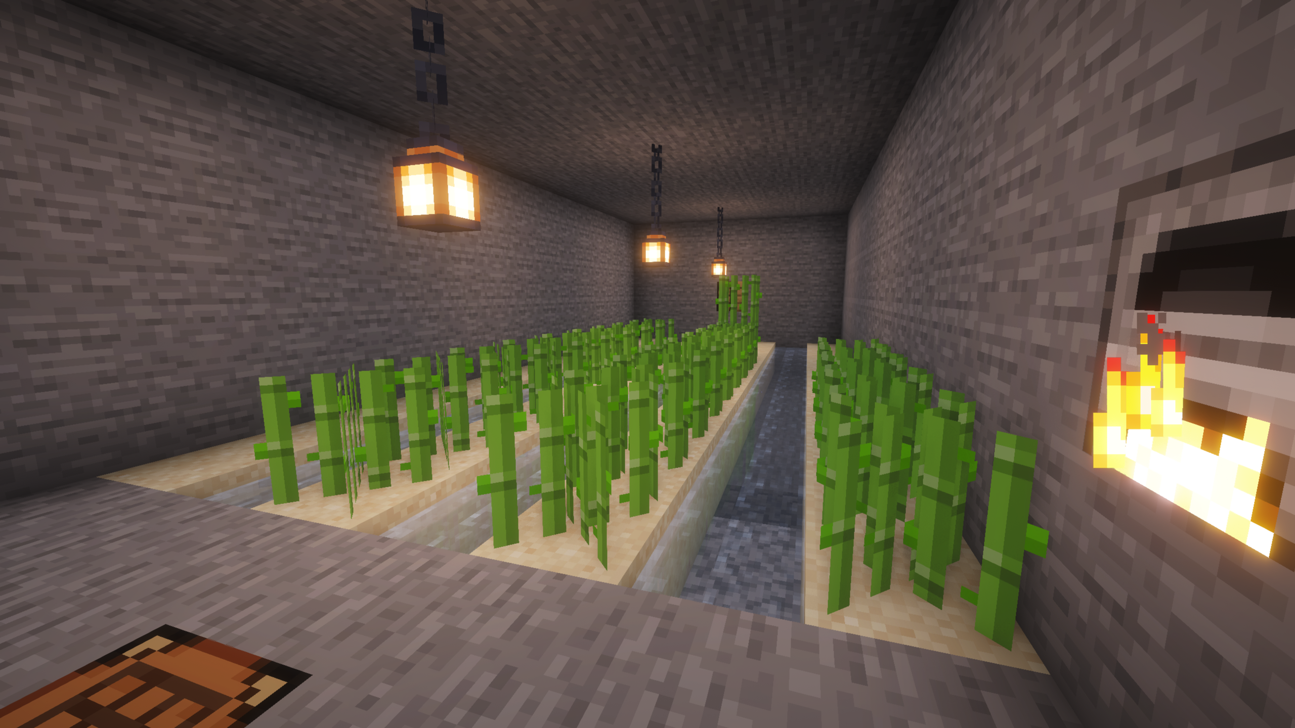 I wanted to set up an enchanting setup as soon as I could. So, I collected some sugarcane and planted it underground in a room. They will be converted into paper and books. But for that, we need to kill a lot of cows or horses and get their leather. Let's see what we build as our first base. For now, we were just collecting the basic resources. We were successful in doing so, that too without dying once so far.