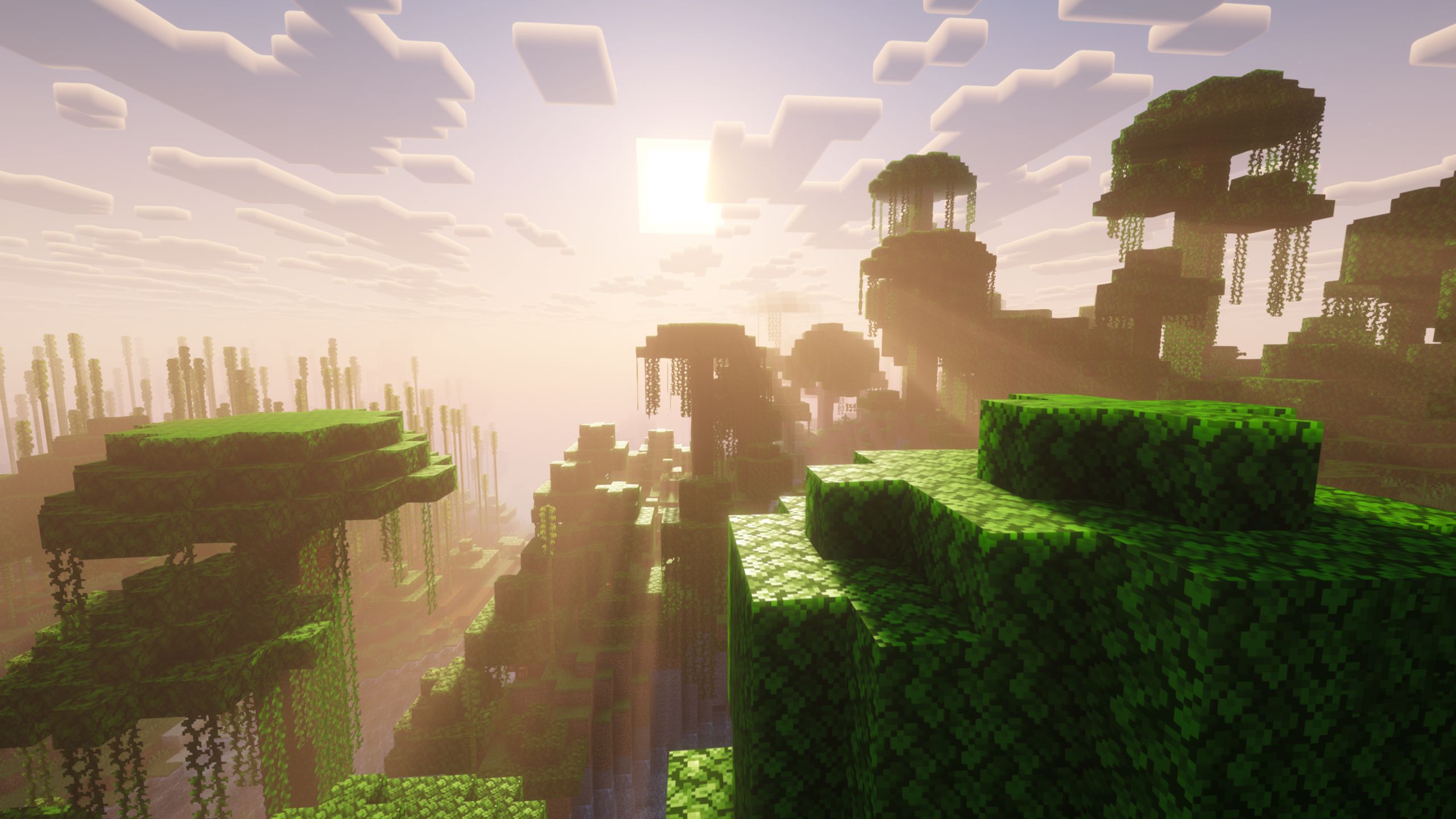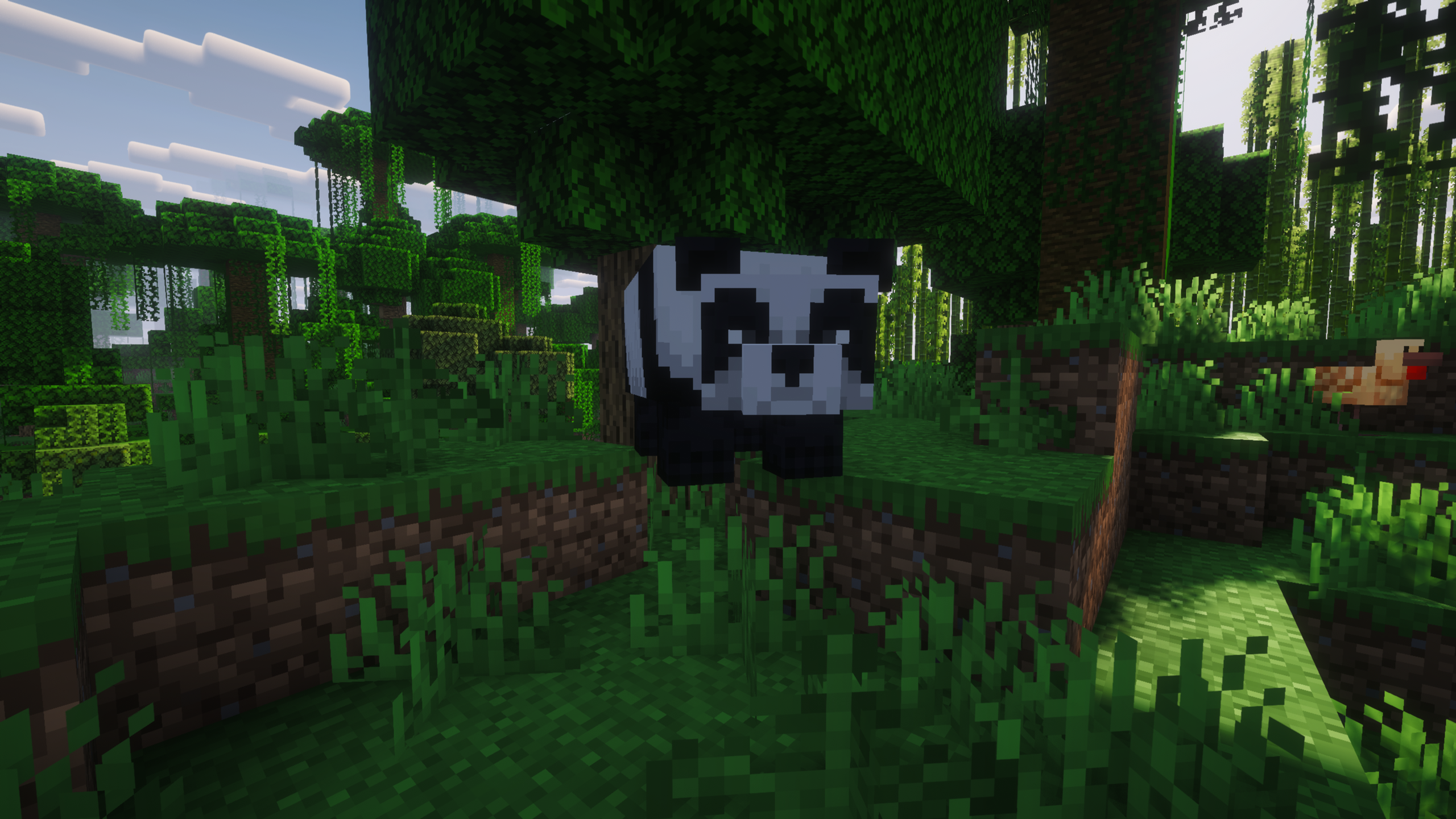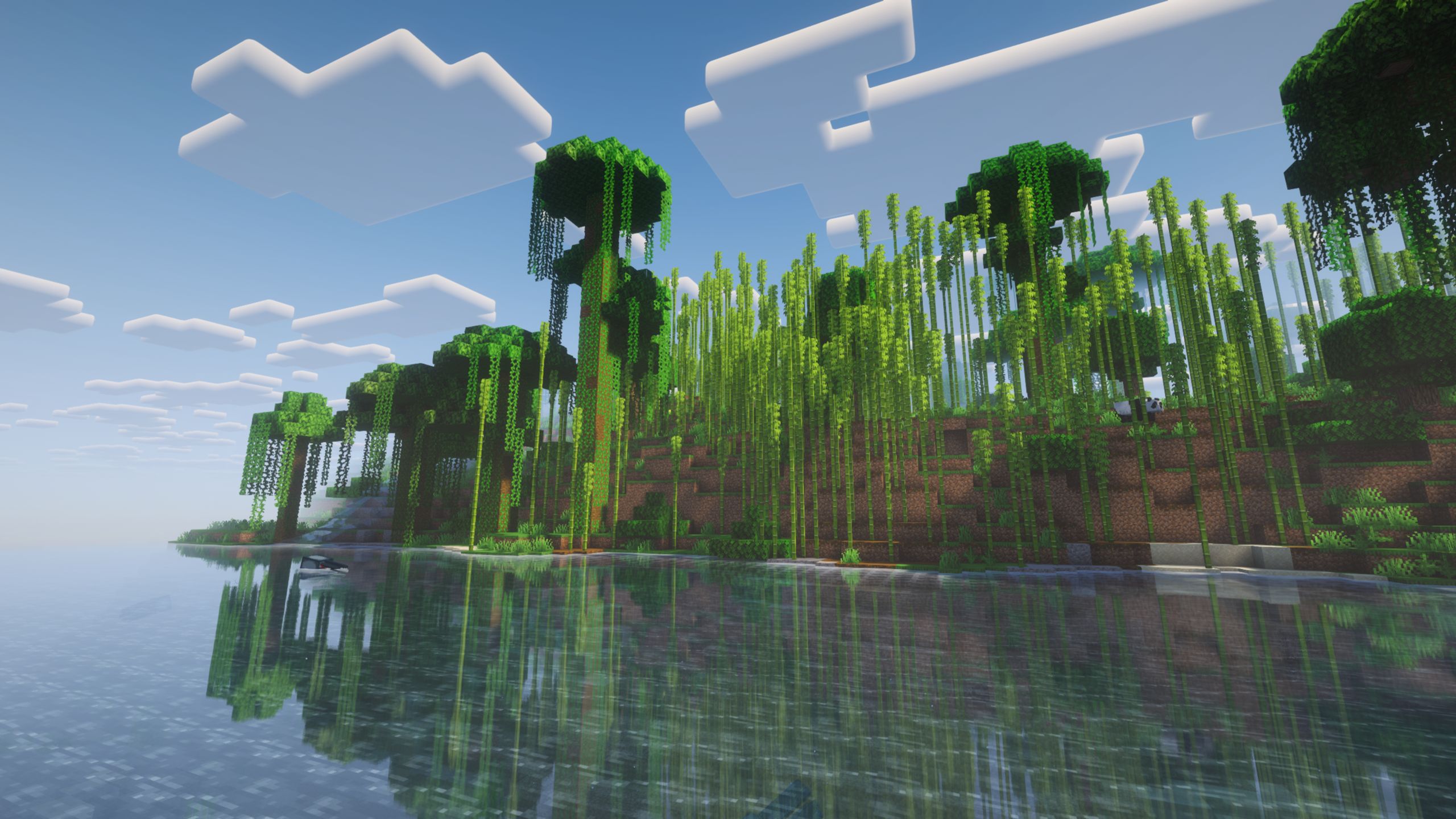 We made a tunnel that takes us straight to the surface. We ended up inside a jungle biome. This was the first time I saw a jungle biome this close to the spawn. There was a big bamboo forest on the other side of the river.