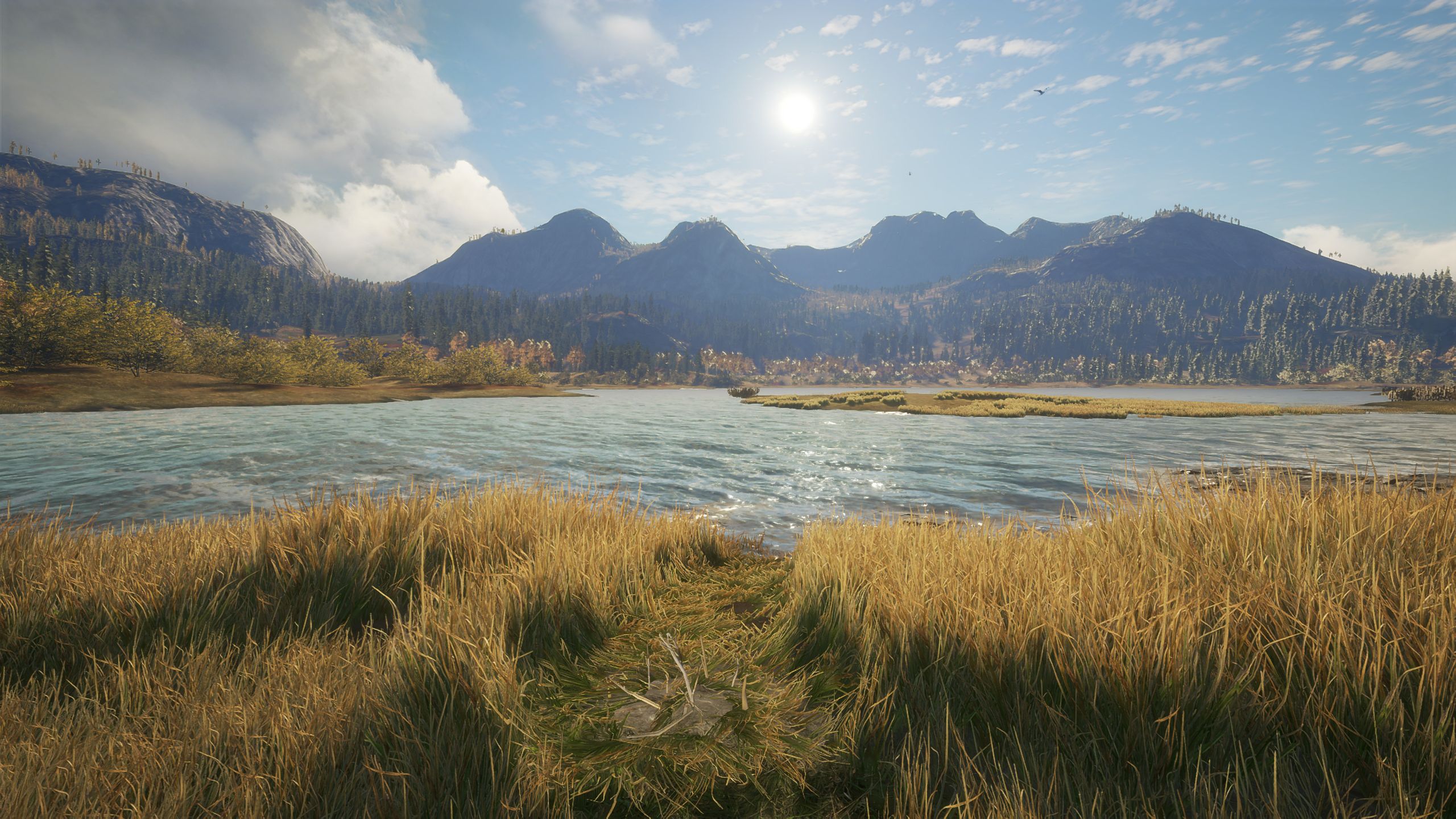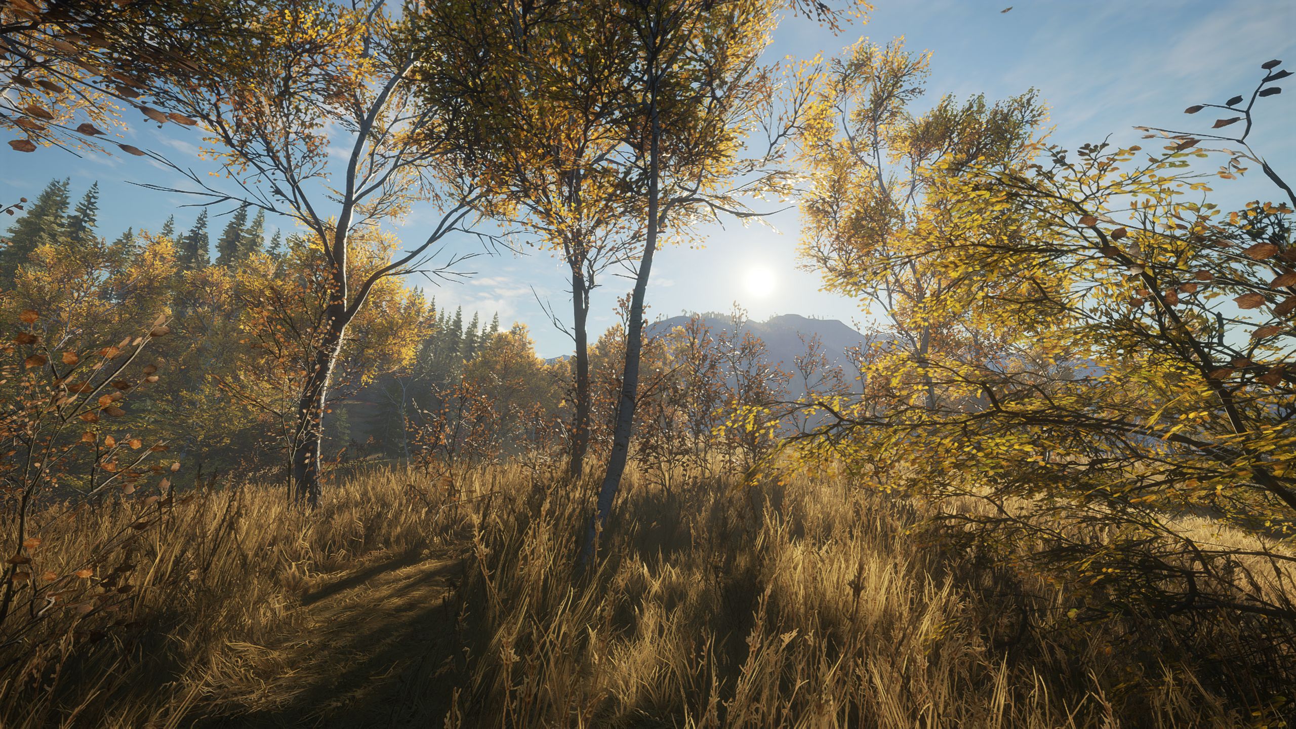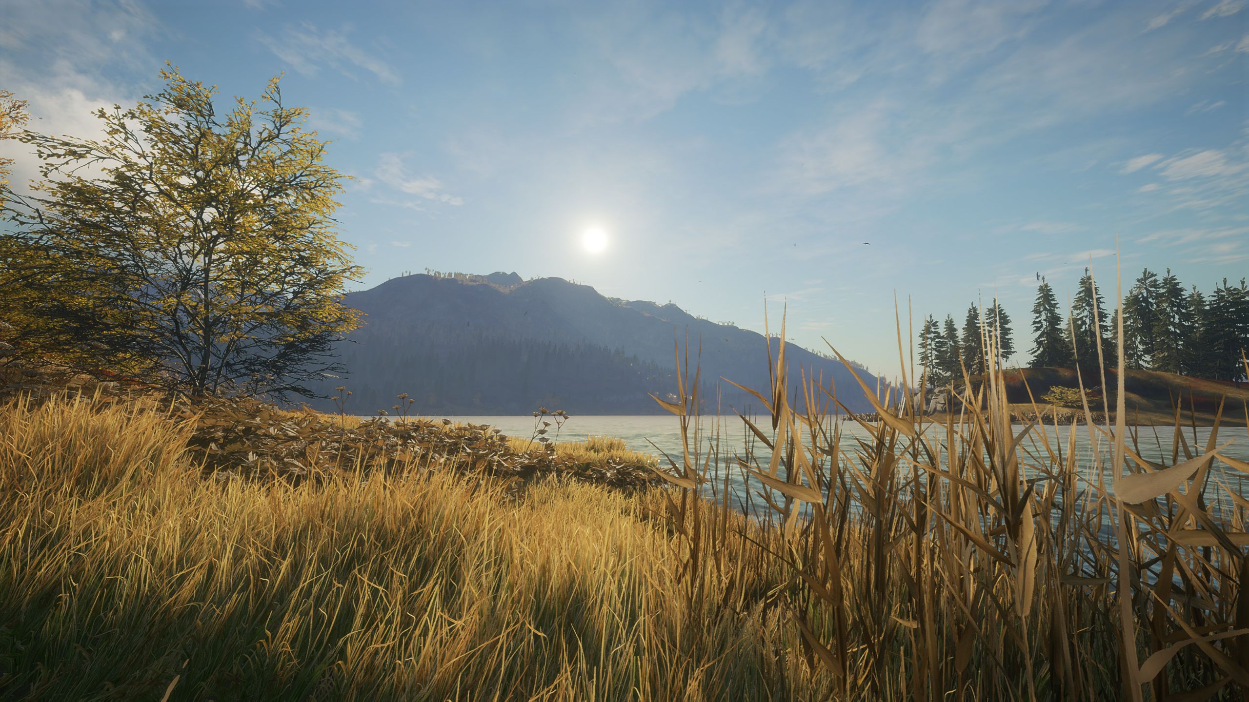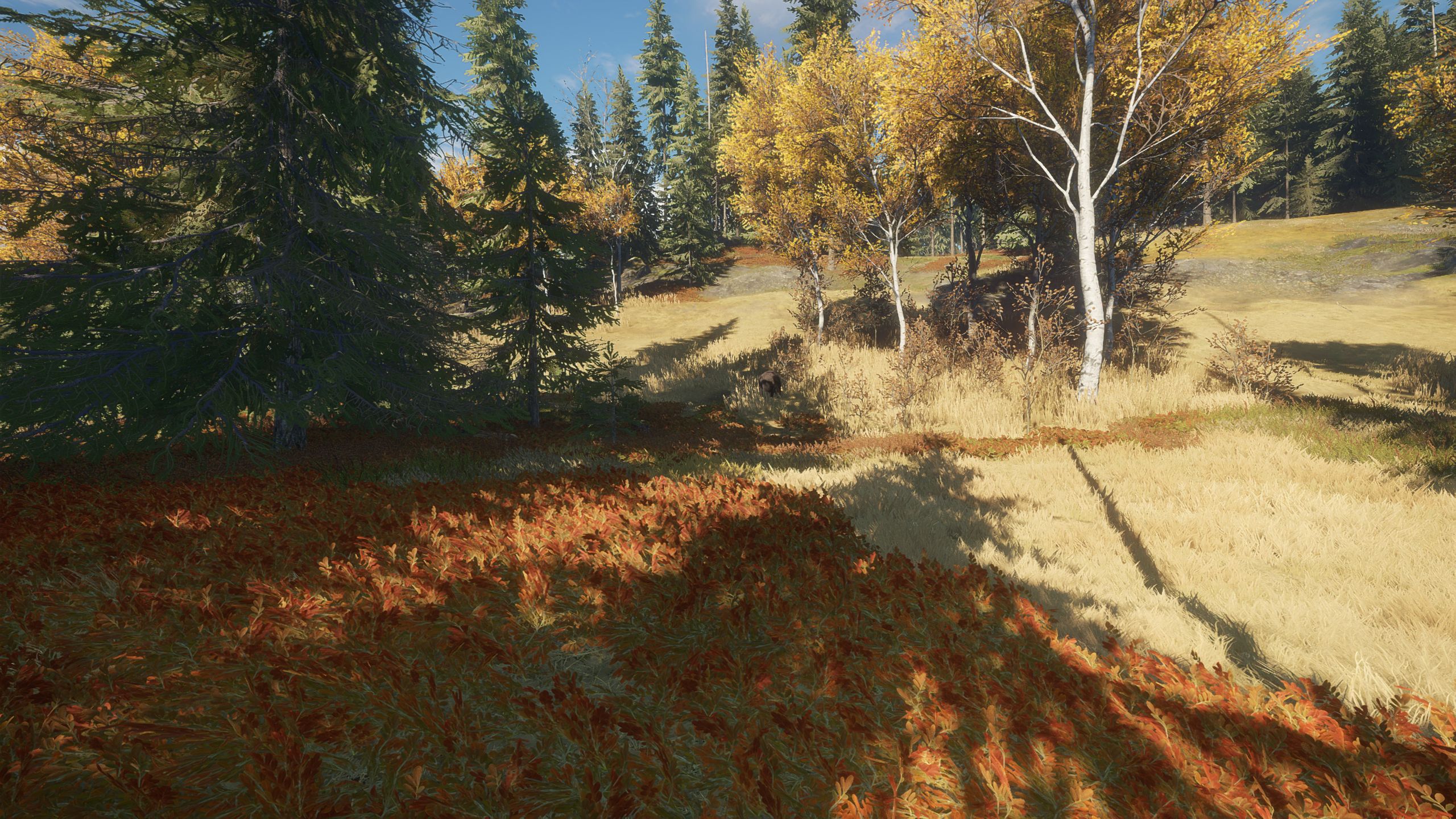 The golden brown hues of this map are something I always liked, and make spotting deer harder. The way the grass interacts and gets crumbly, indicating an animal trail, is such a good addition. I don't remember if this was always there, but I am noticing it a lot lately. These small details make it more realistic.