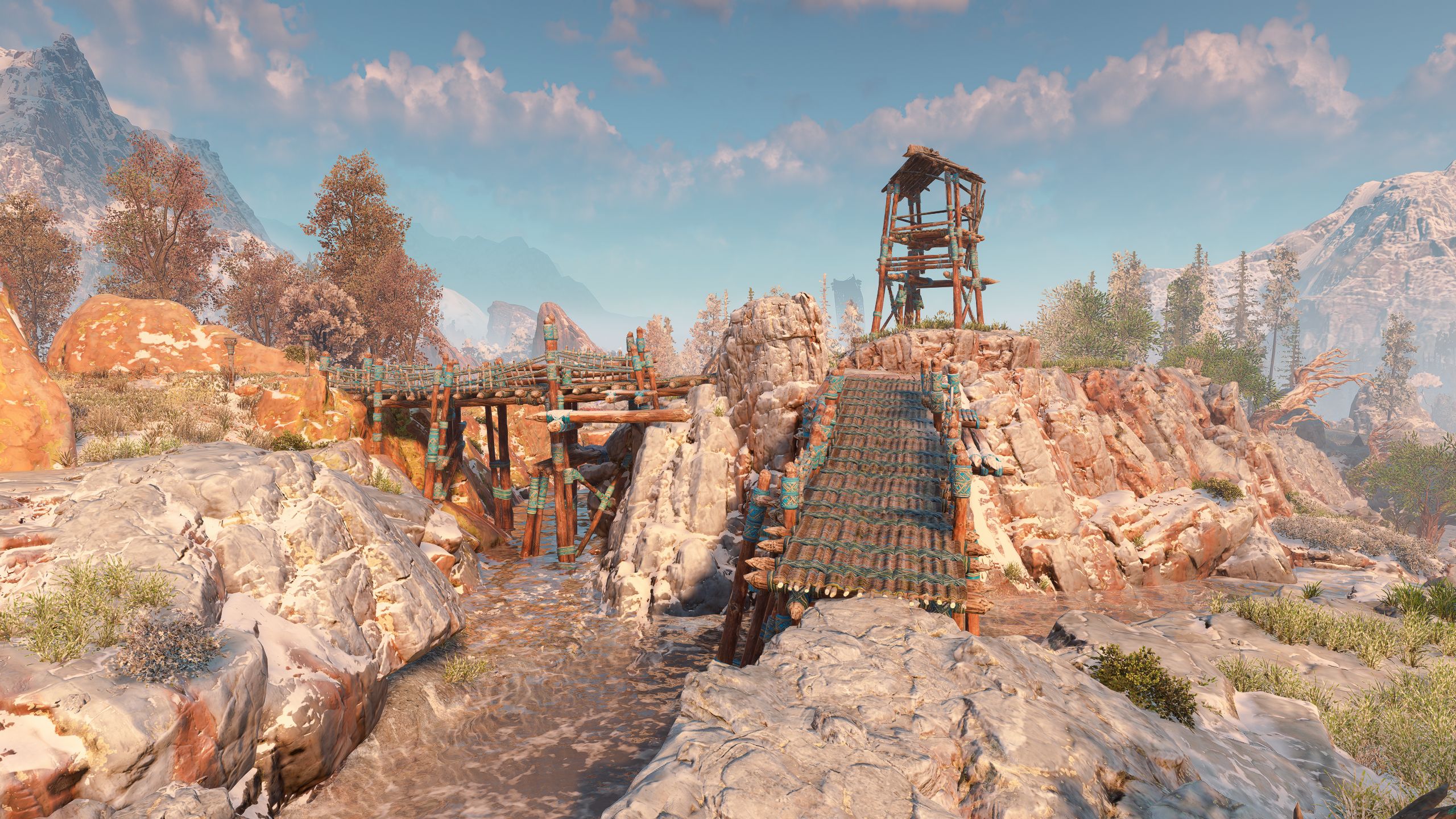 There are a lot of primitive wooden bridges and other structures made by the tribes in this game. I have shared some in my previous posts as well. They blend well with the surroundings and don't look too out of place in this mountainous region.
