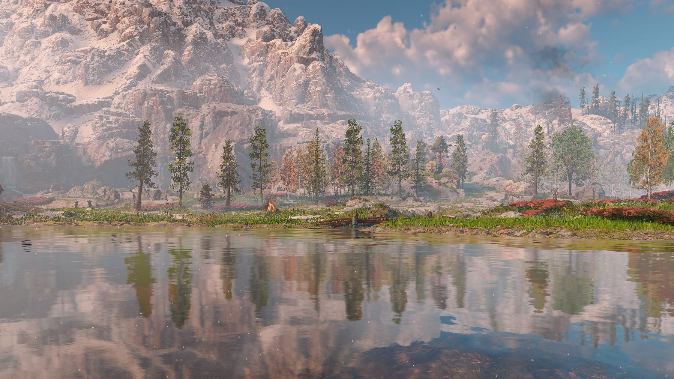 I increased the FOV in this next lake shot, and it came out fine. But I could have framed it slightly better, I suppose. Look at the reflection on the water. This is only at medium settings as well. Water is so hard to simulate in games, but now we have reached such a point where it looks realistic.
