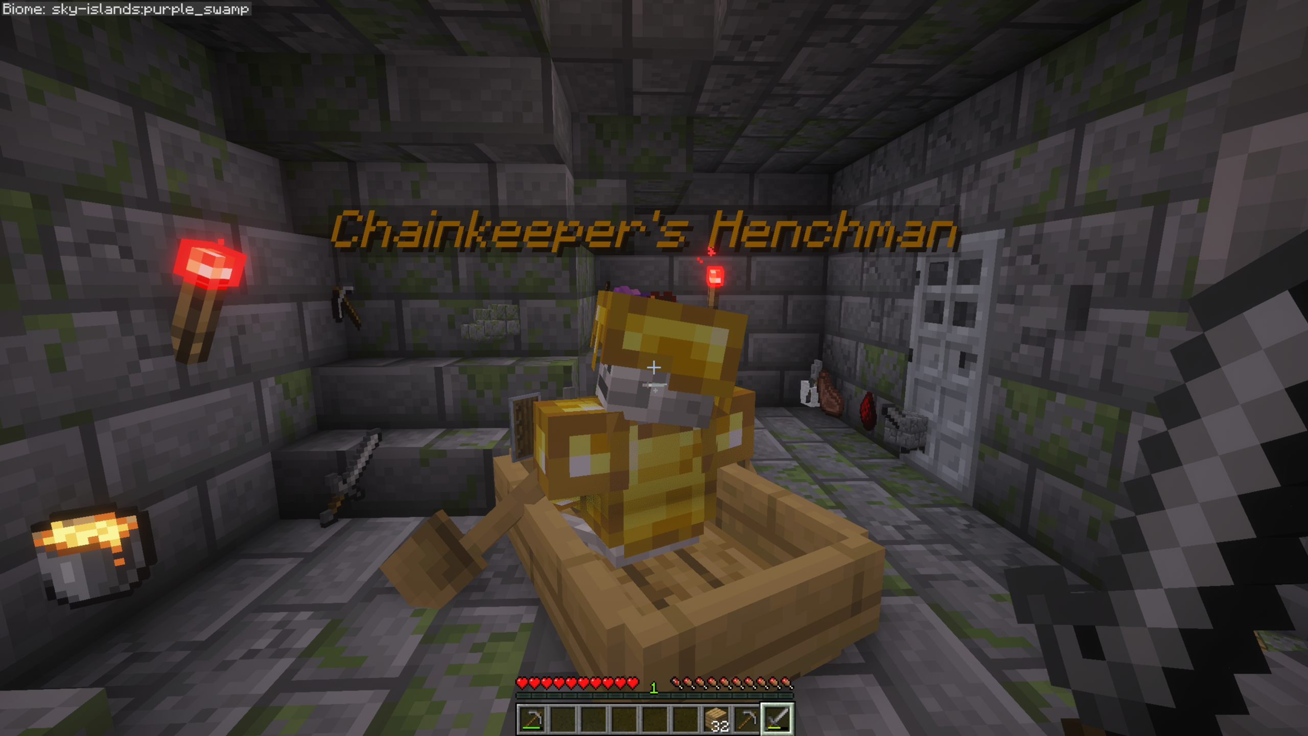 The bottom level of the structure had a Skeleton with full gold armour. These seemed to have a lot of health too. We trapped him in a boat and killed him easily. This one was named "Chainkeeper's Henchman".