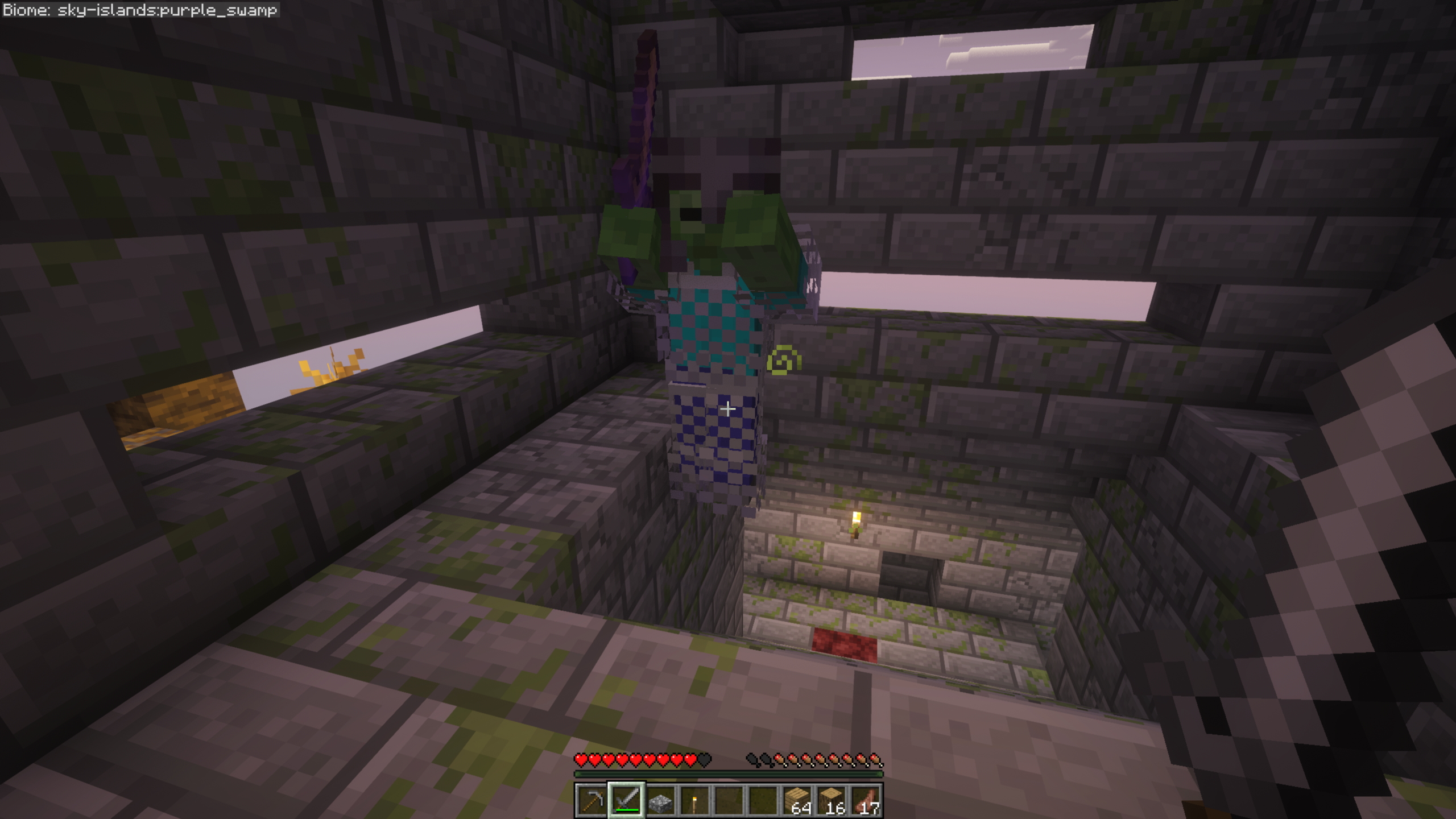 This island's biome was called "purple swamp", which I have not seen in the game. Maybe it is in Vanilla Minecraft or just added to this mod? Anyway, there was a big structure on the top of this island with a lot of deadly mobs.