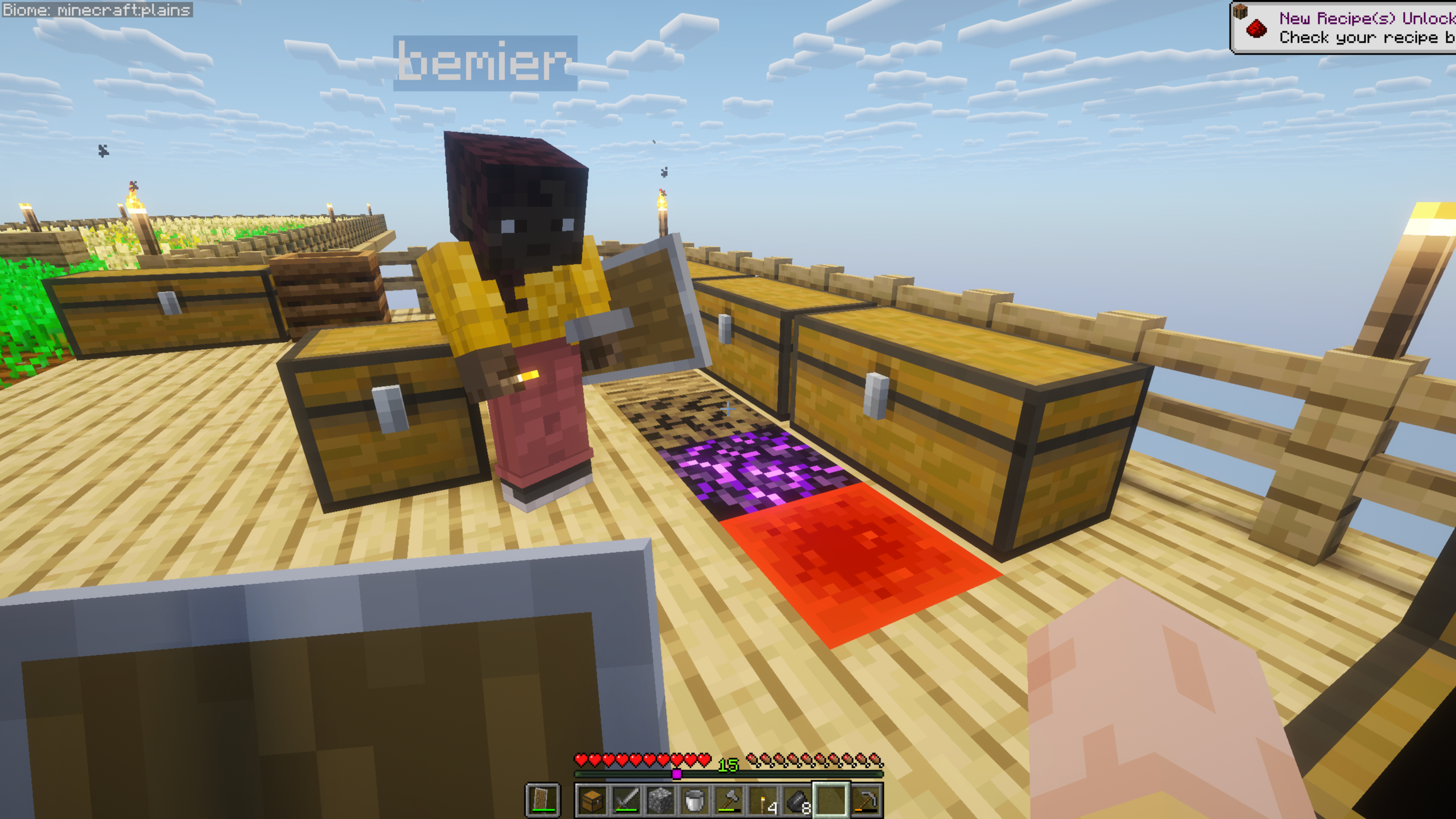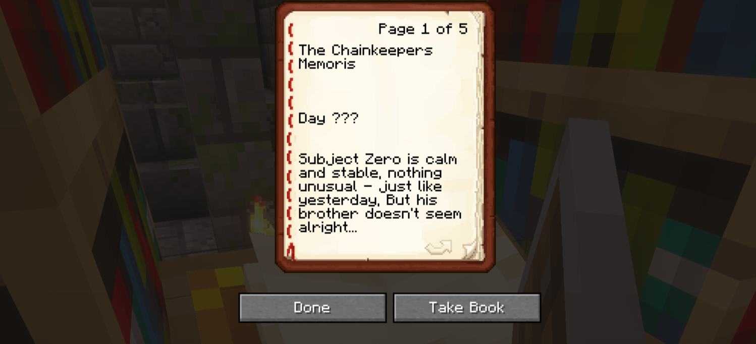 We saw a zombie named The Chainkeeper, who was covered in chainmail armour and was holding an enchanted book with a fire aspect. He killed us multiple times. We had no armour yet and didn't bring any water with us. We were not expecting this island to have mobs like this.