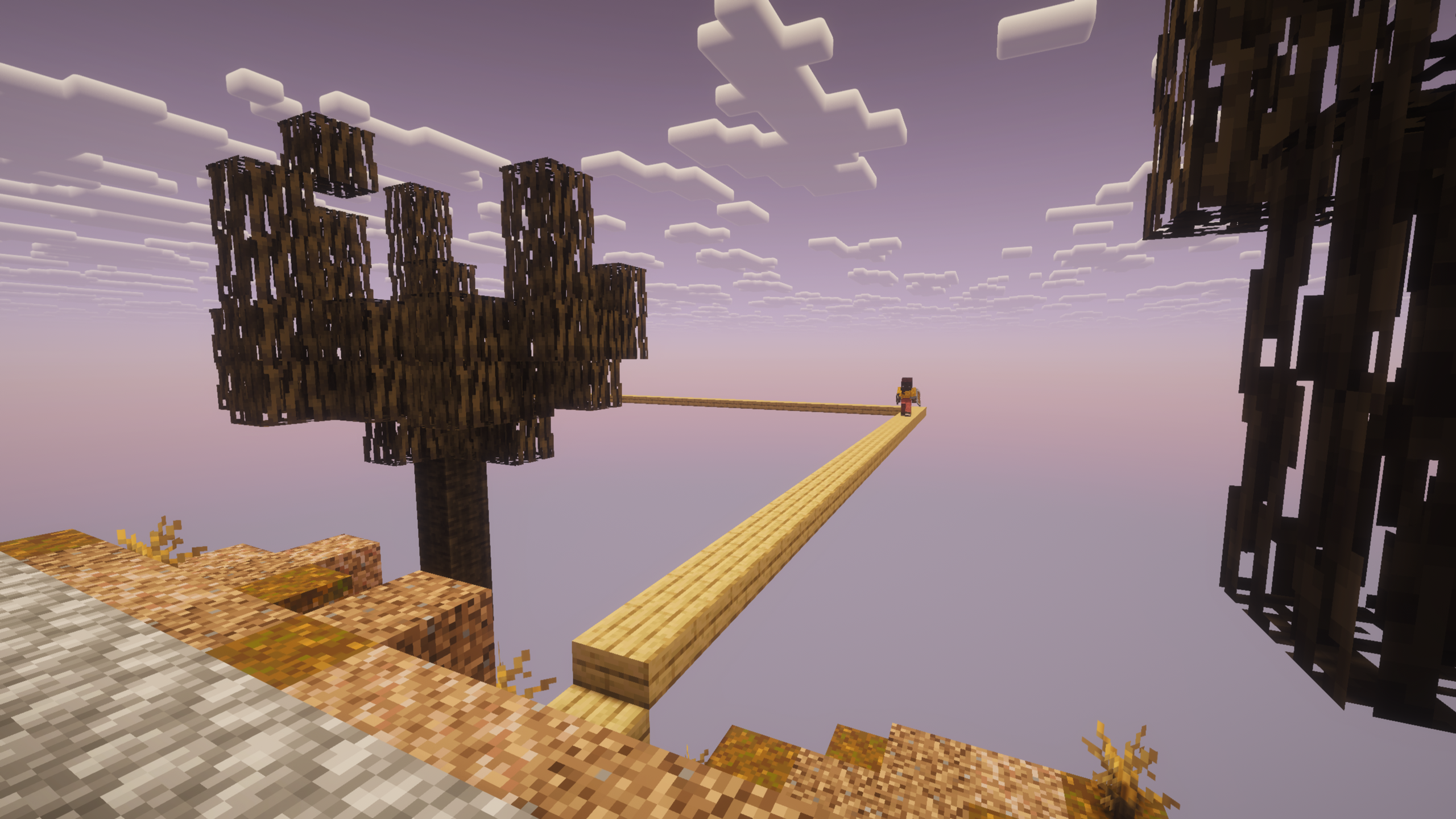 The next day, we bridged to this mysterious island. This had mangrove trees (if I am not wrong). I don't know when these were added to the game, but their leaves can store water in them and can be used to make easy cobblestone generators.