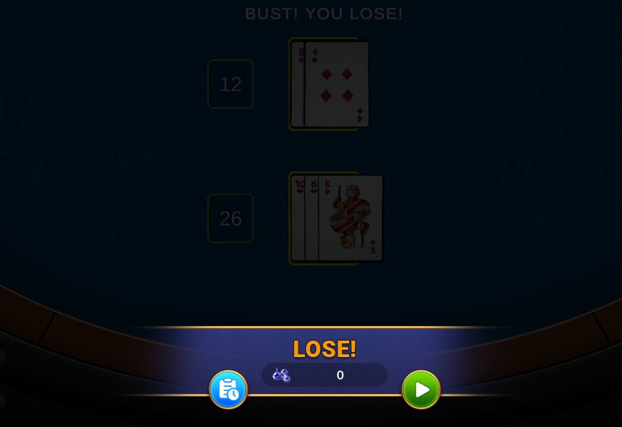 In the next and last round of Blackjack, the same thing happened. I had to make a decision at 16 again. I decided to hit again, not learning from my mistakes and ended up busted again.
